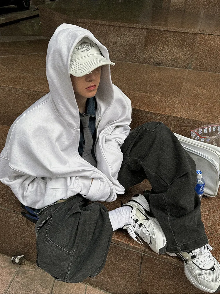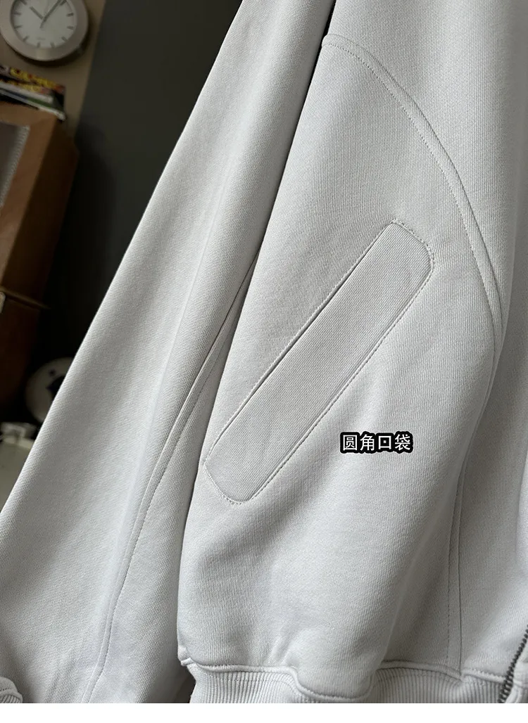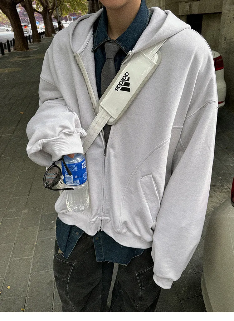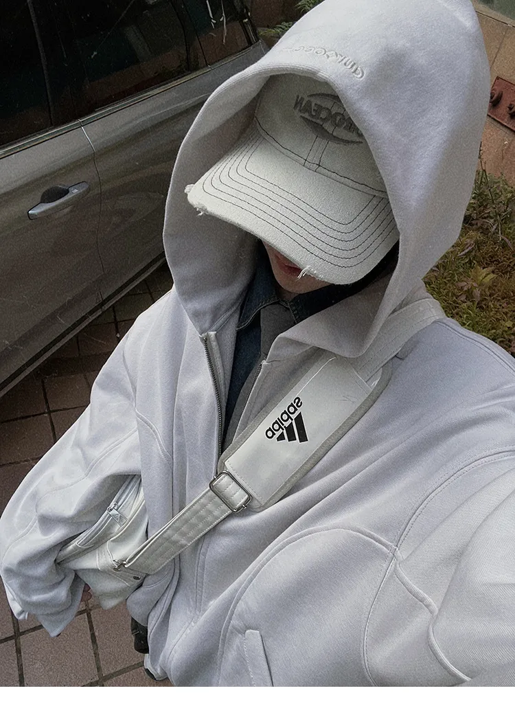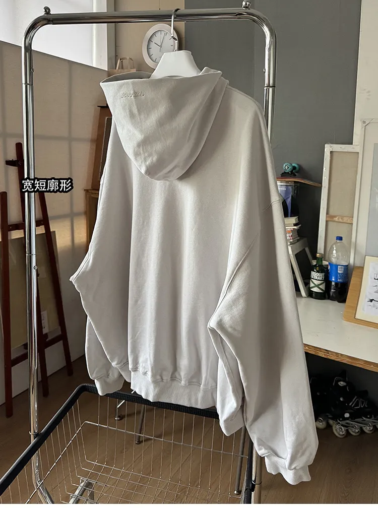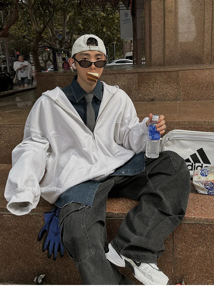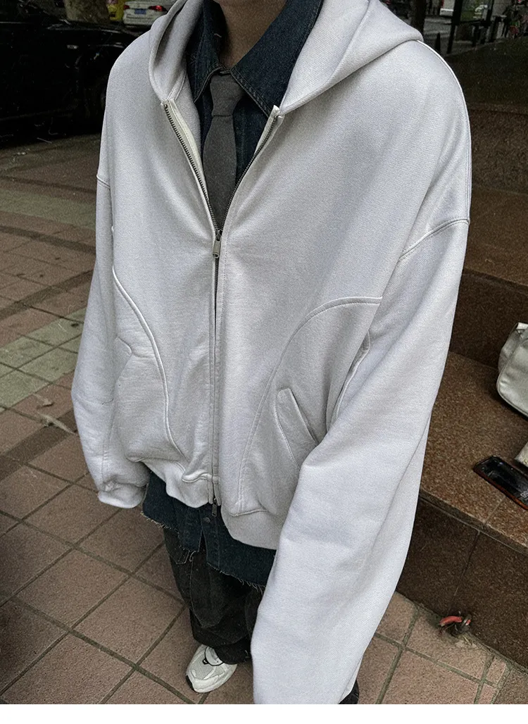 AUROCEAN 灰白 寬短連帽 重磅 純棉解構 外套(灰白色)