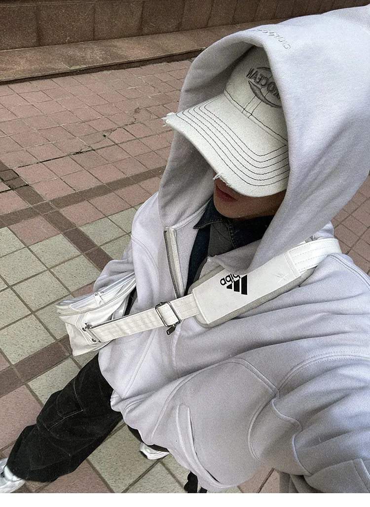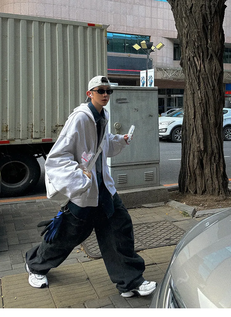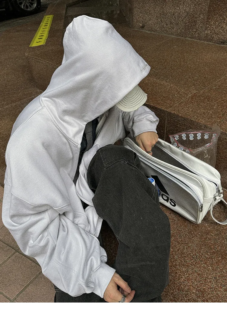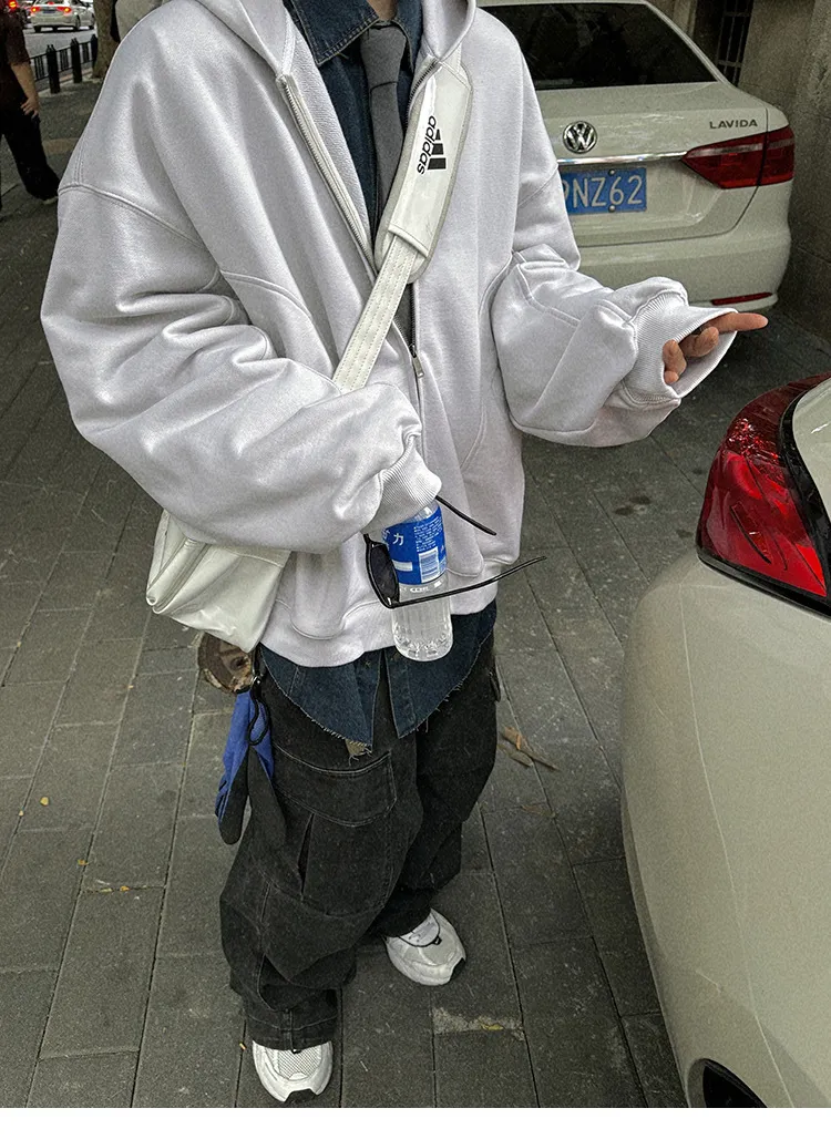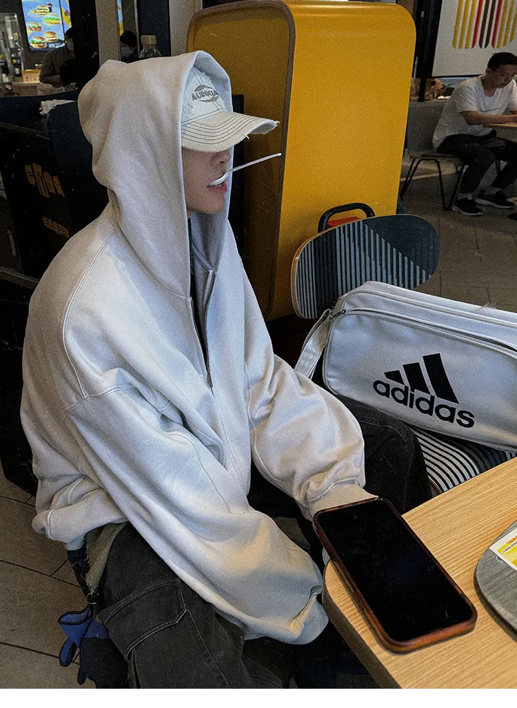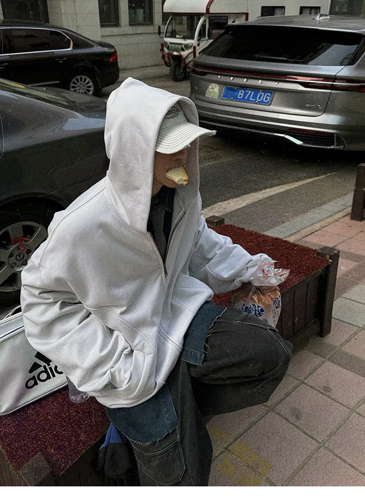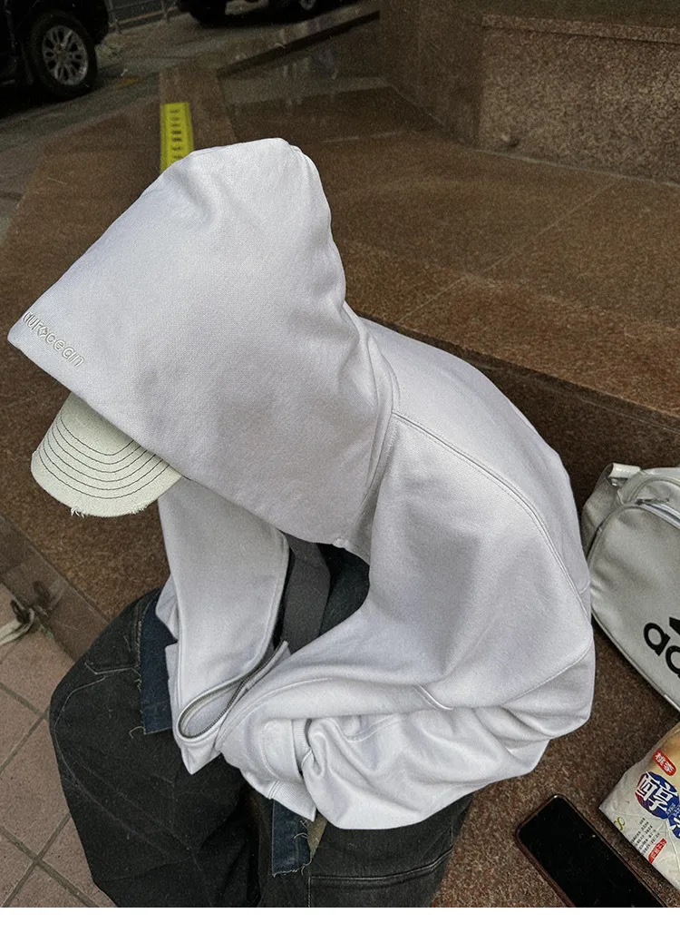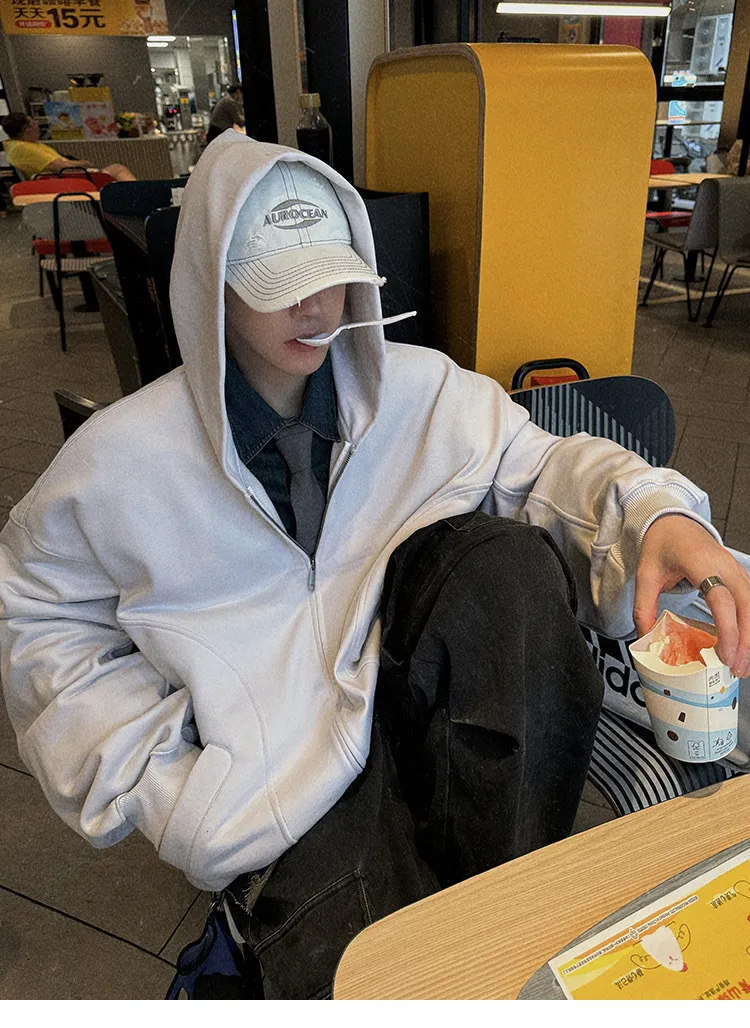 AUROCEAN 灰白 寬短連帽 重磅 純棉解構 外套(灰白色)