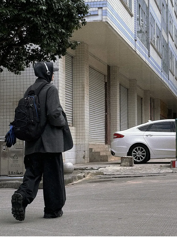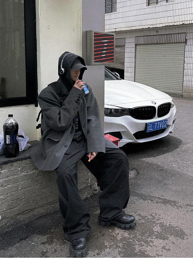 AUROCEAN 冷鐵灰 寬短連帽 重磅 純棉解構 外套(冷鐵灰色)