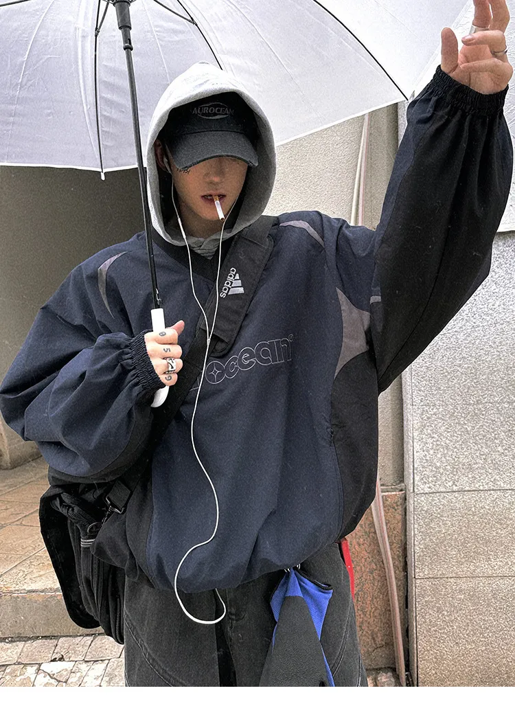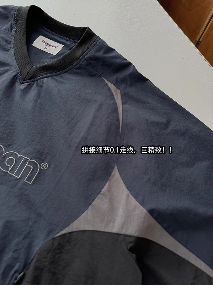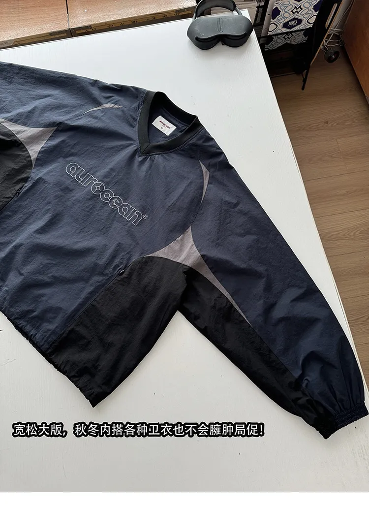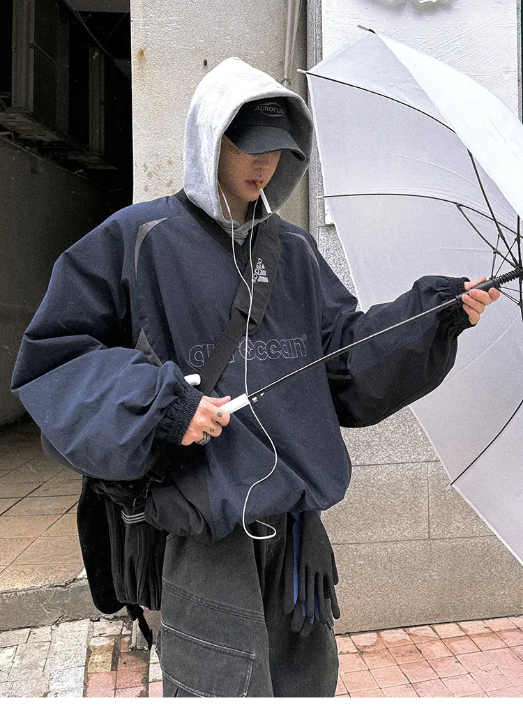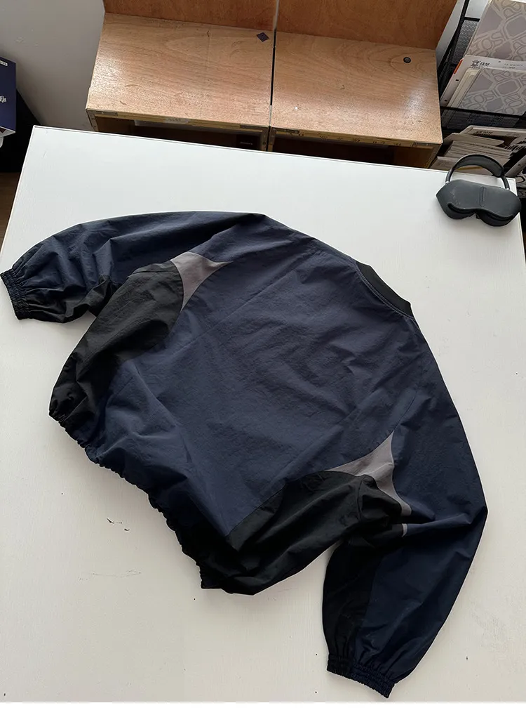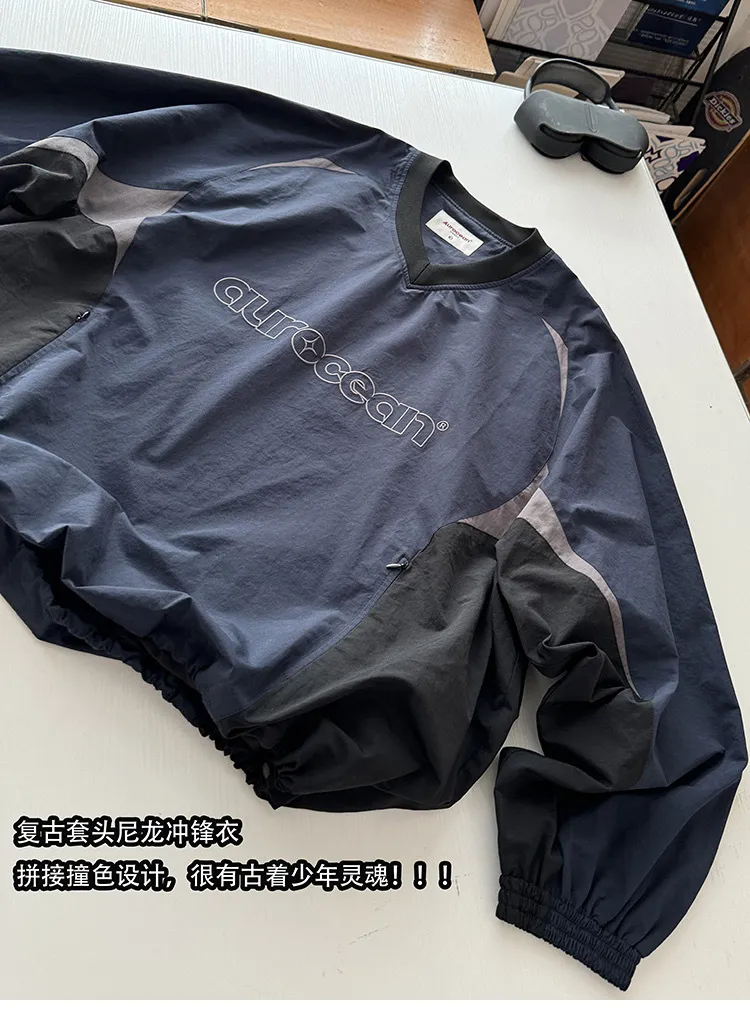 AUROCEAN 古著感 尼龍拼接 短寬 防風外套(藏青色)