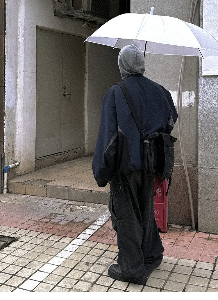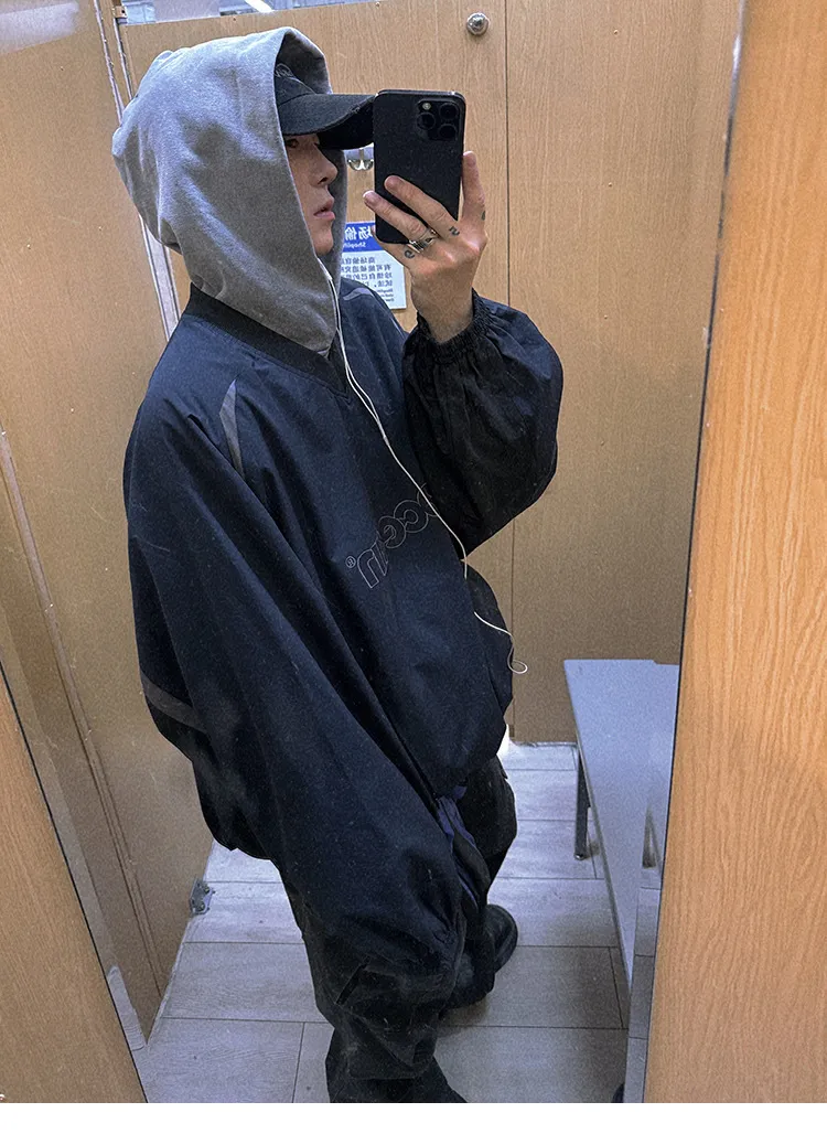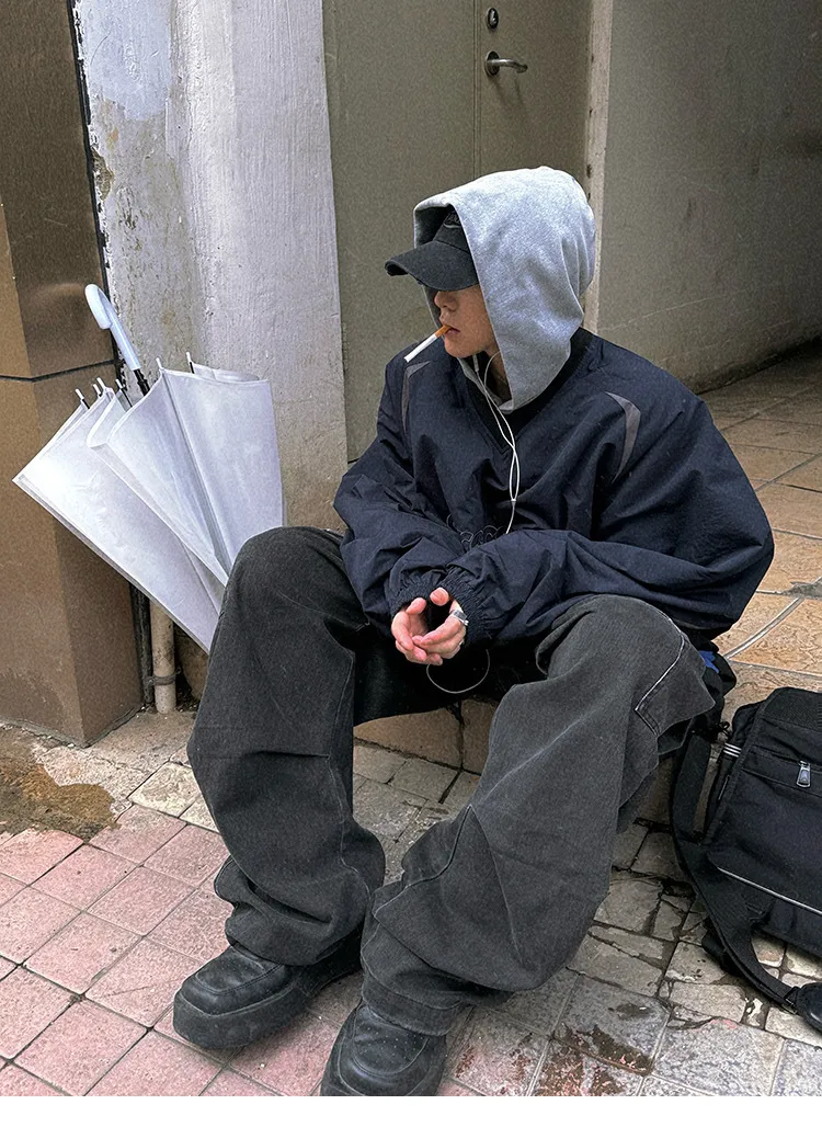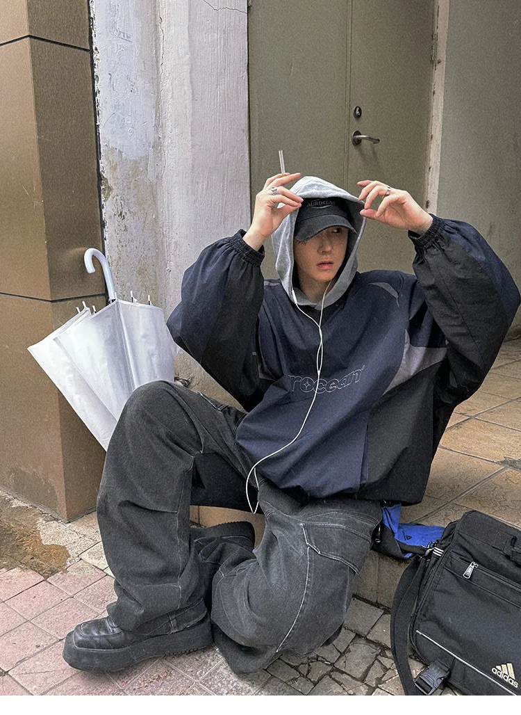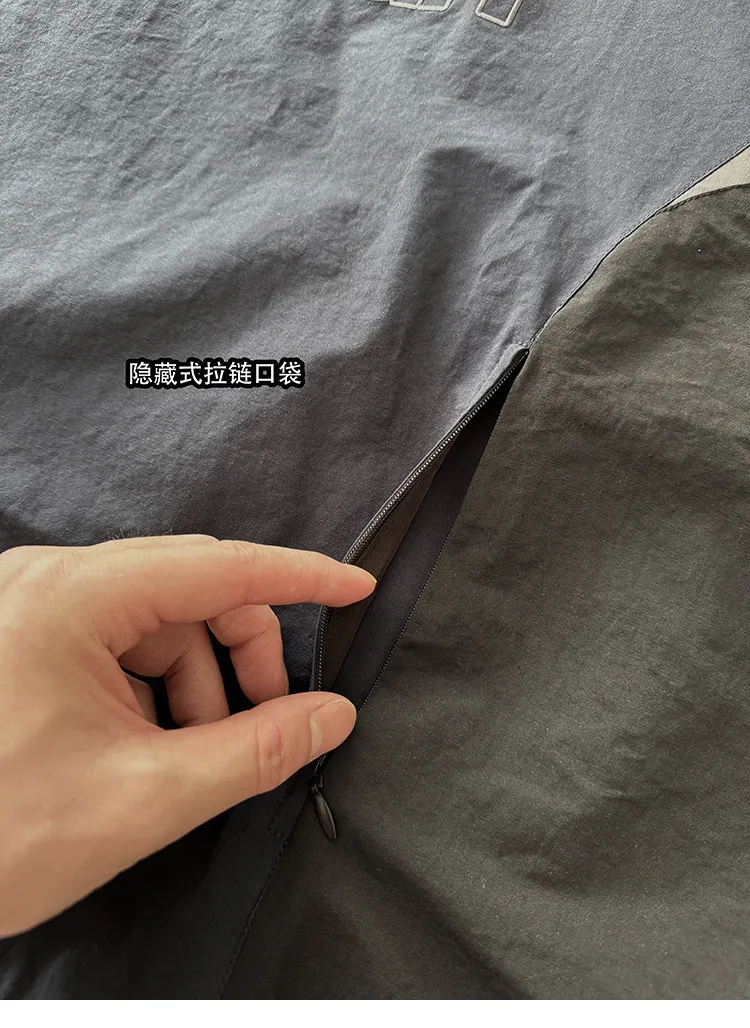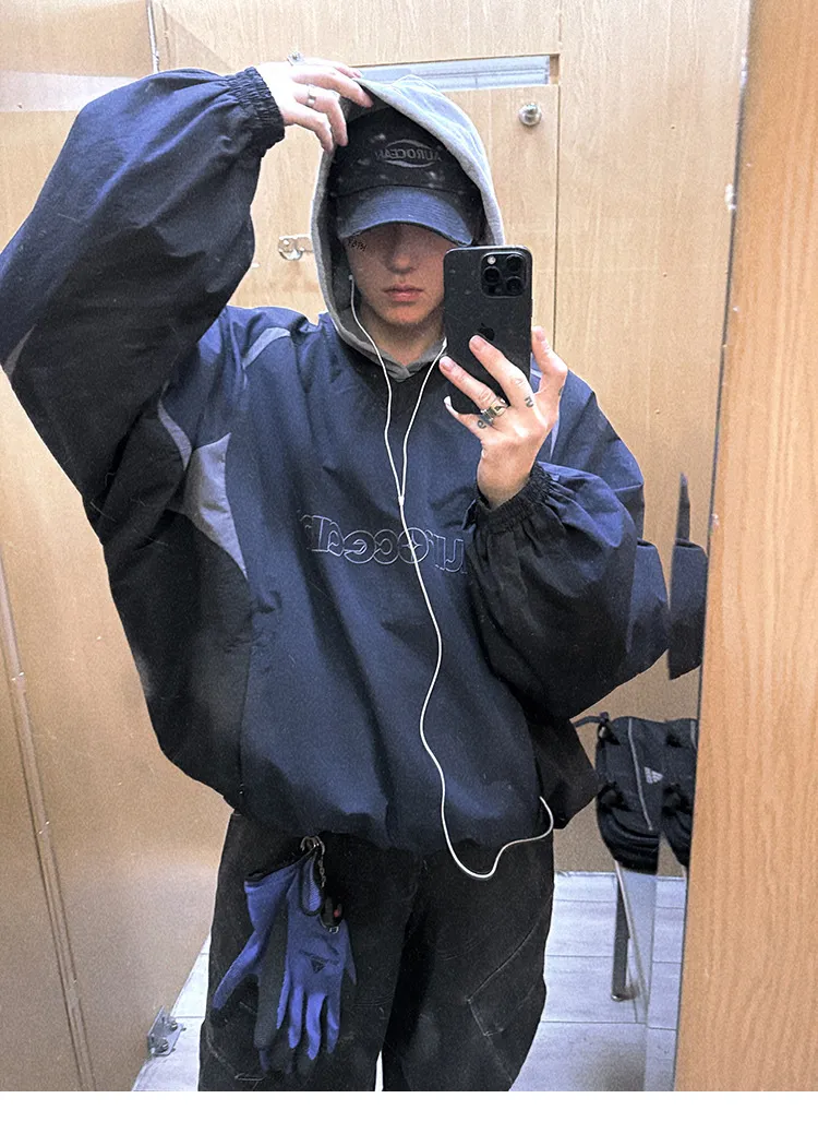 AUROCEAN 古著感 尼龍拼接 短寬 防風外套(藏青色)
