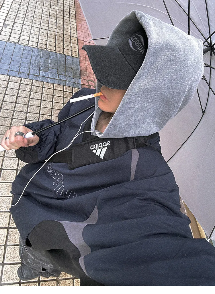 AUROCEAN 灰白 寬短連帽 重磅 純棉解構 外套(灰白色)