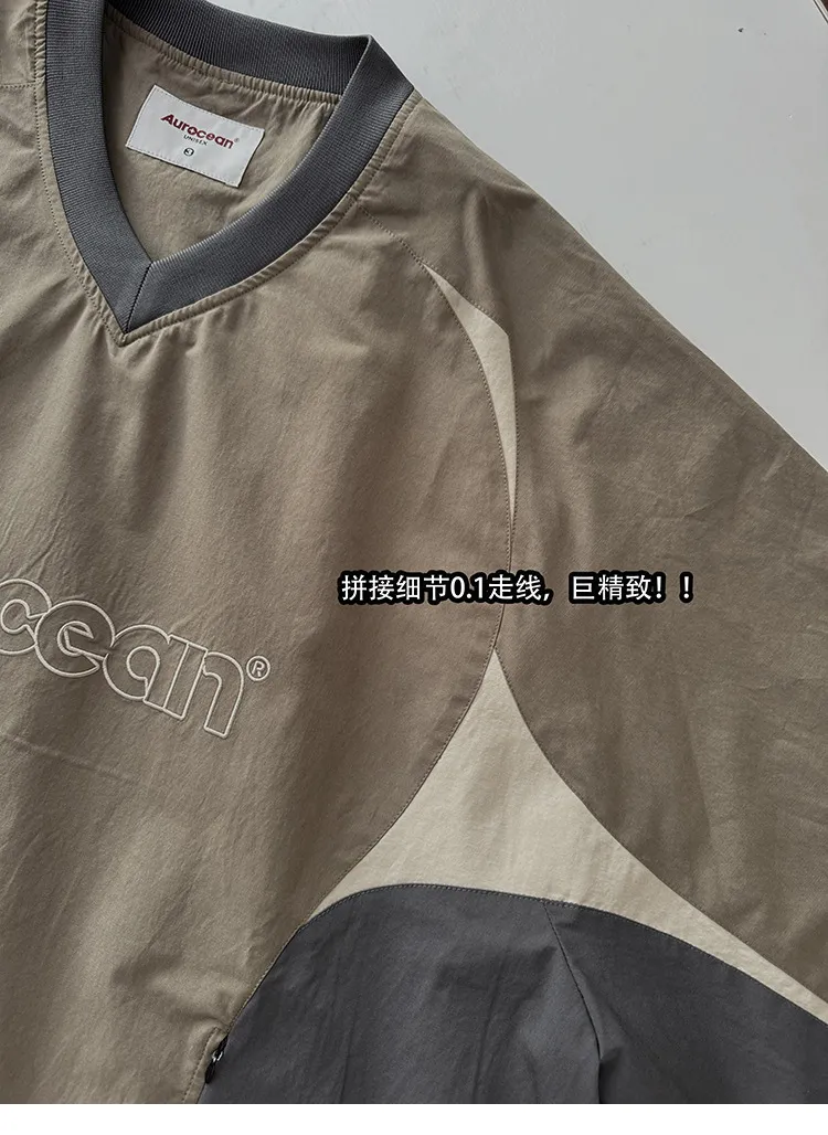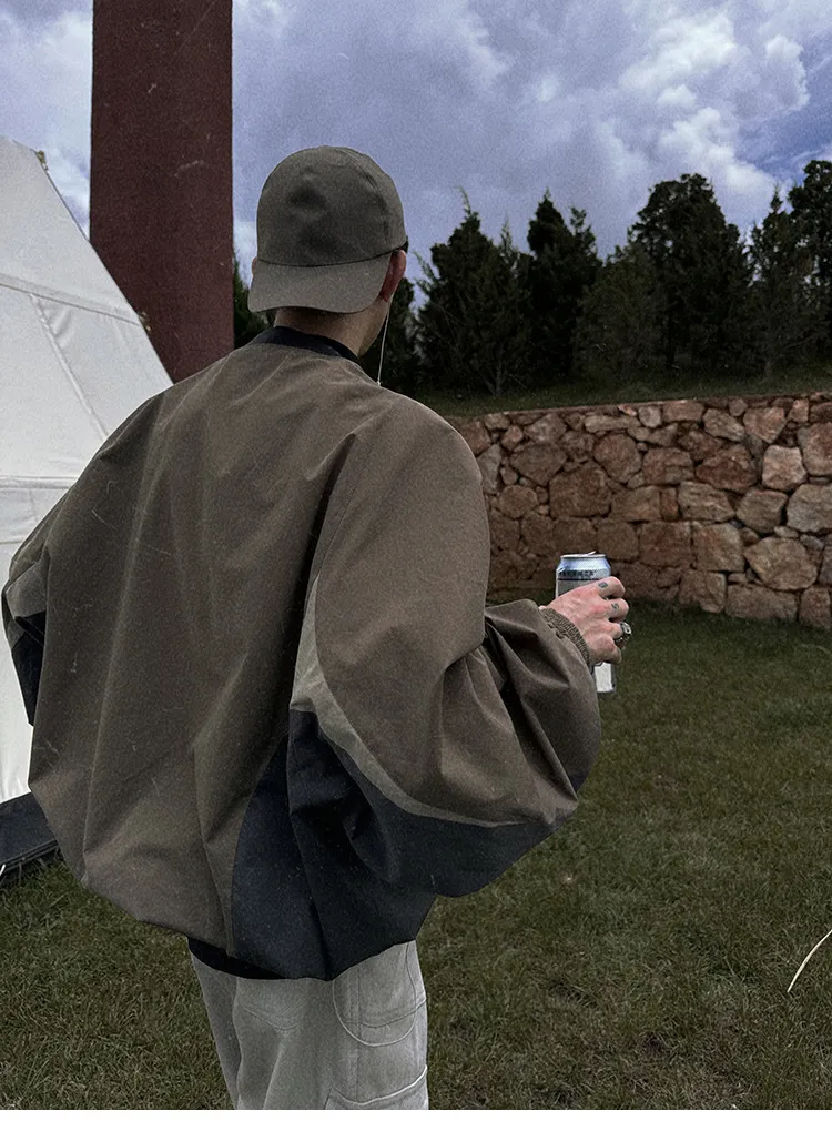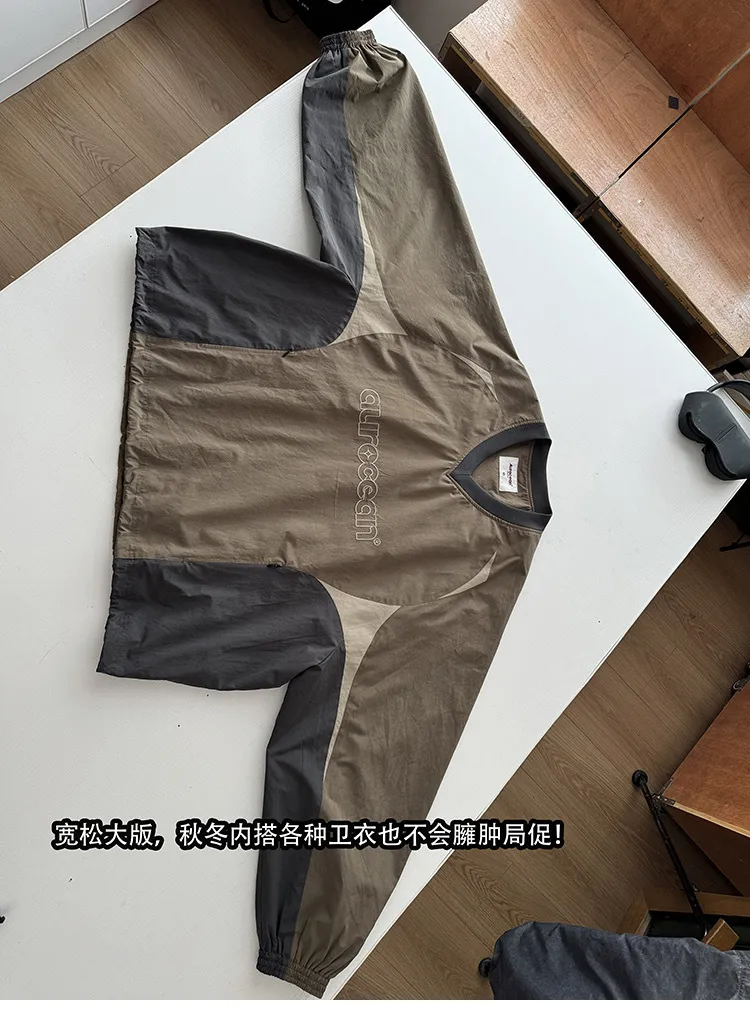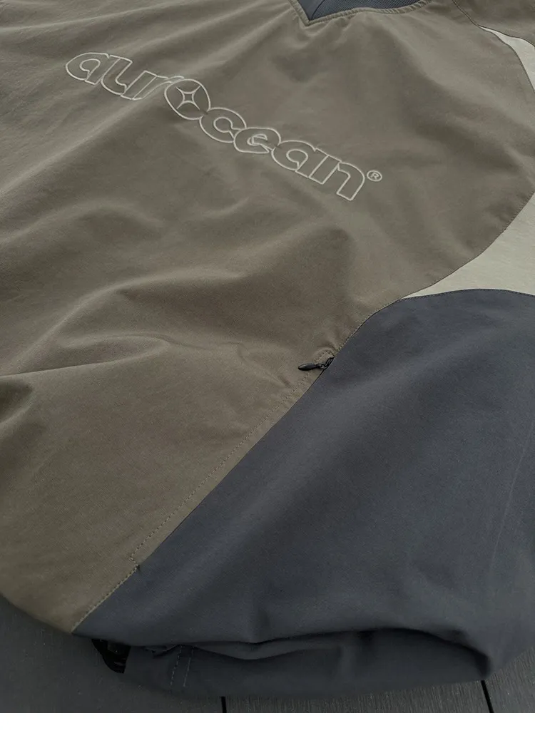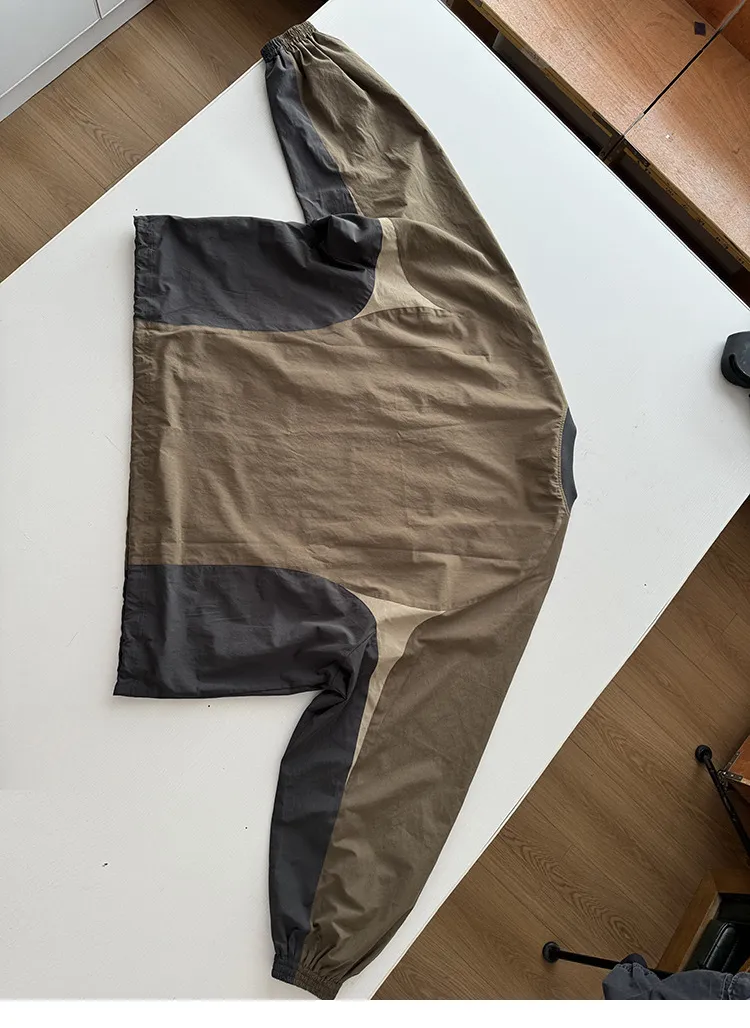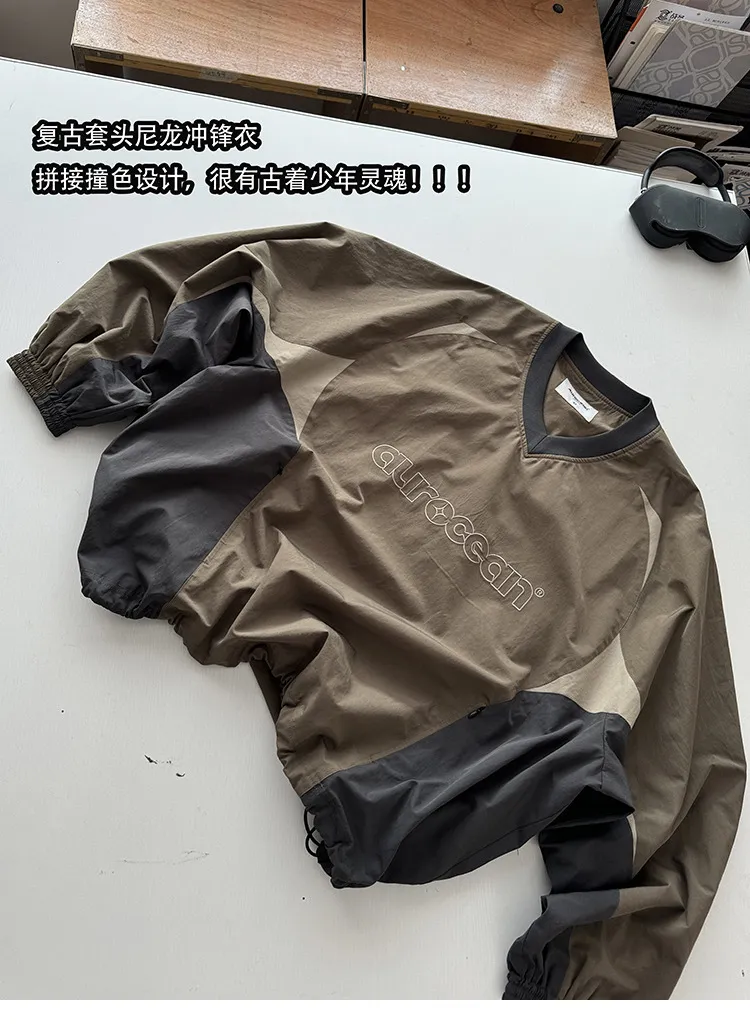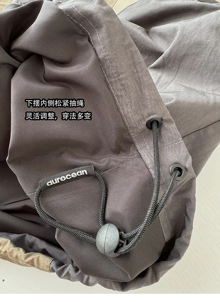 AUROCEAN 古著感 尼龍拼接 短寬 防風外套(咖啡色)