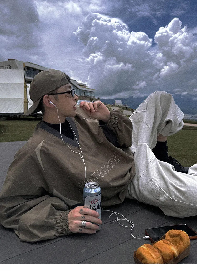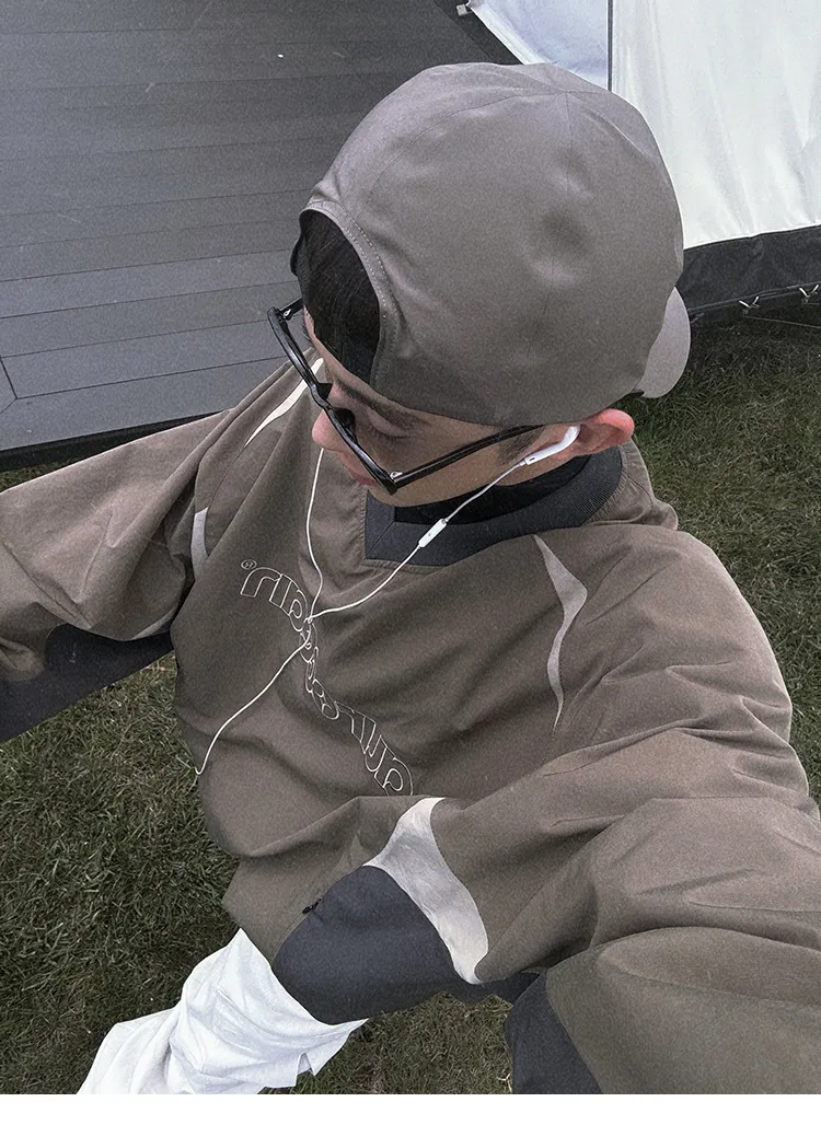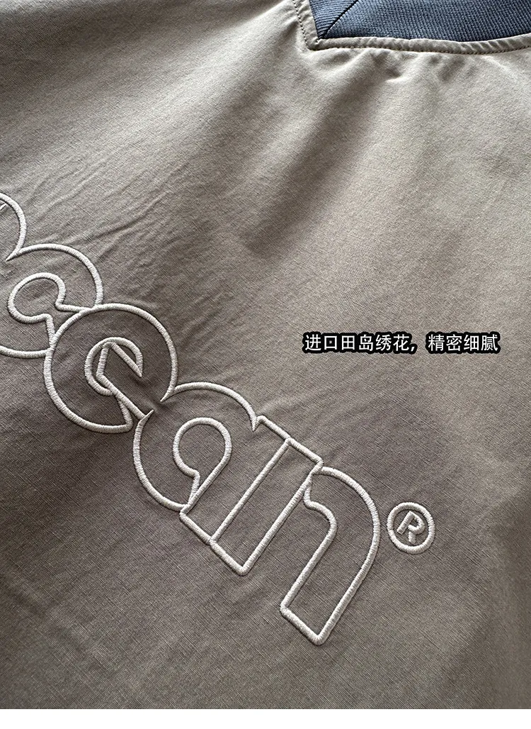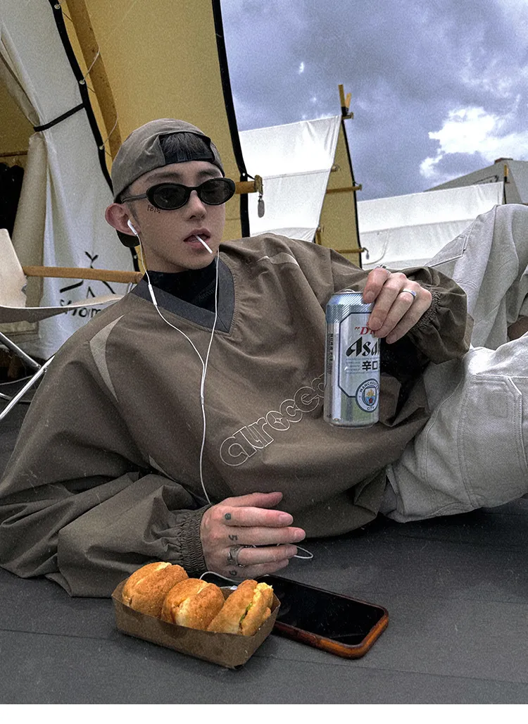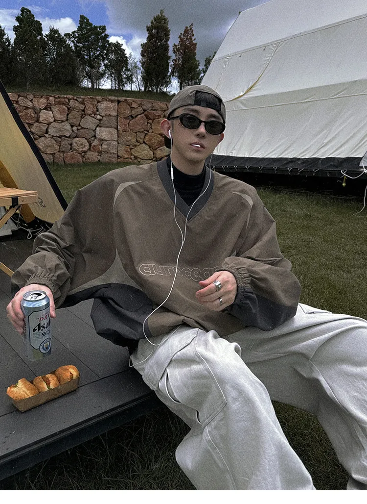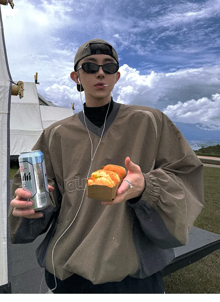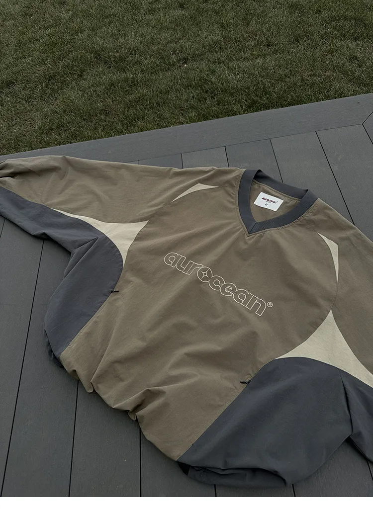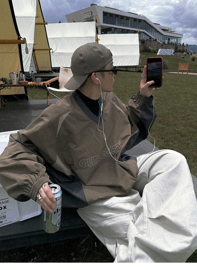 AUROCEAN 古著感 尼龍拼接 短寬 防風外套(咖啡色)