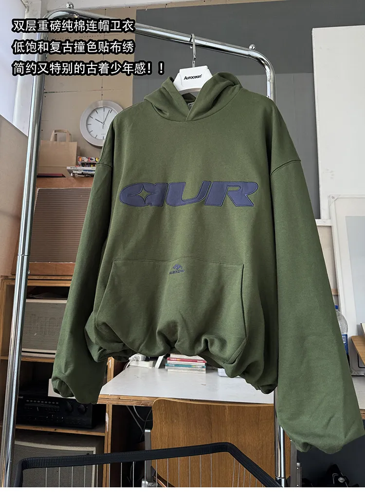 AUROCEAN 復古學院 刺繡 480G 重磅 破壞 大學踢(藏青色)