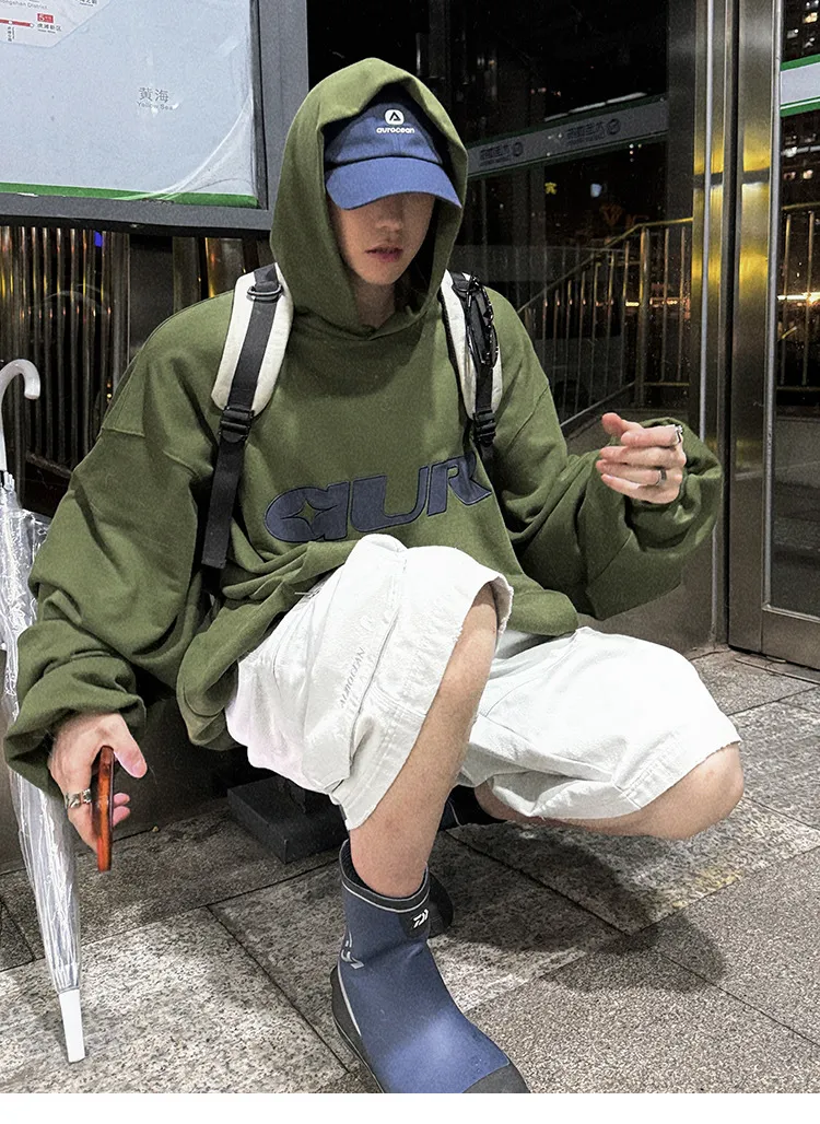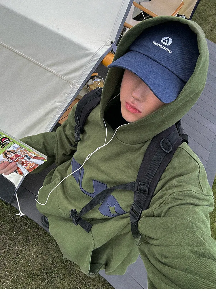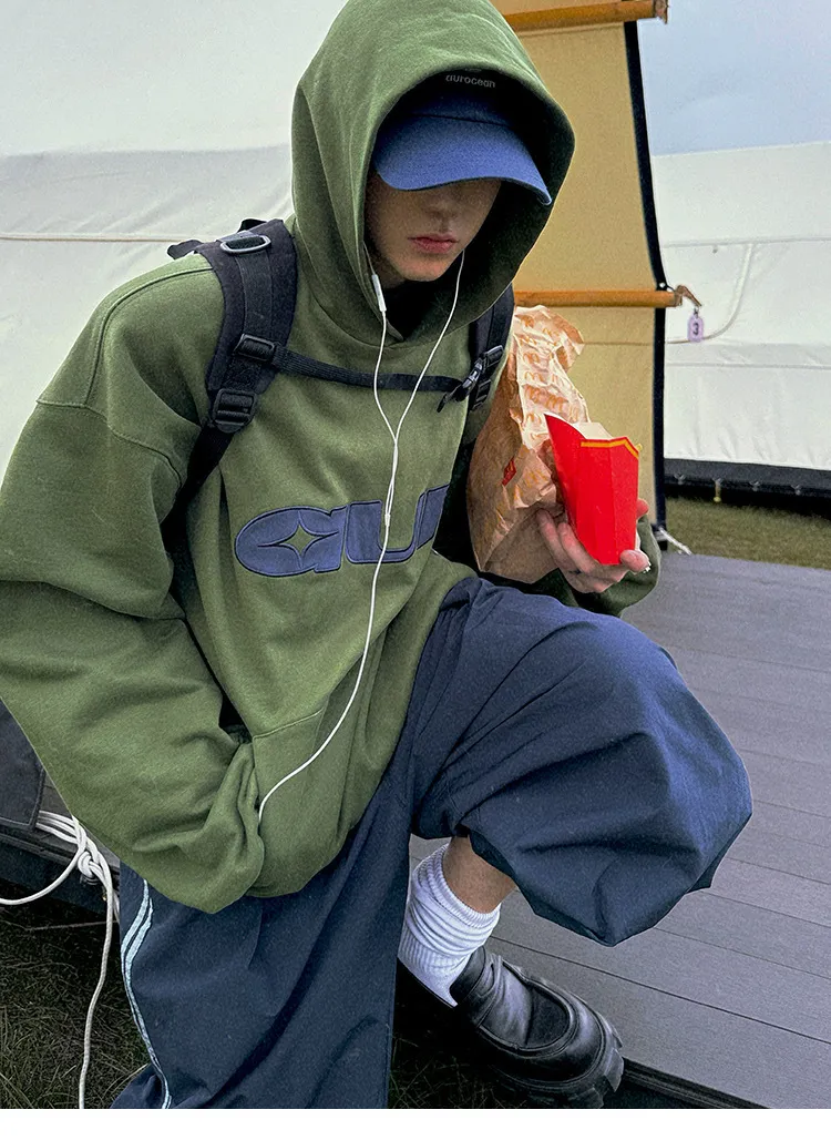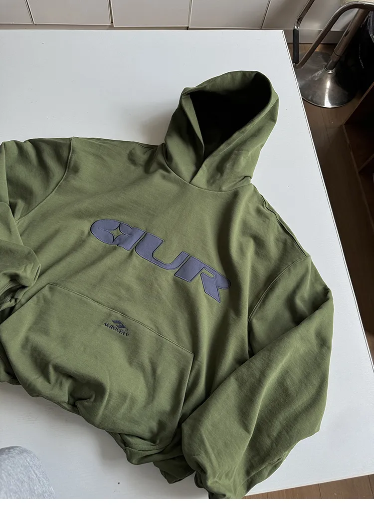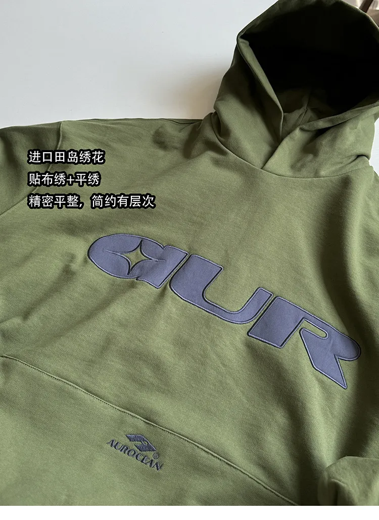 AUROCEAN 雙層寬短 貼布刺繡 帽踢(草綠色)