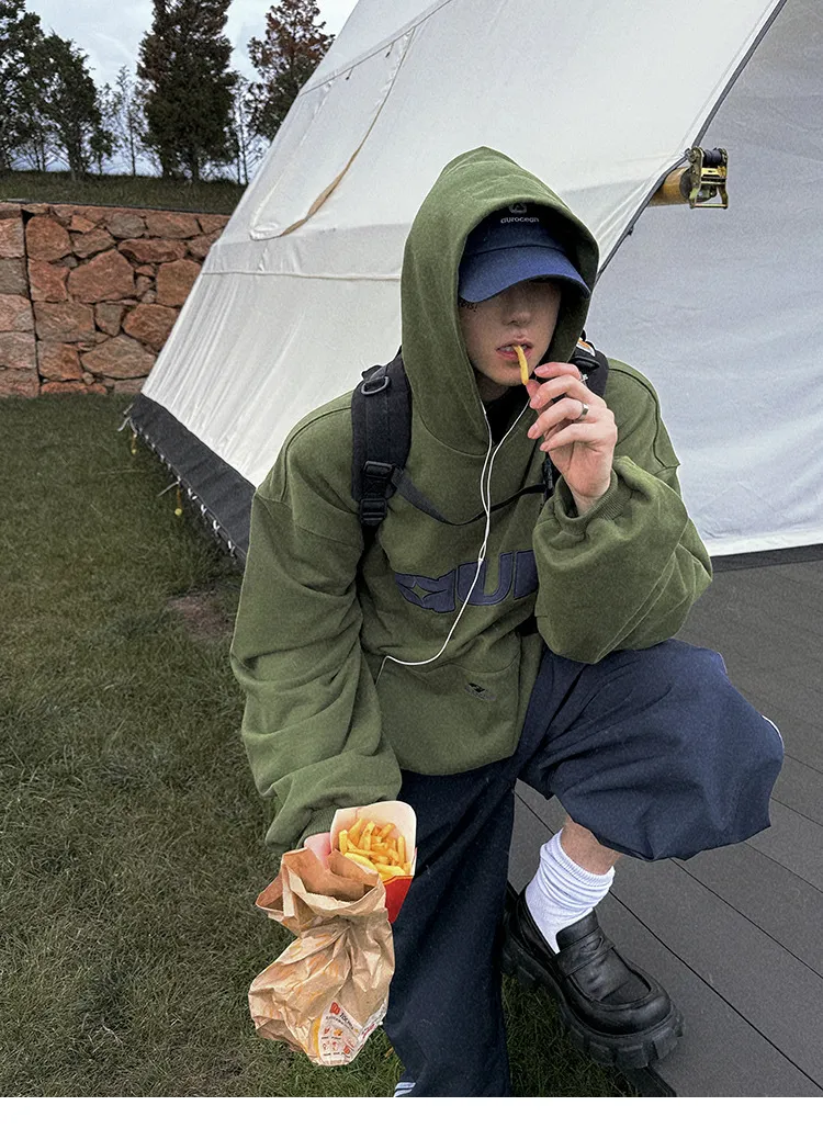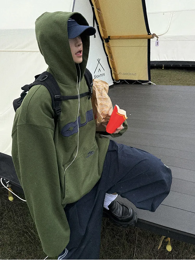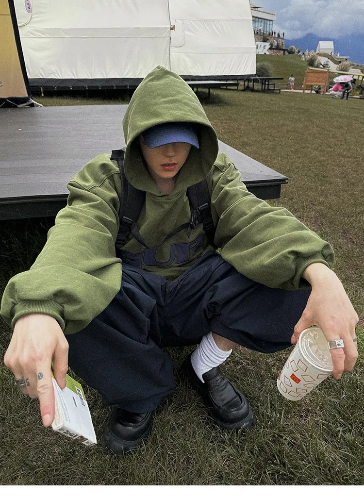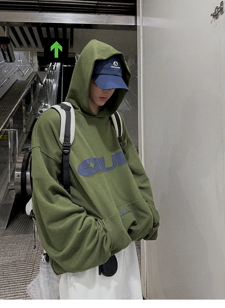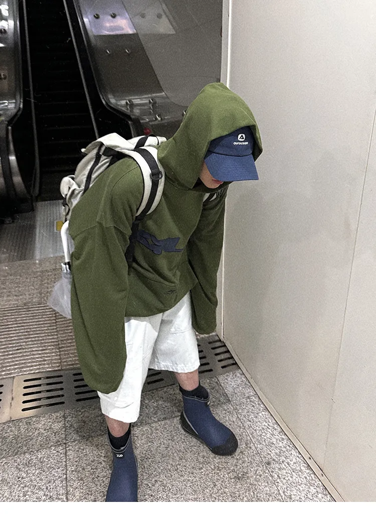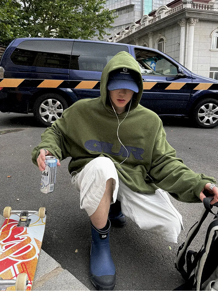 AUROCEAN 雙層寬短 貼布刺繡 帽踢(草綠色)