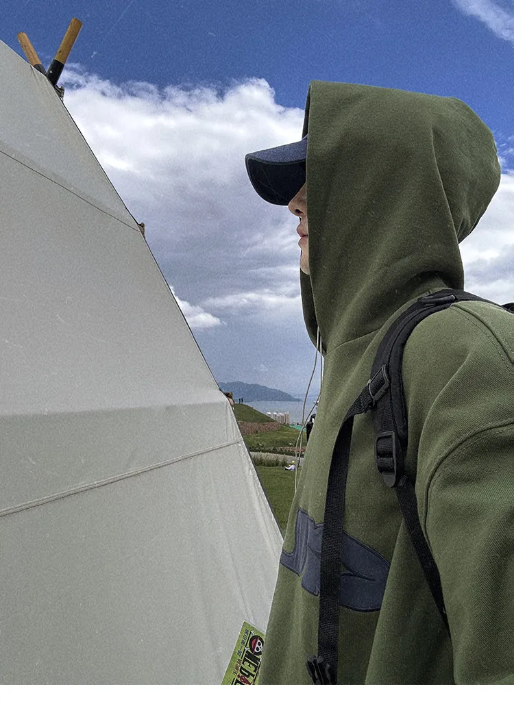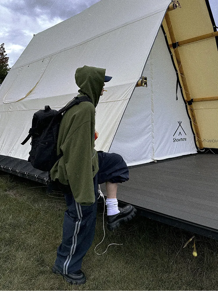 AUROCEAN 尼龍 寬短連帽 復古深咖 廓形 外套(深咖色)