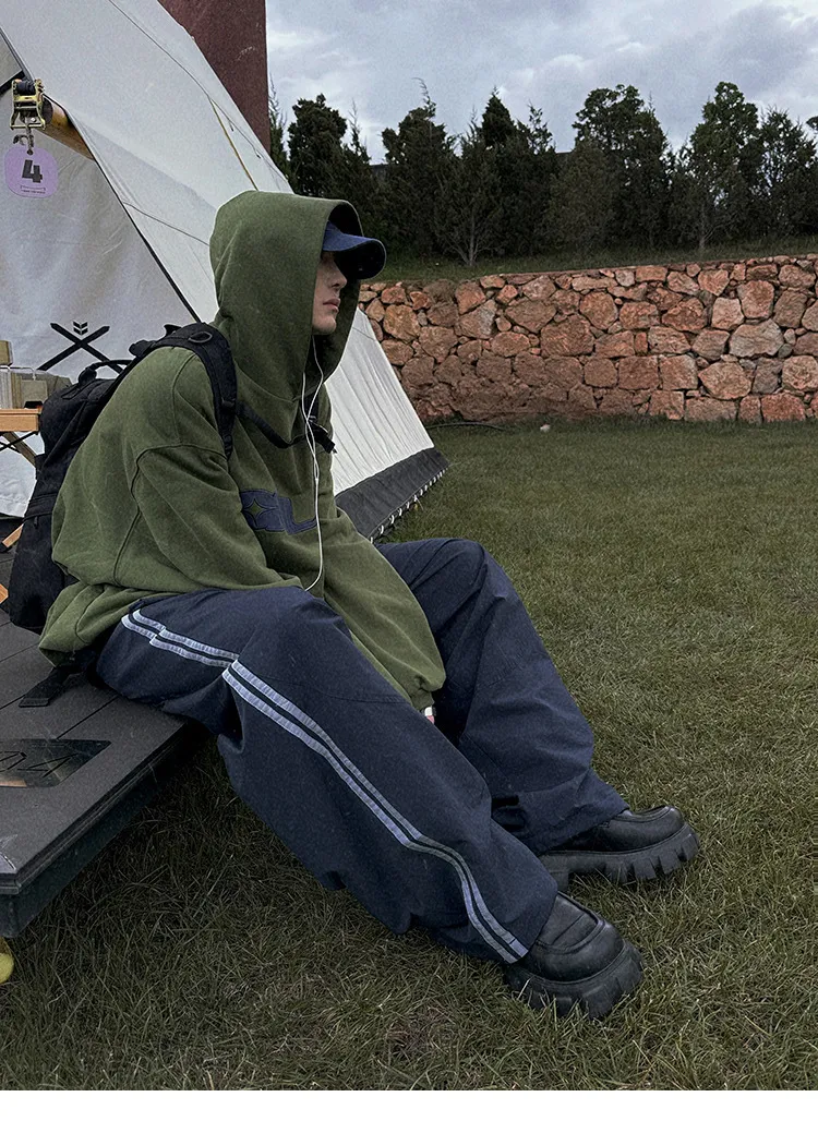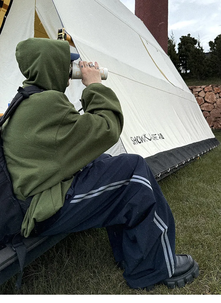 AUROCEAN 灰白 邊條 堆疊感 尼龍 運動褲 長褲(灰白色)