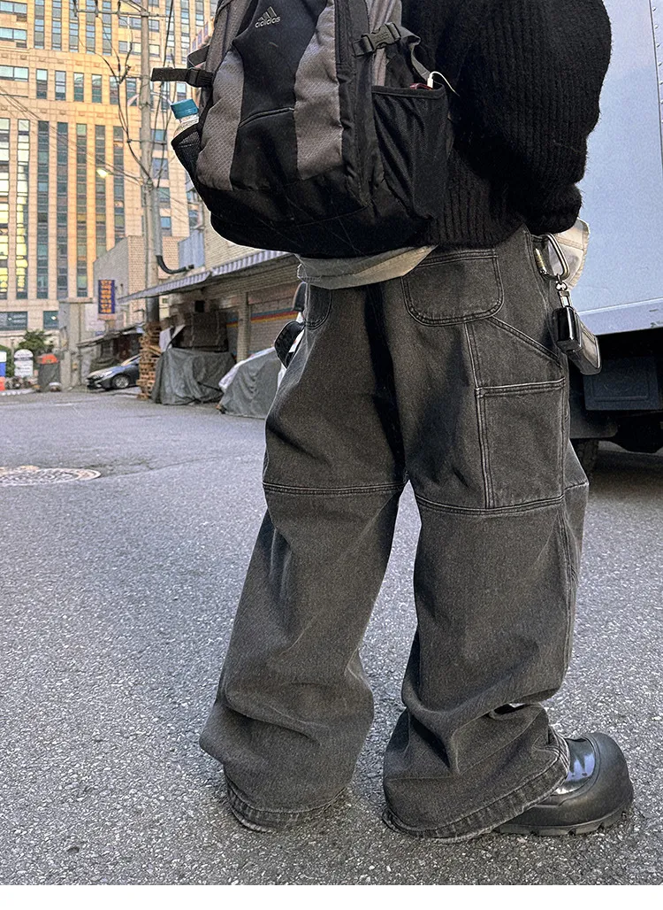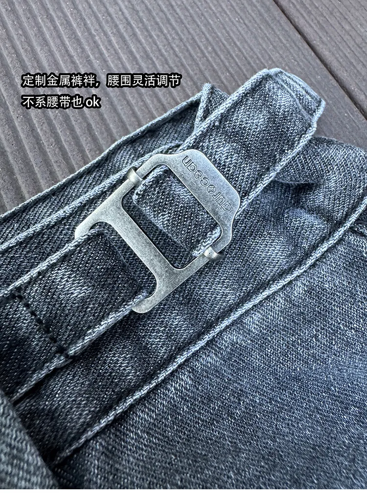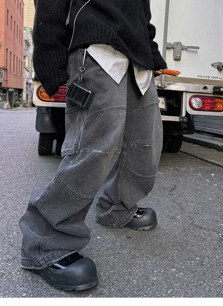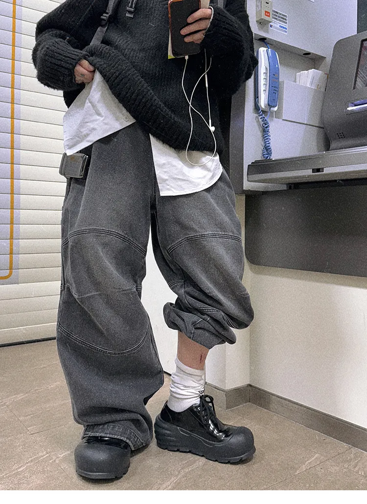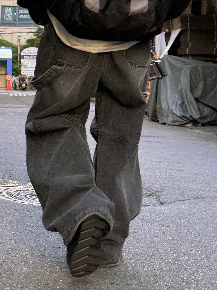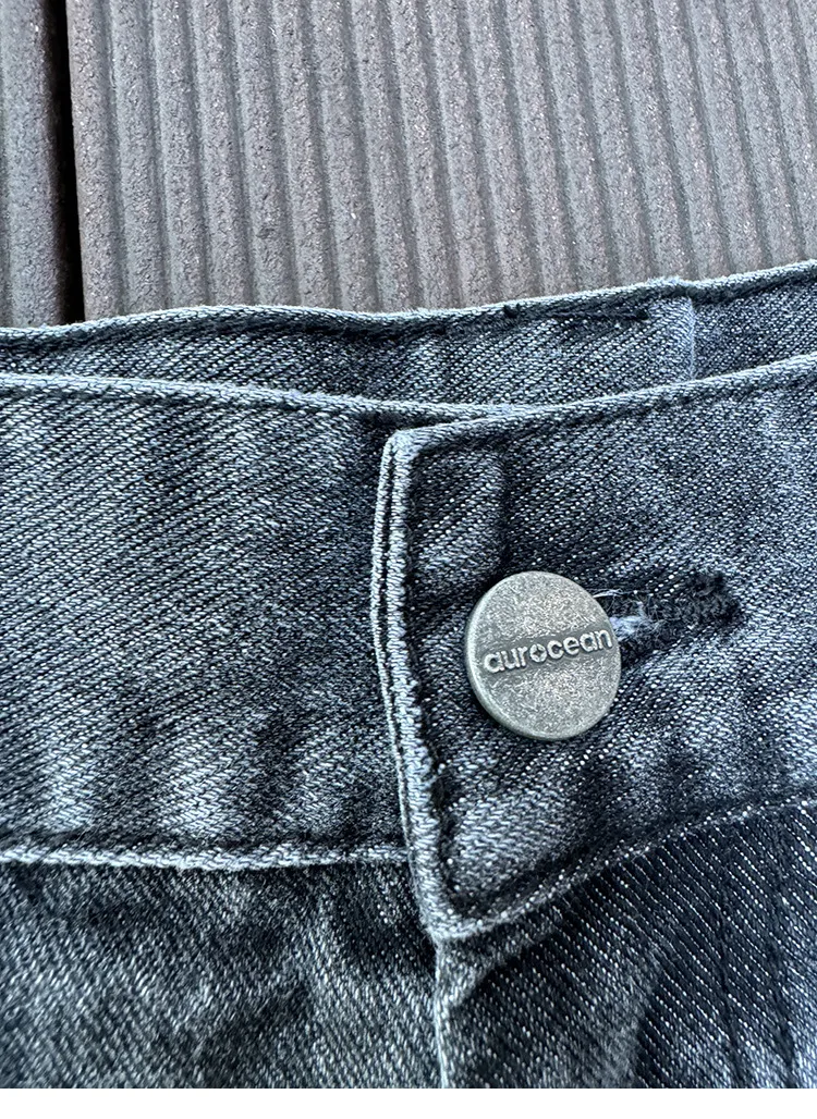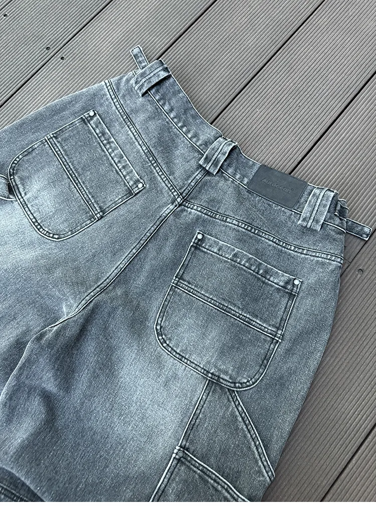 AUROCEAN 灰色水洗 重磅 立體剪裁 工裝 牛仔褲(灰色)