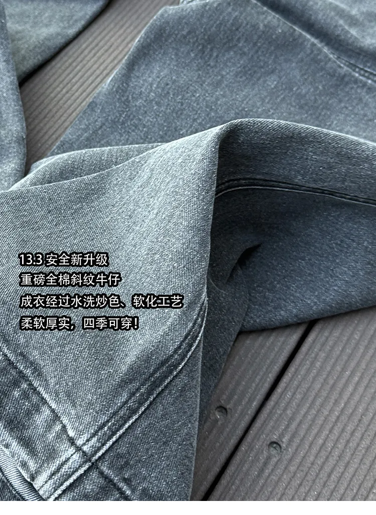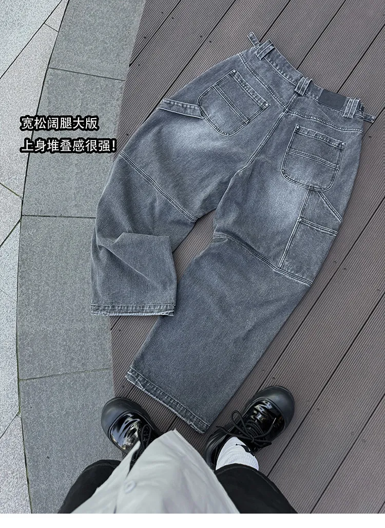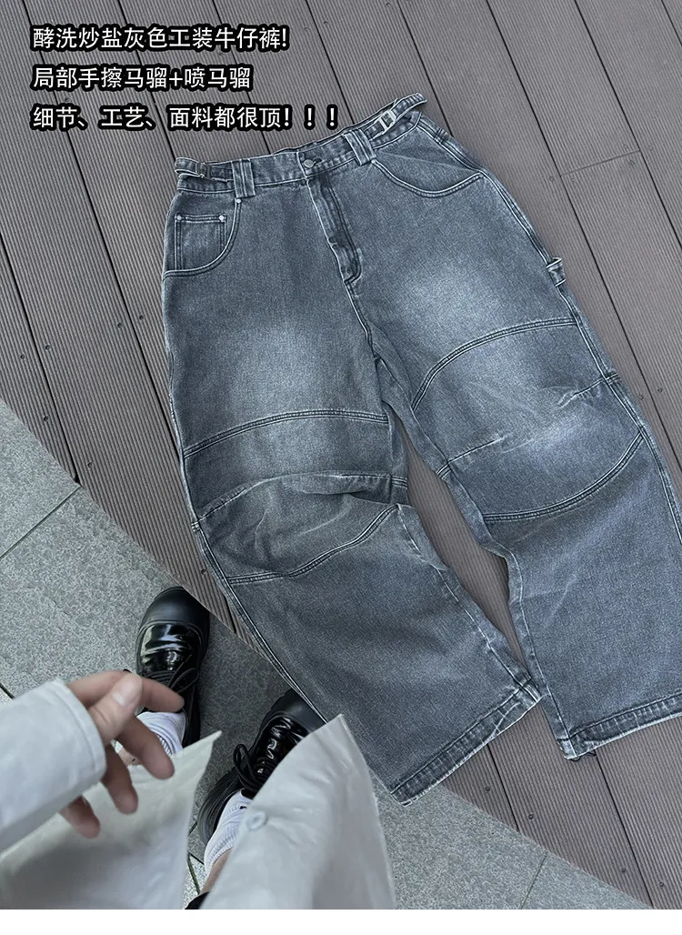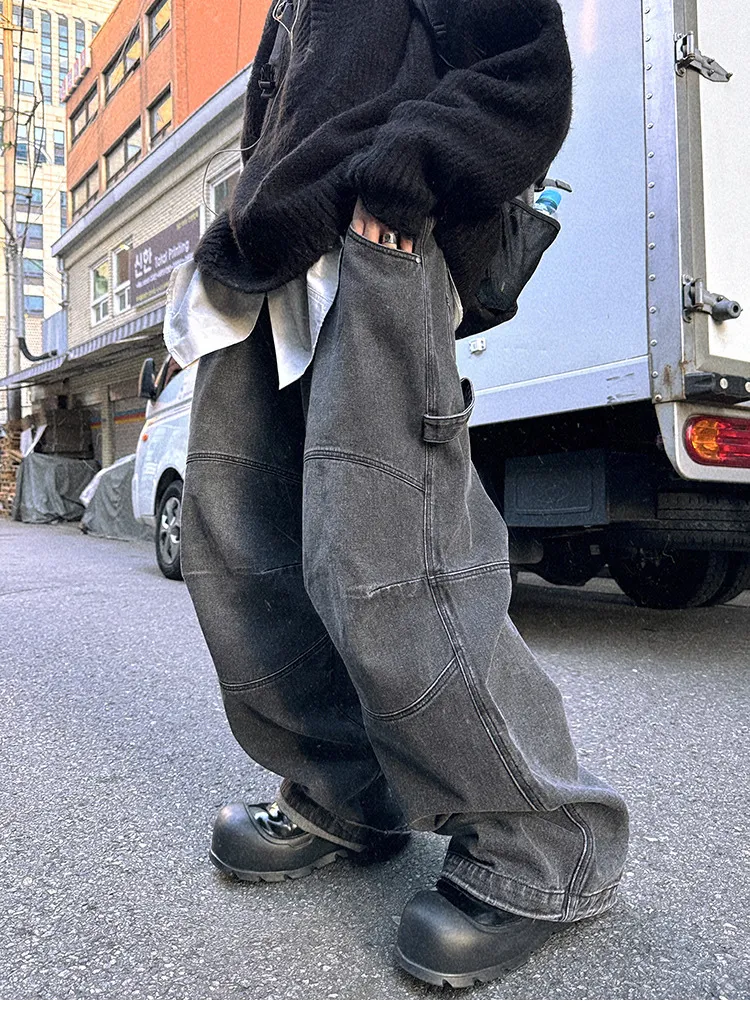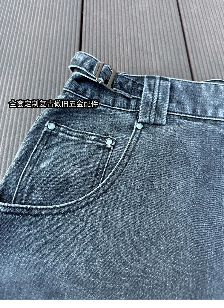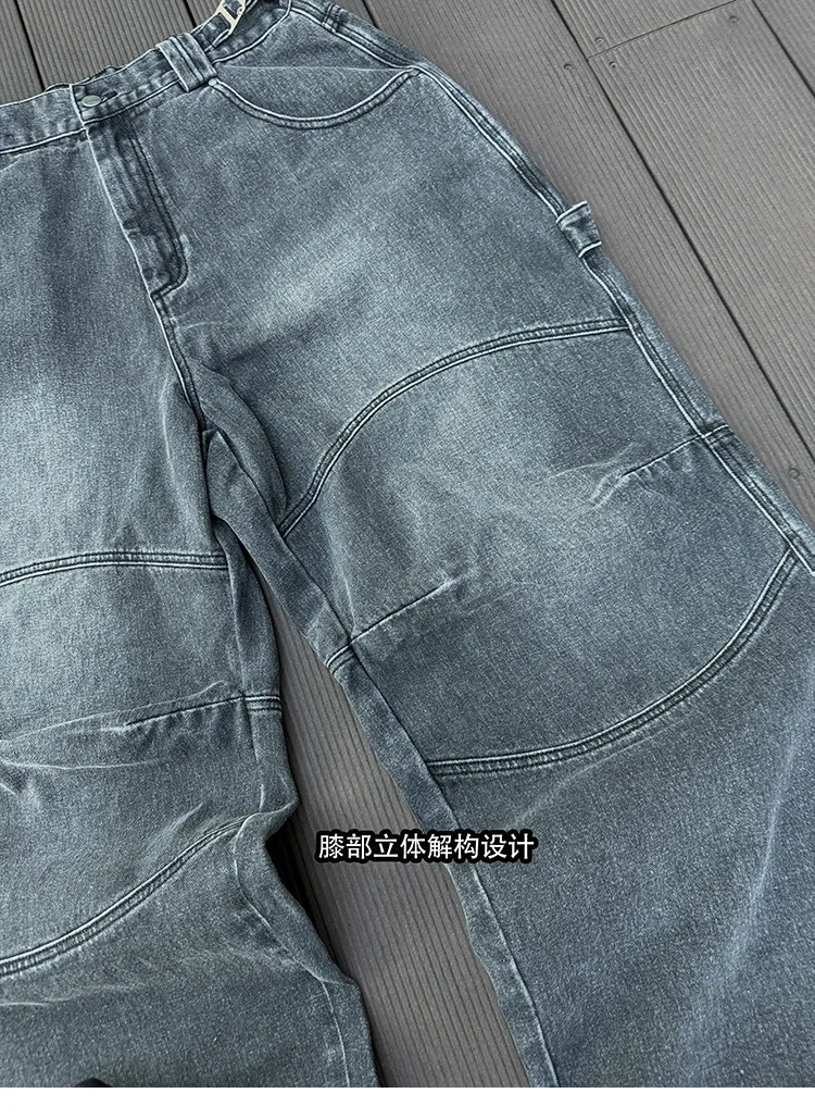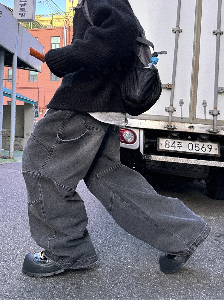 AUROCEAN 灰色水洗 重磅 立體剪裁 工裝 牛仔褲(灰色)