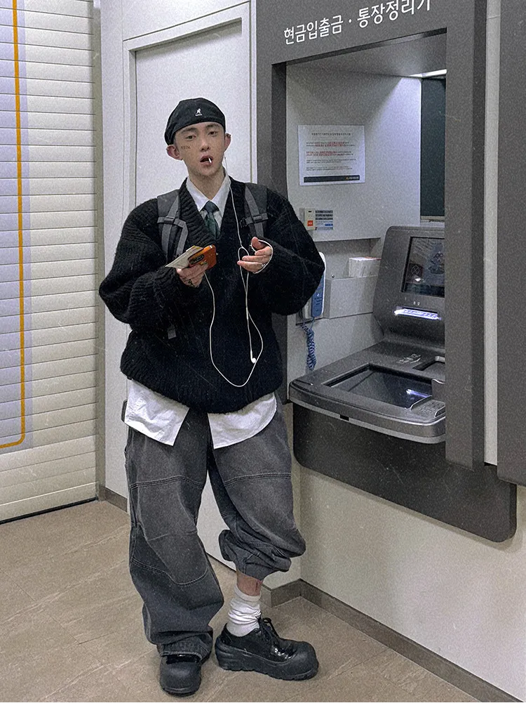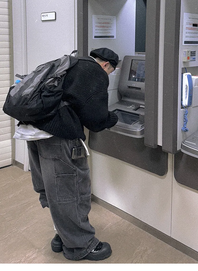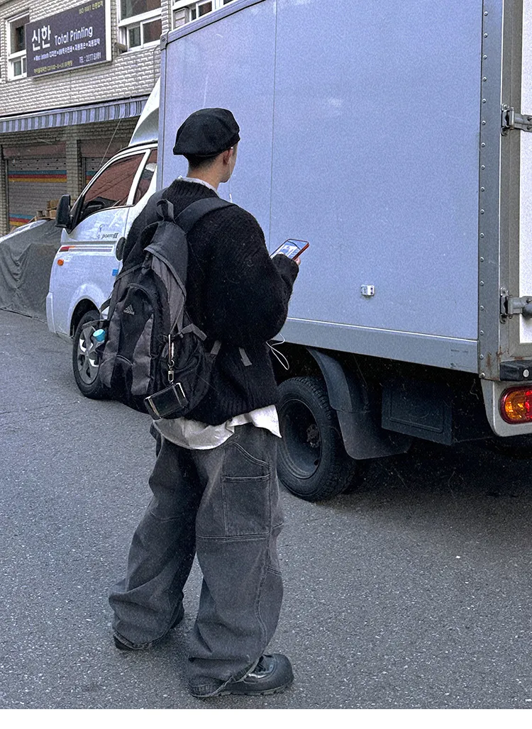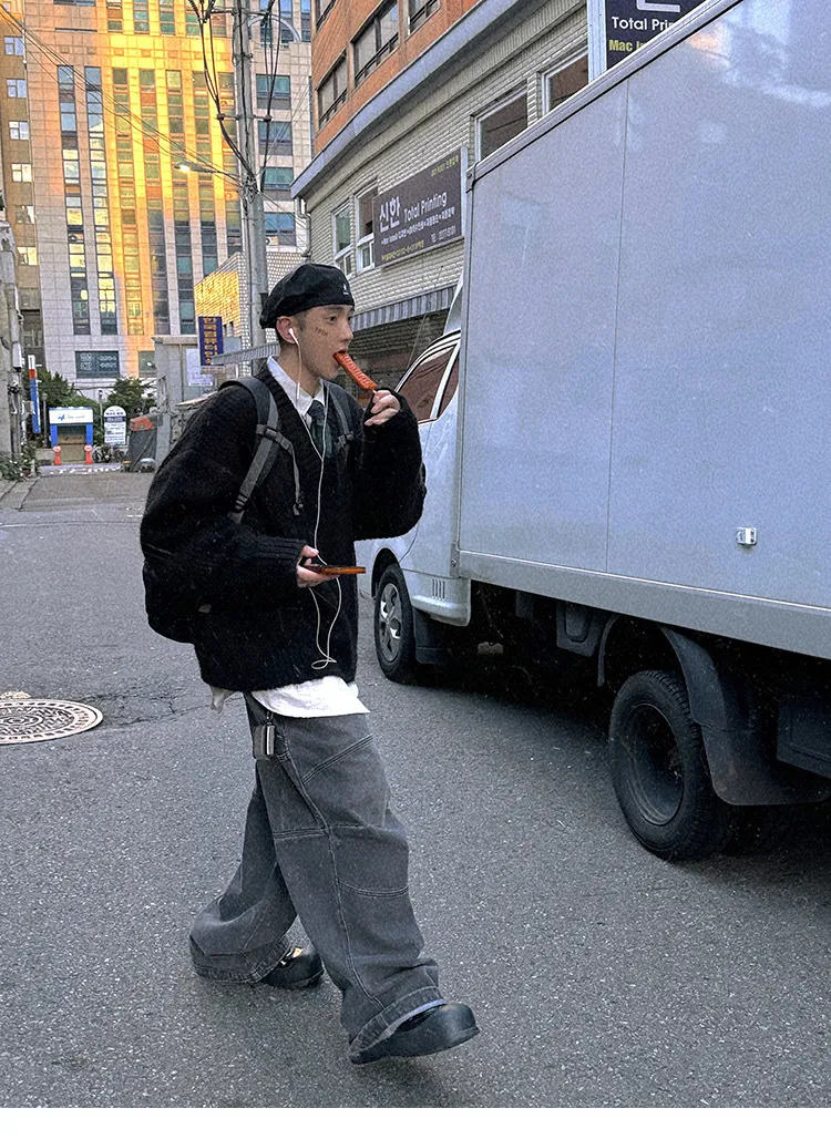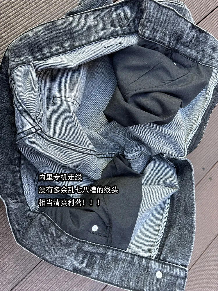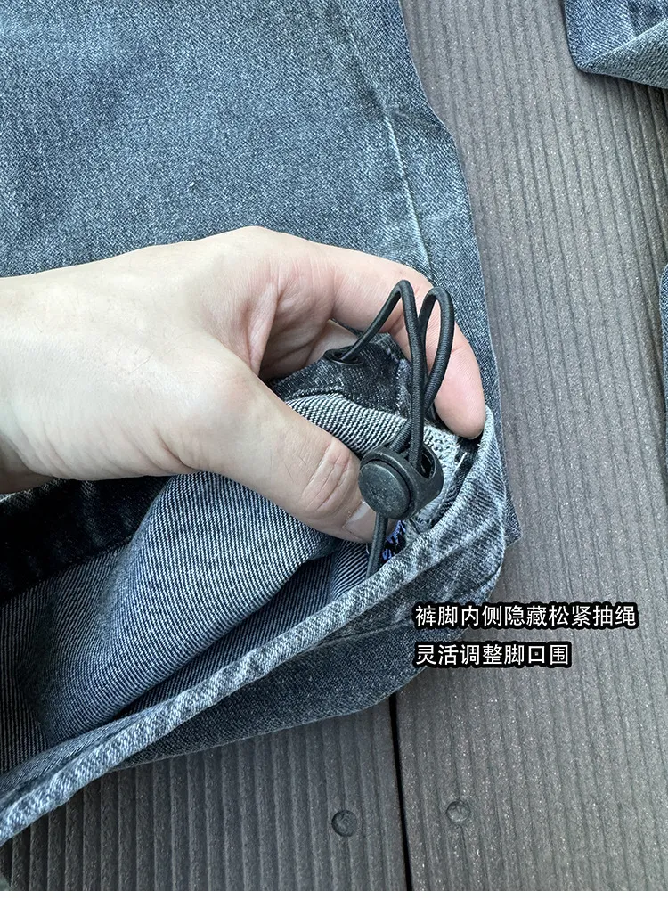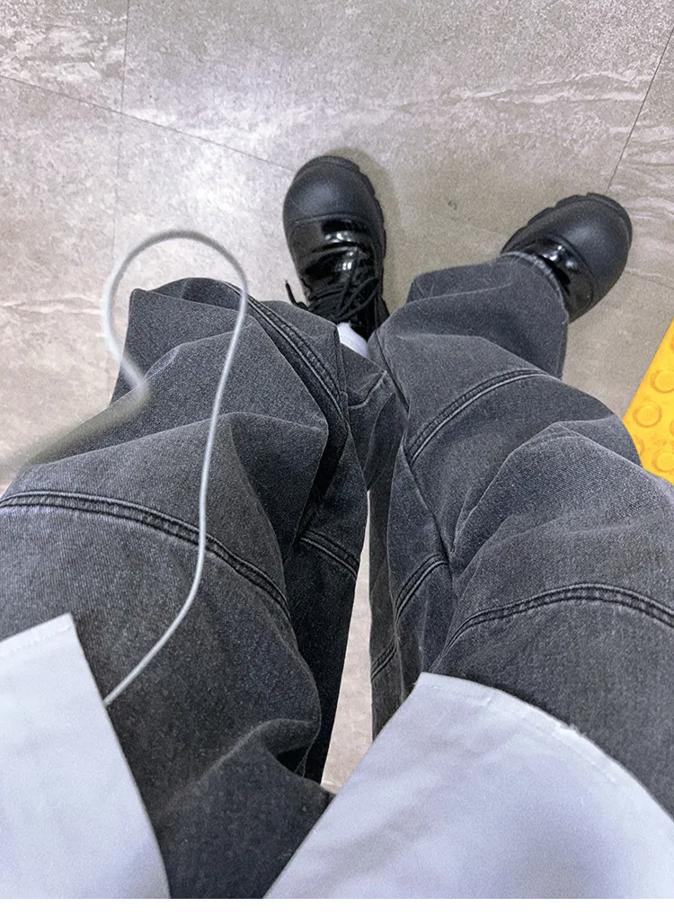 AUROCEAN 灰色水洗 重磅 立體剪裁 工裝 牛仔褲(灰色)
