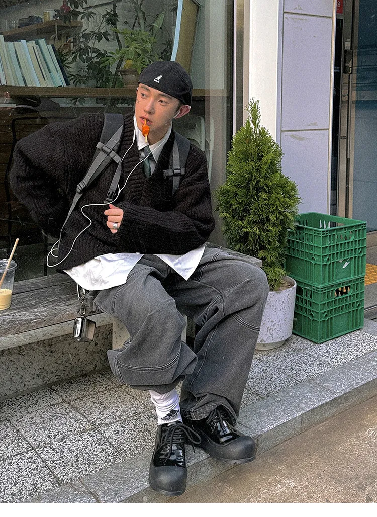 AUROCEAN 加厚 水洗純棉 學院風 廓形 襯衫(碳灰色)