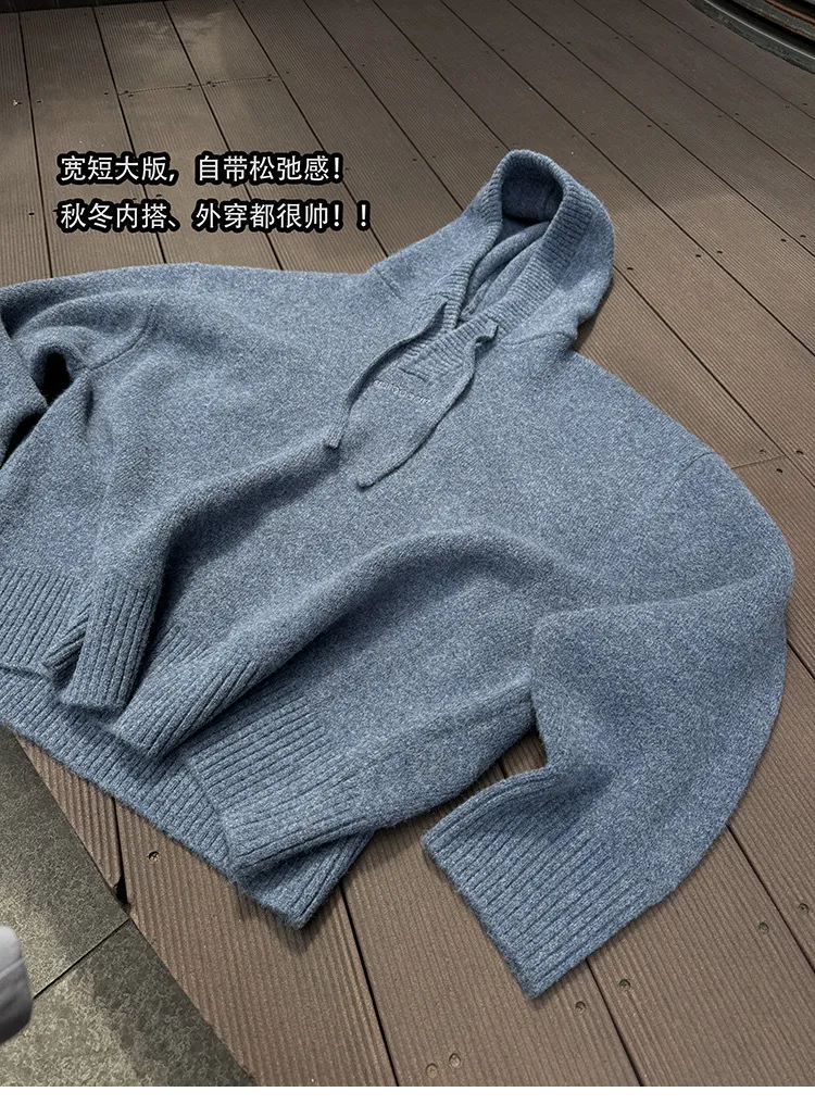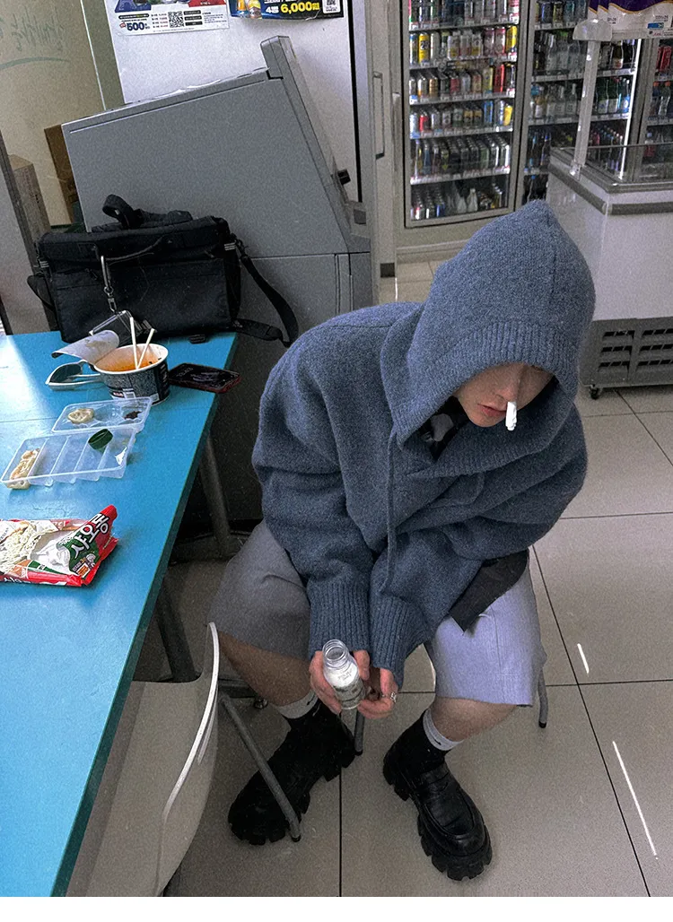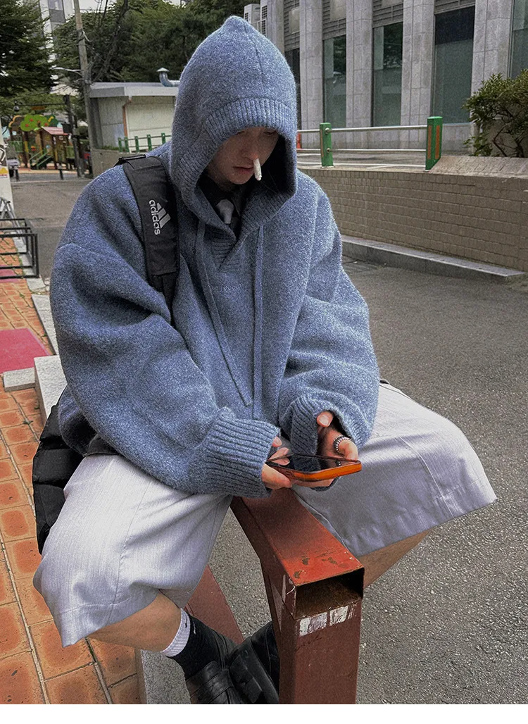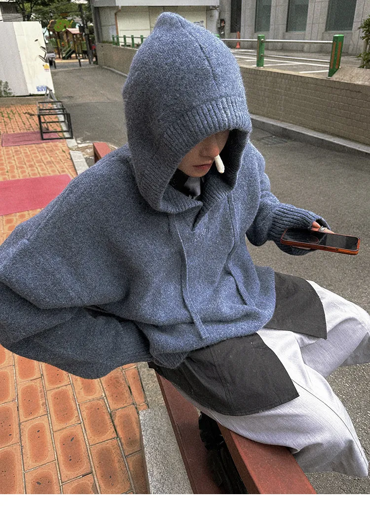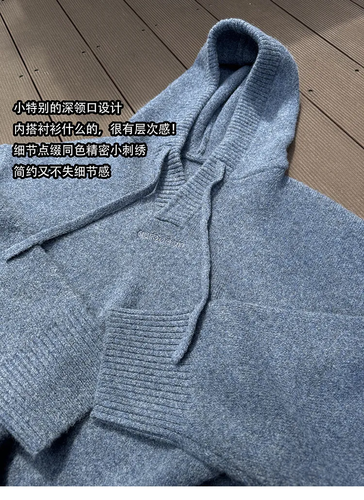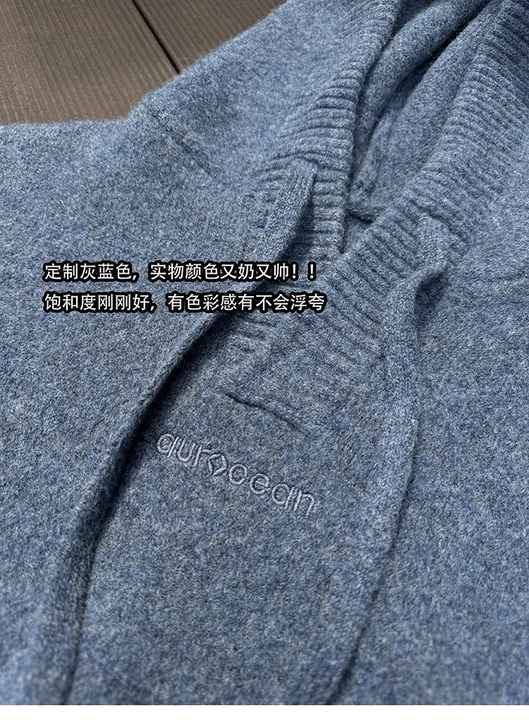 AUROCEAN 毛茸茸 碳灰 連帽 羊毛帽踢(灰藍色)