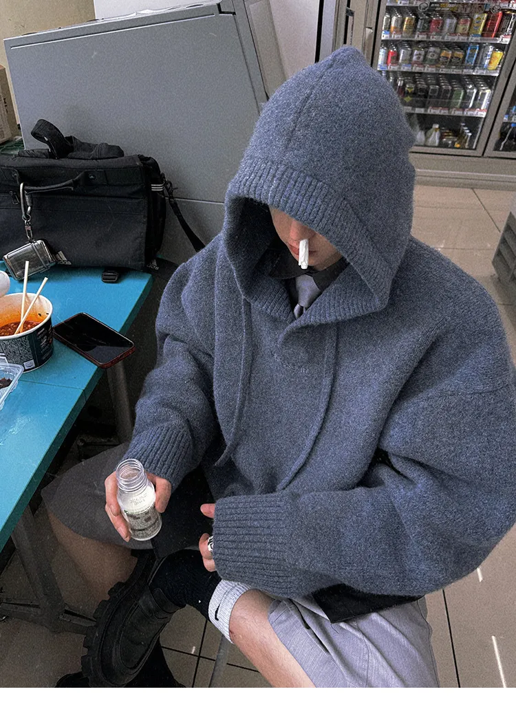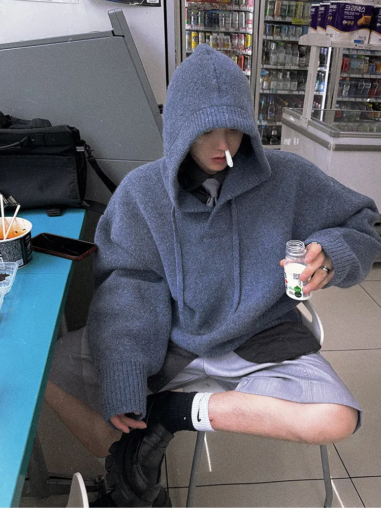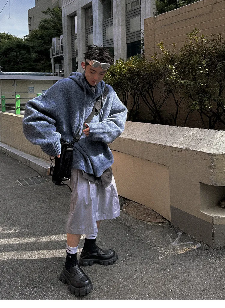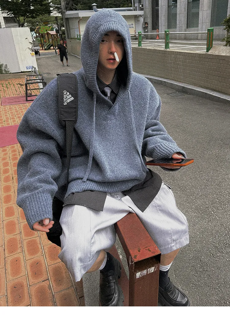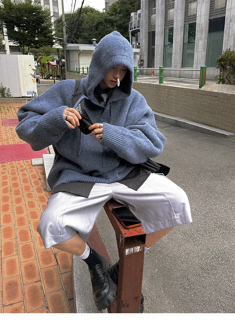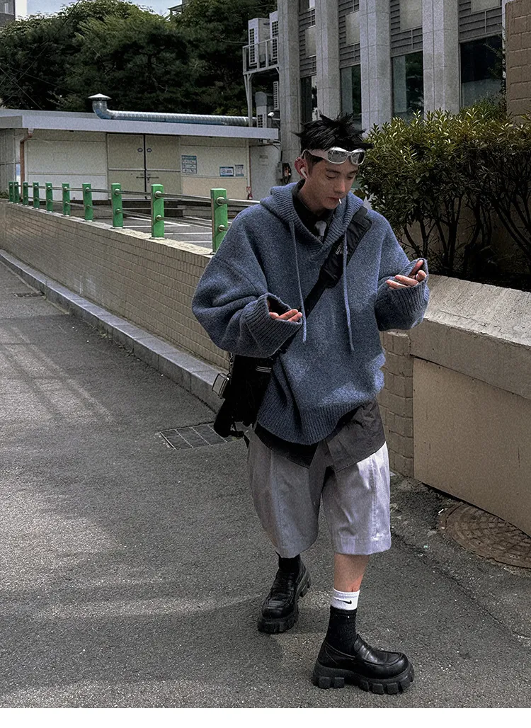 AUROCEAN 毛茸茸 碳灰 連帽 羊毛帽踢(灰藍色)