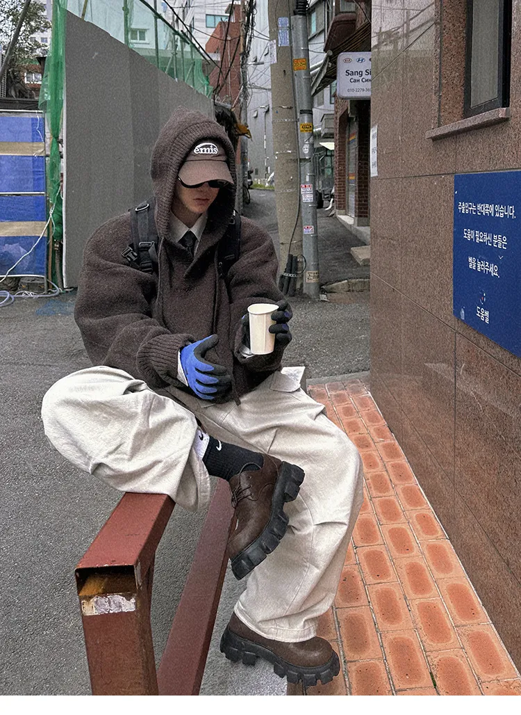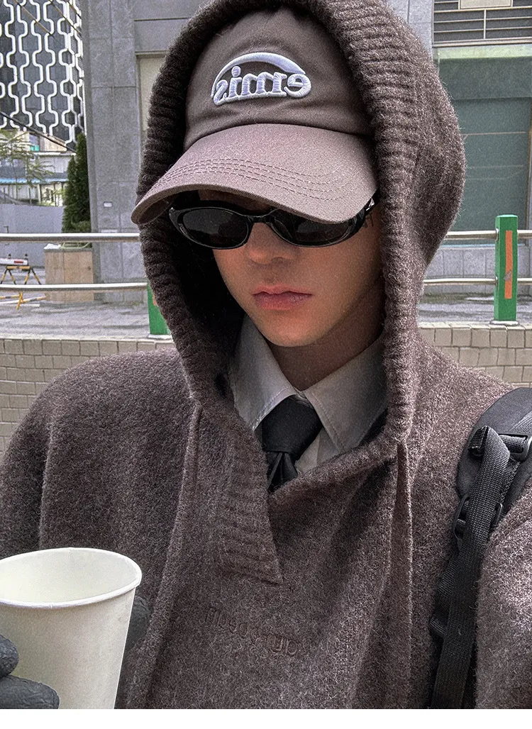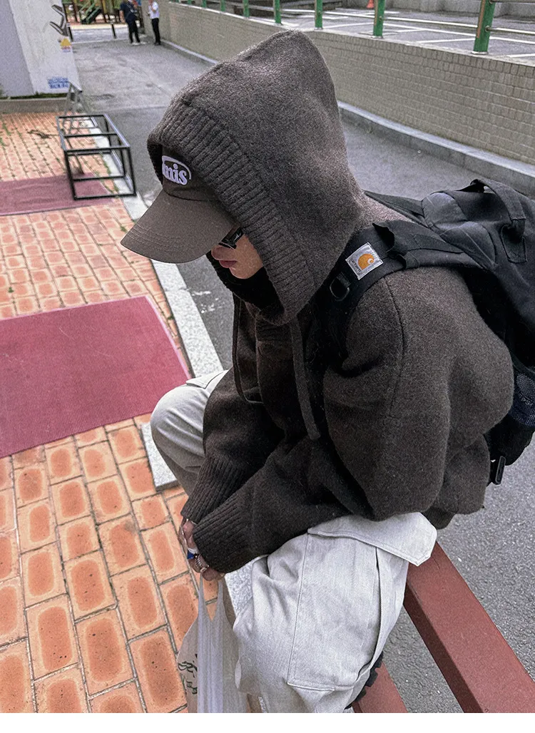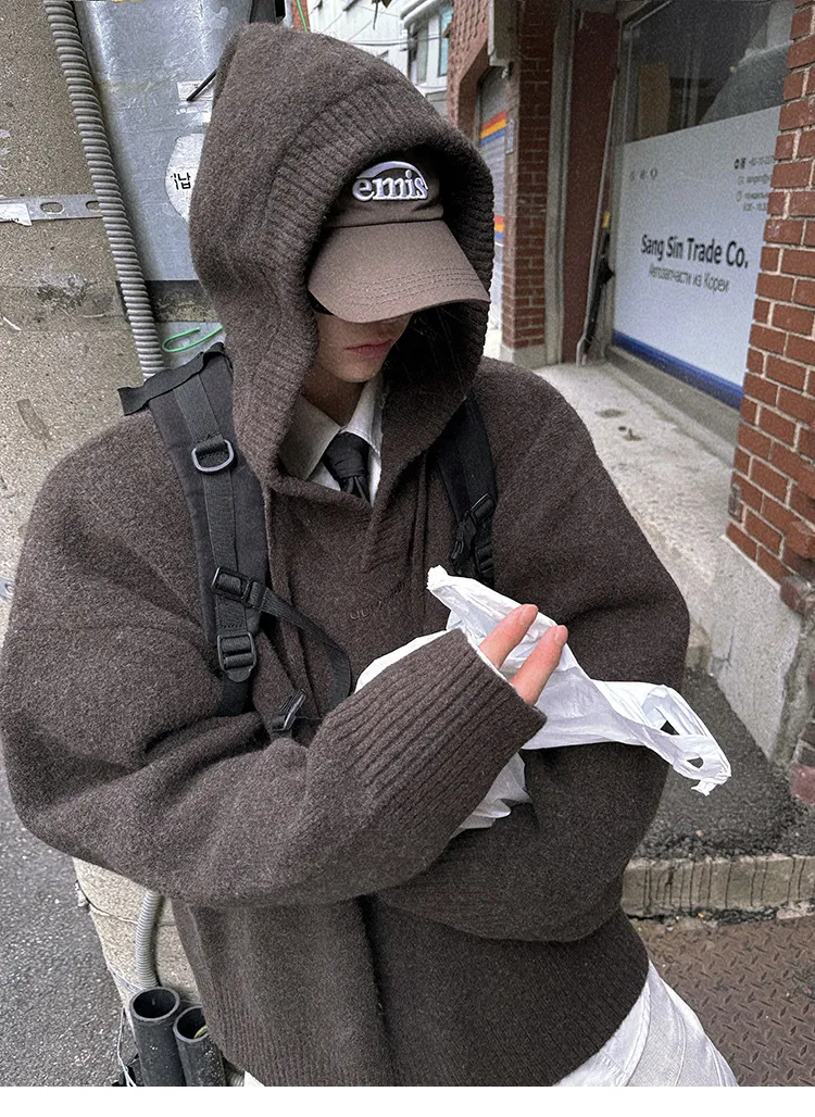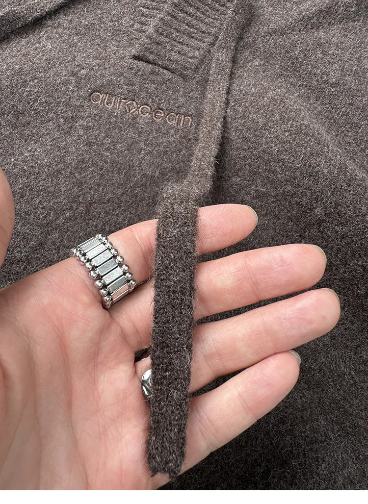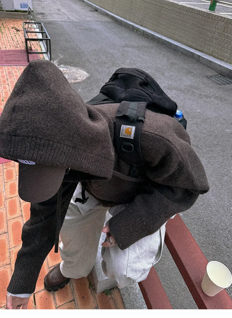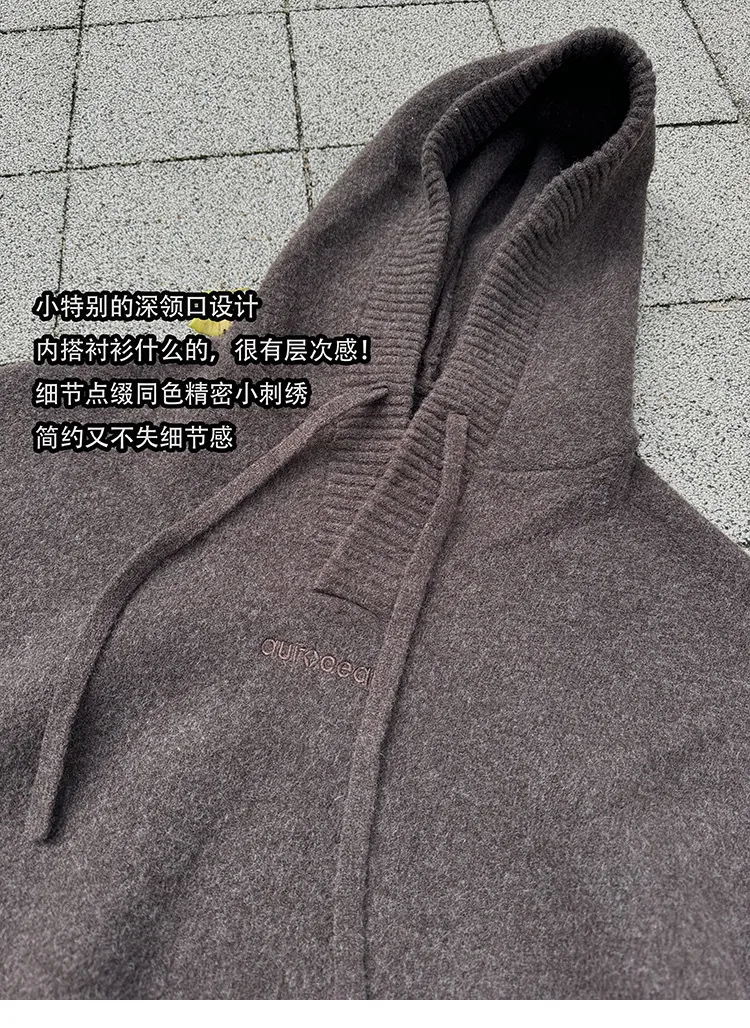 AUROCEAN 毛茸茸 碳灰 連帽 羊毛帽踢(深咖色)