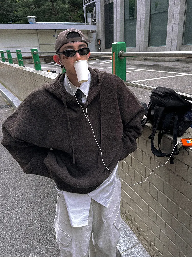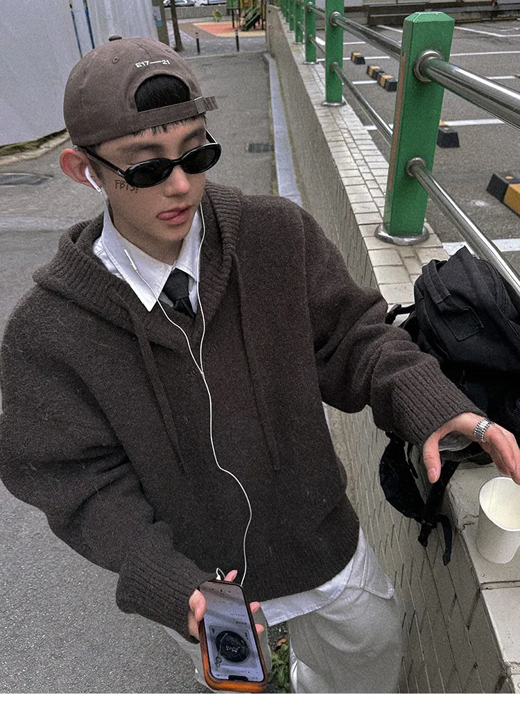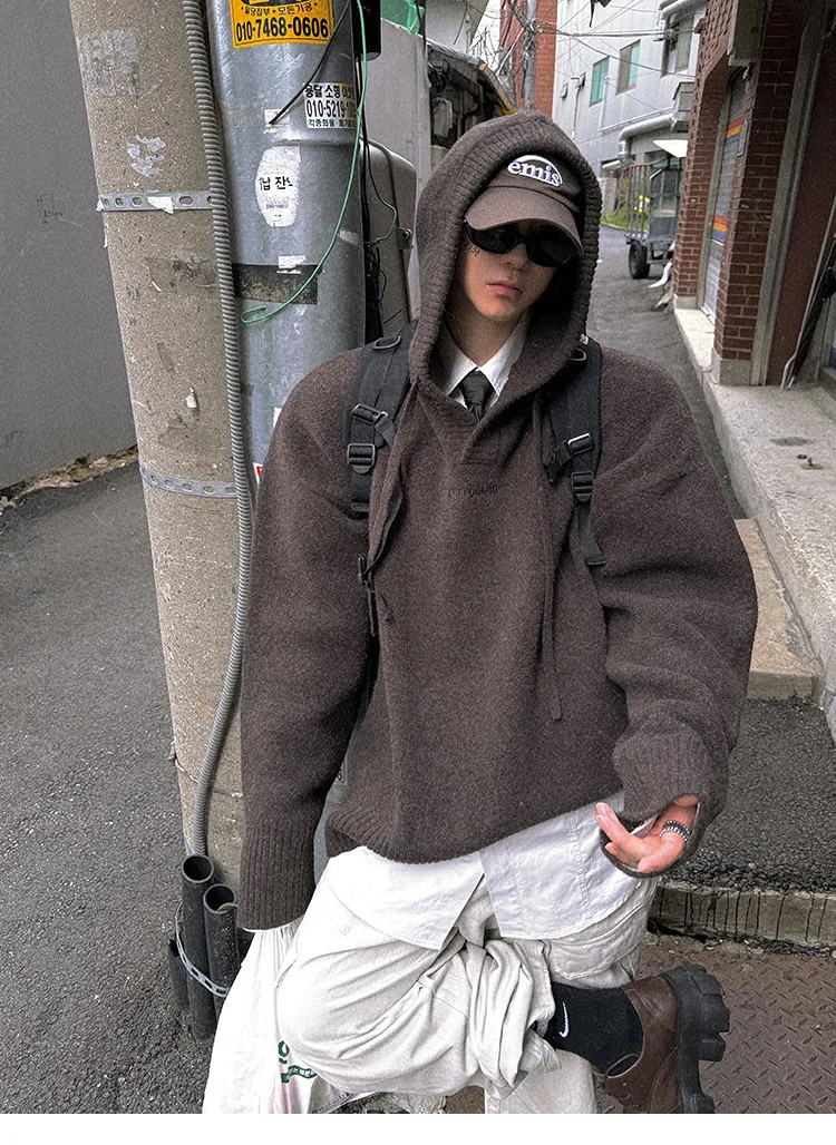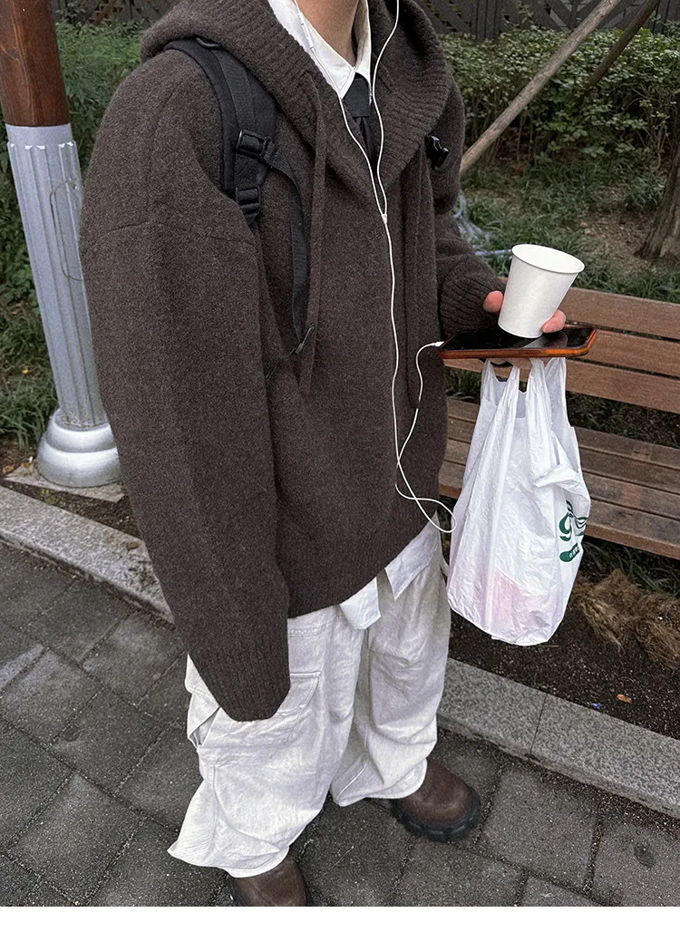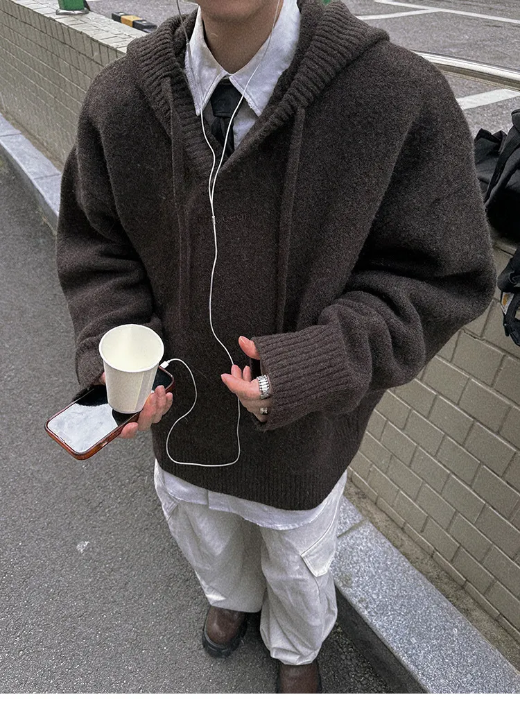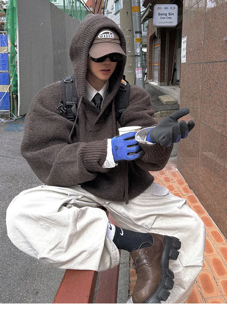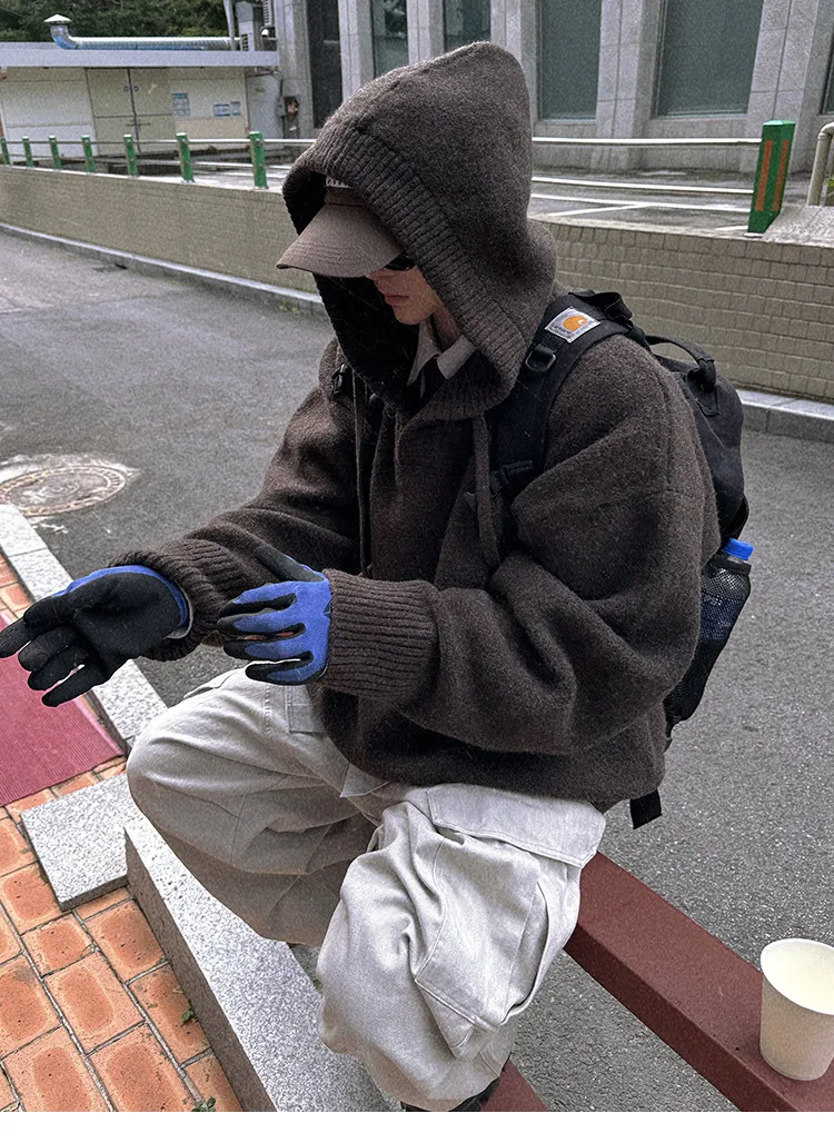 AUROCEAN 毛茸茸 碳灰 連帽 羊毛帽踢(深咖色)