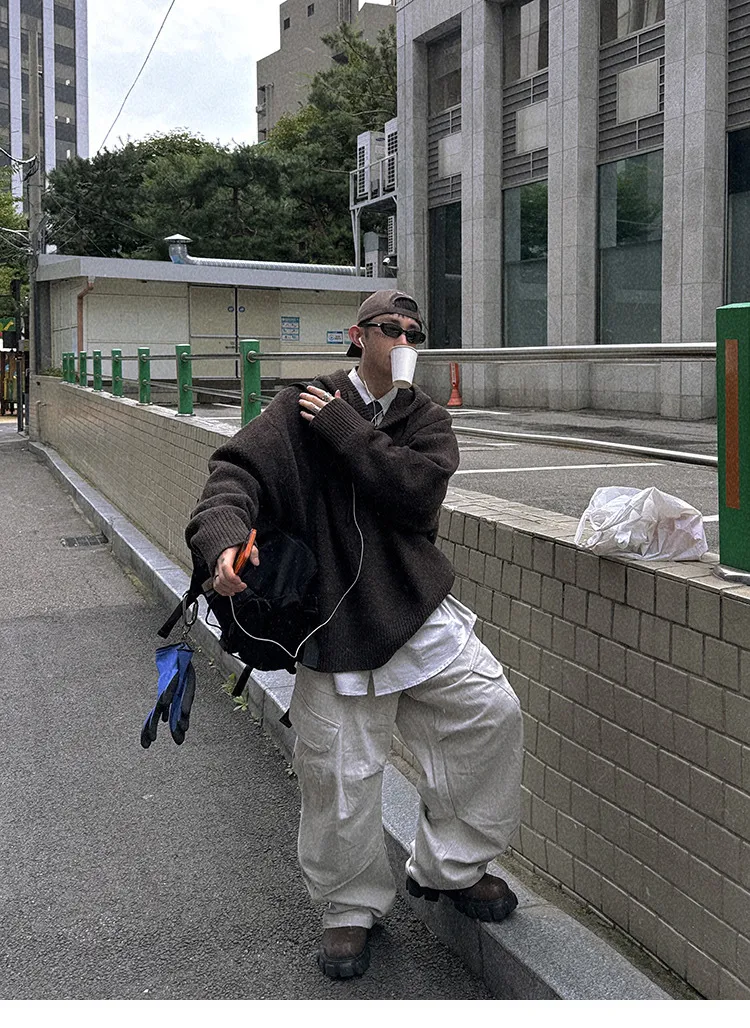 AUROCEAN 加厚 水洗純棉 學院風 廓形 襯衫(灰白色)