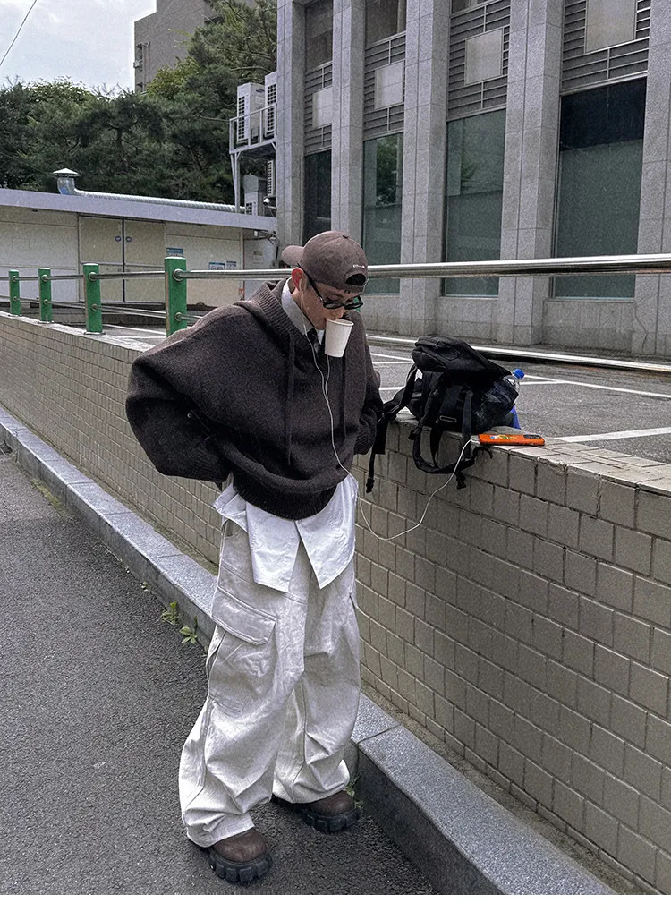 AUROCEAN 灰白 寬短連帽 重磅 純棉解構 外套(灰白色)