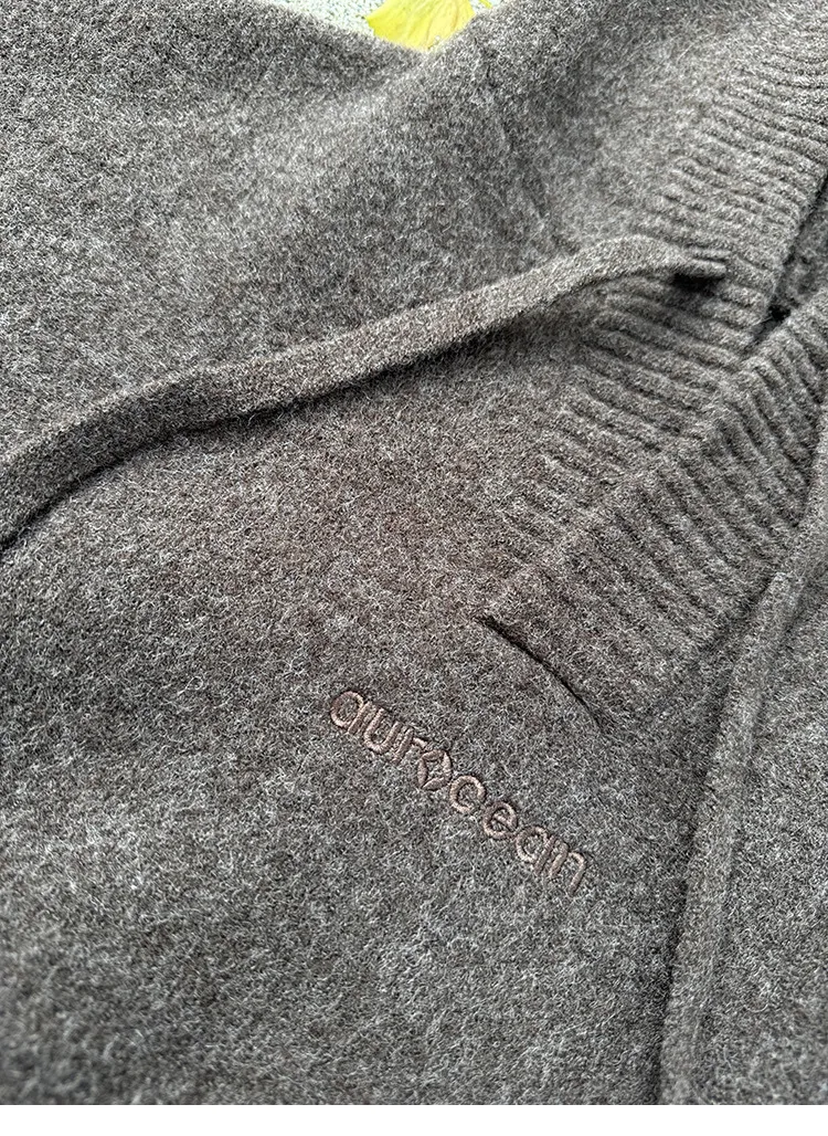 AUROCEAN 毛茸茸 碳灰 連帽 羊毛帽踢(花灰色)