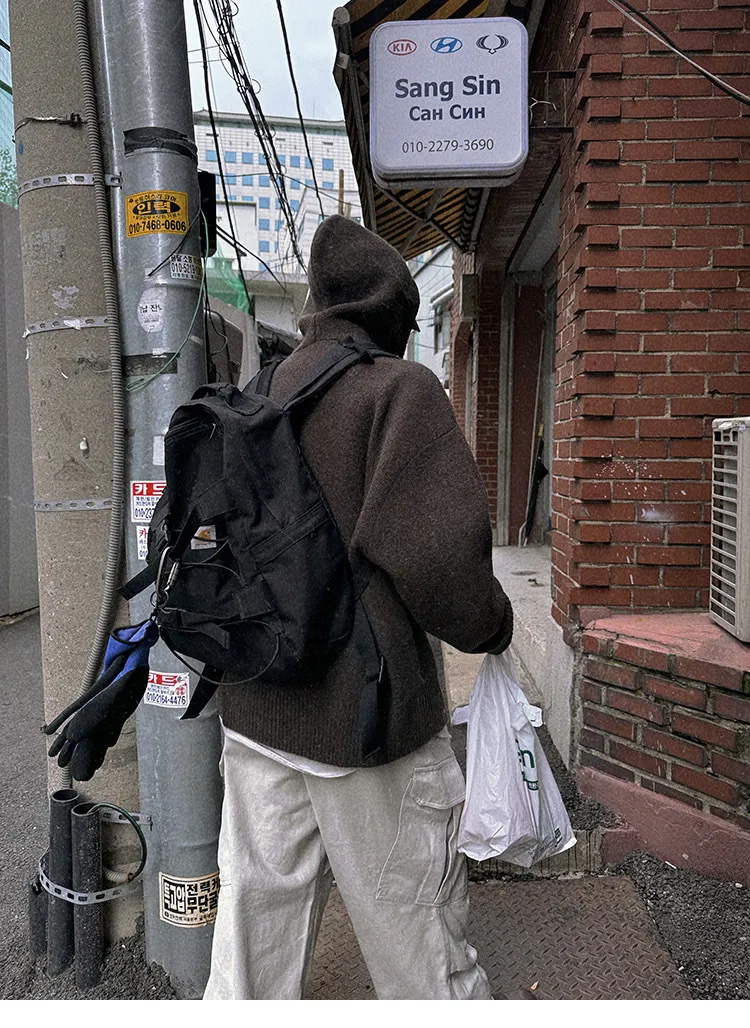 AUROCEAN 尼龍 寬短連帽 復古深咖 廓形 外套(深咖色)