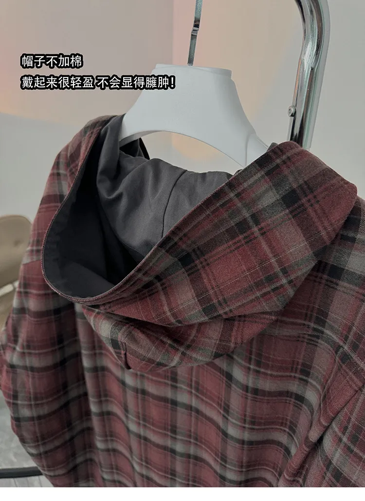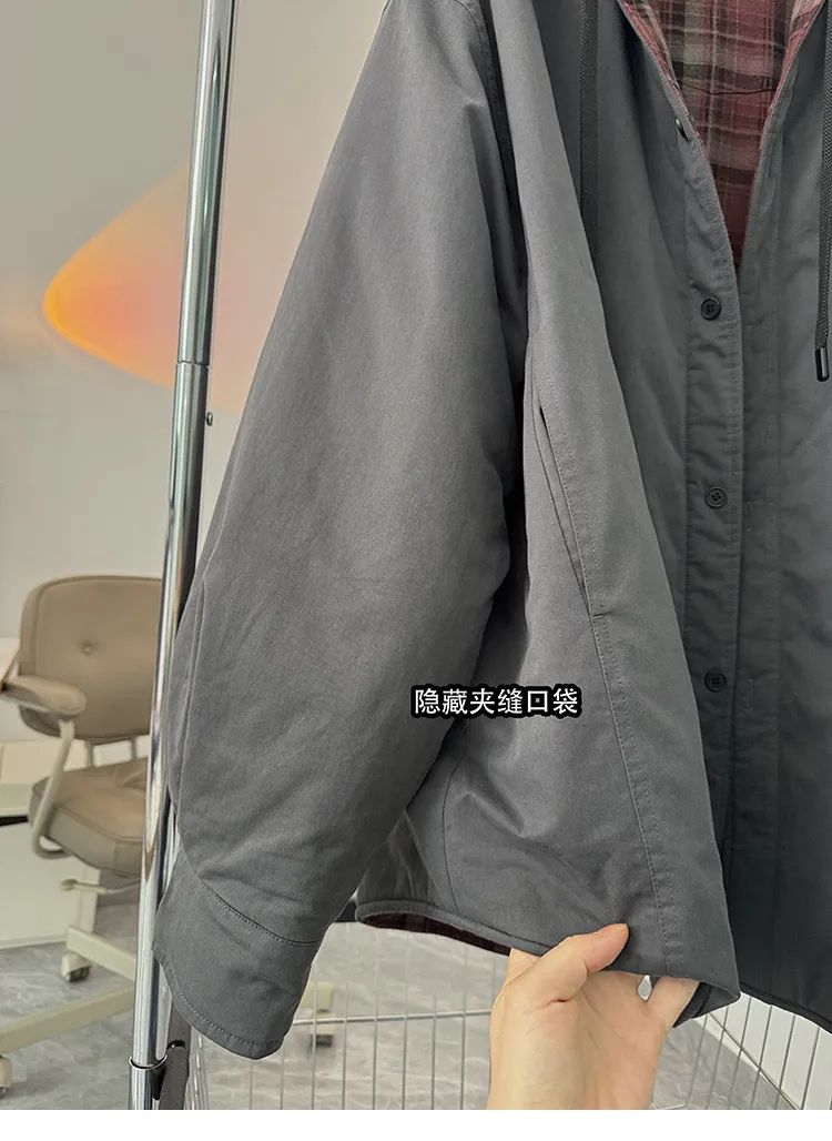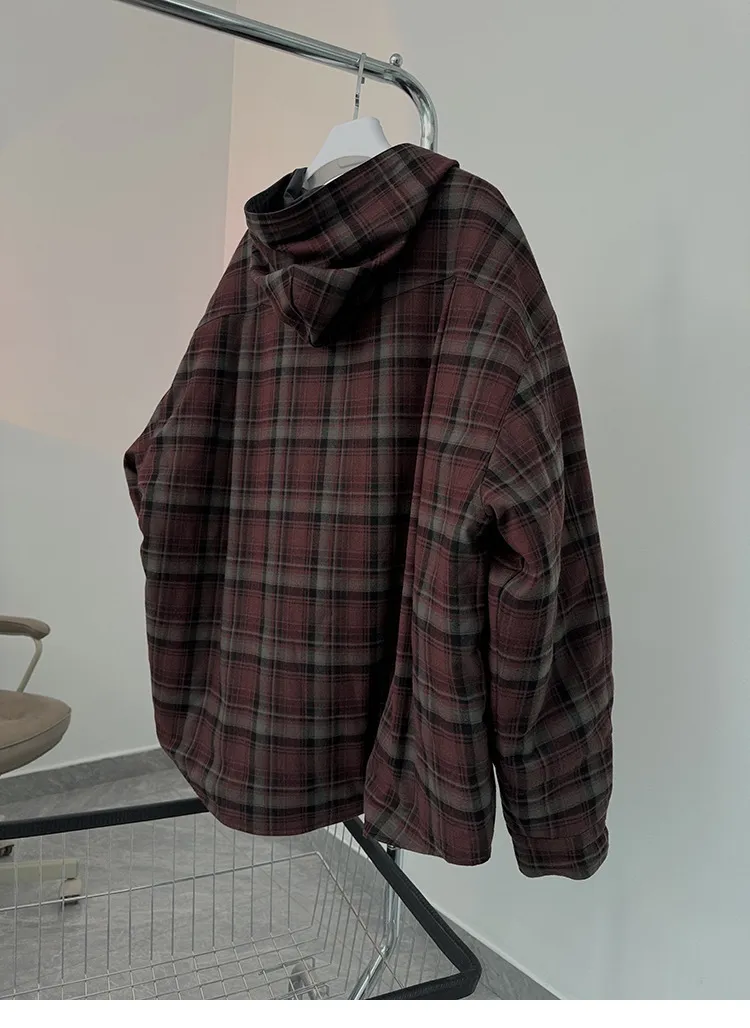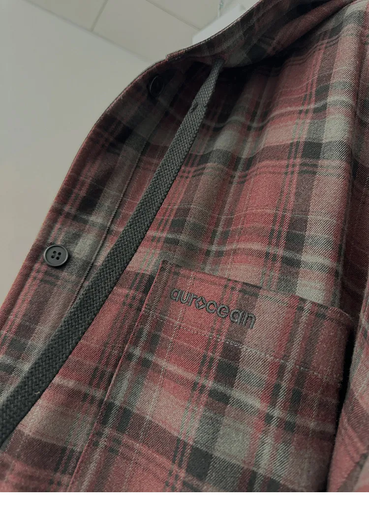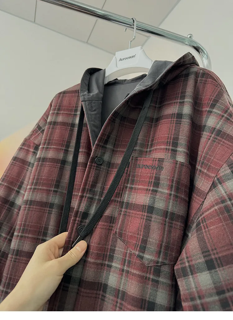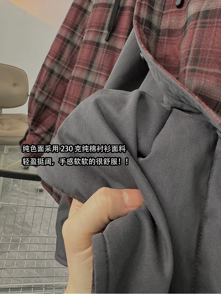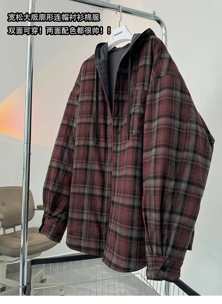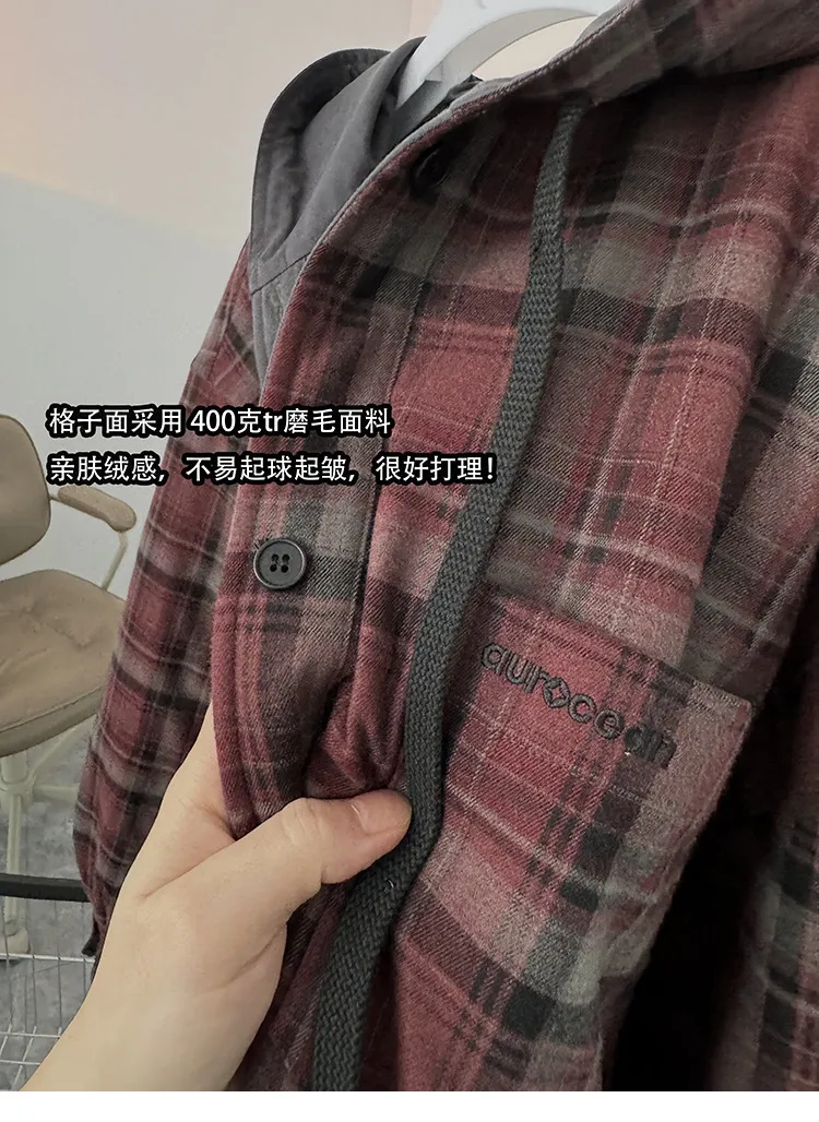 AUROCEAN 雙面穿 連帽 格紋 加厚 外套(紅灰)