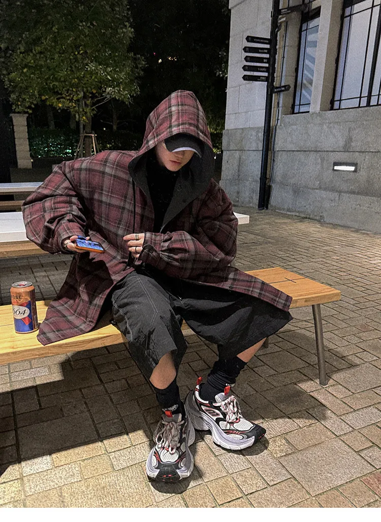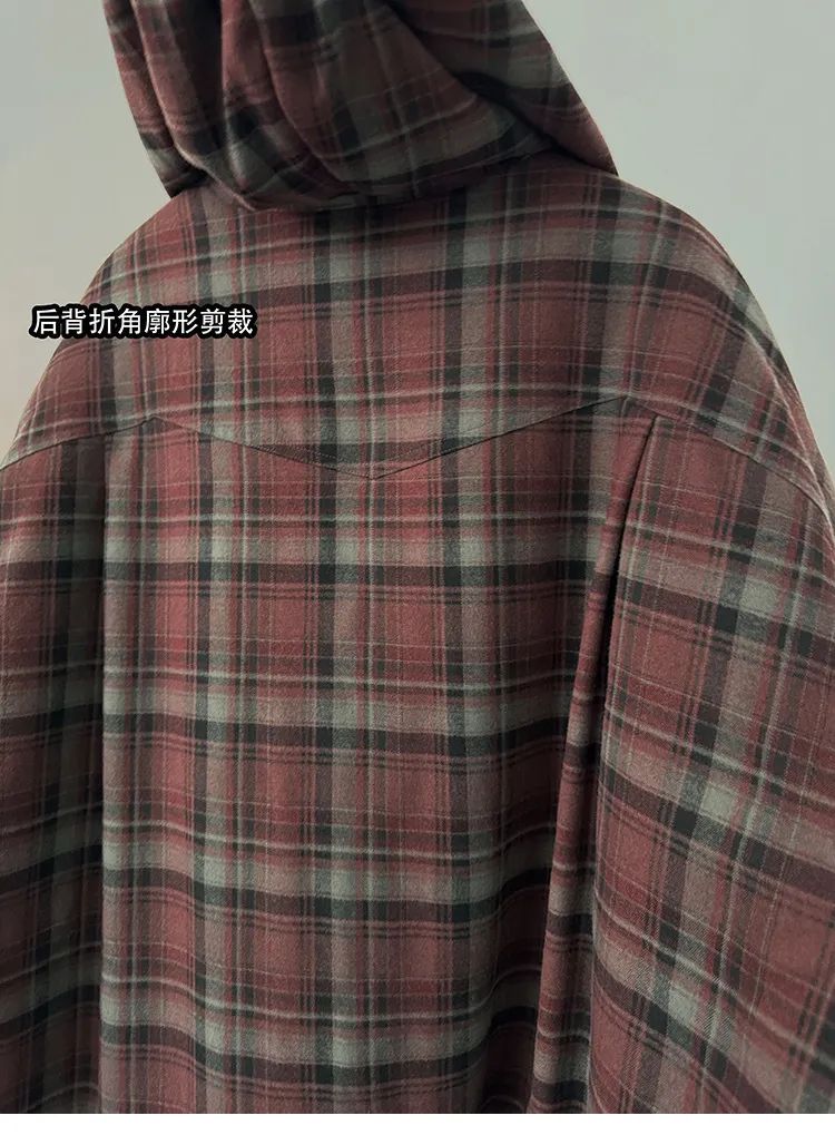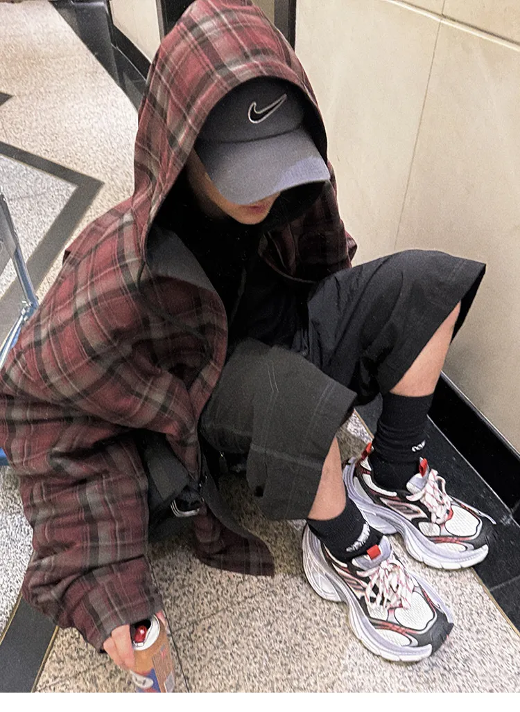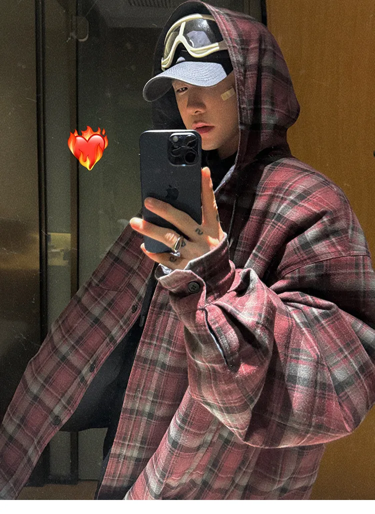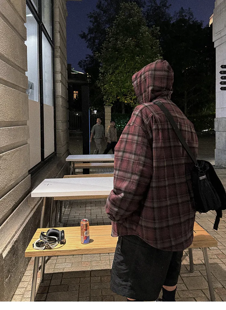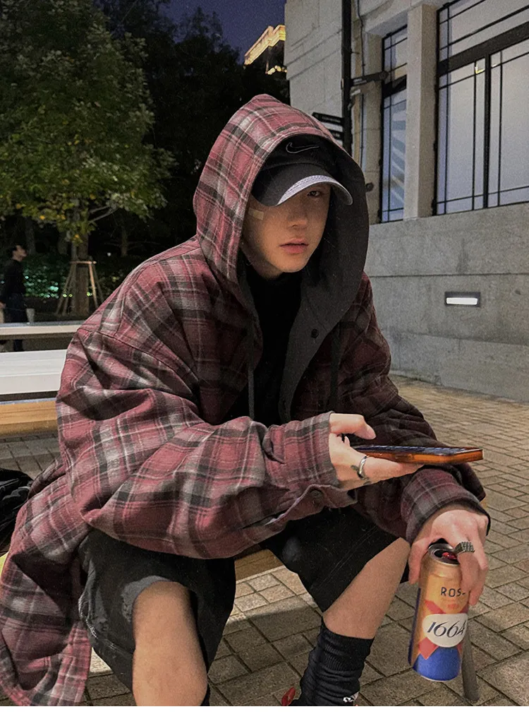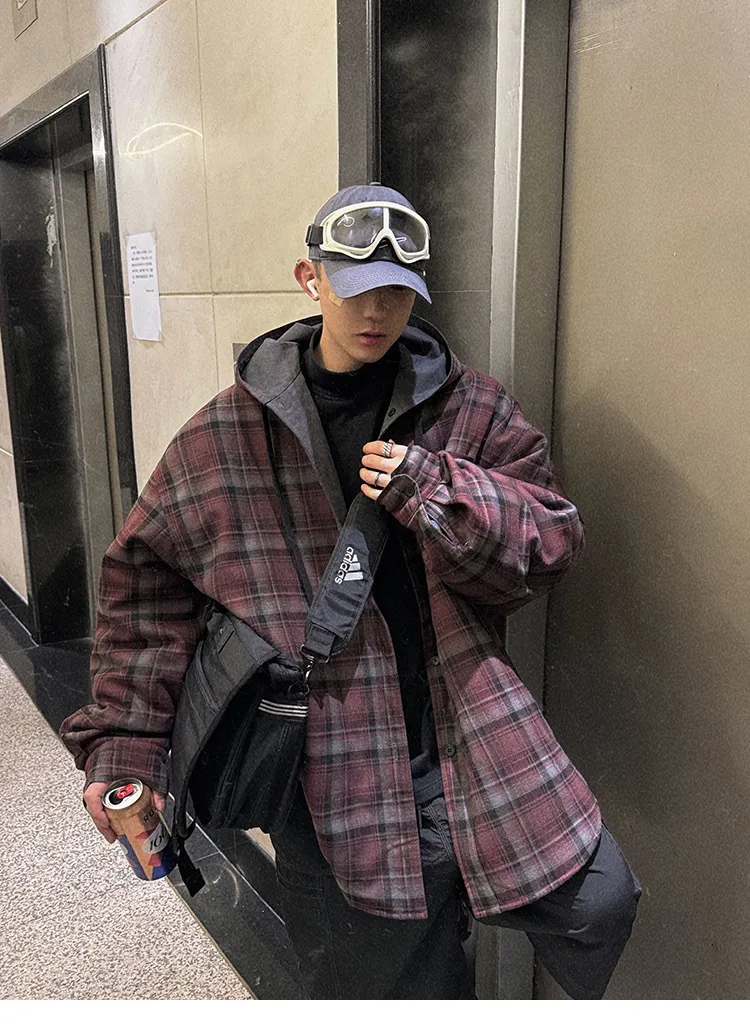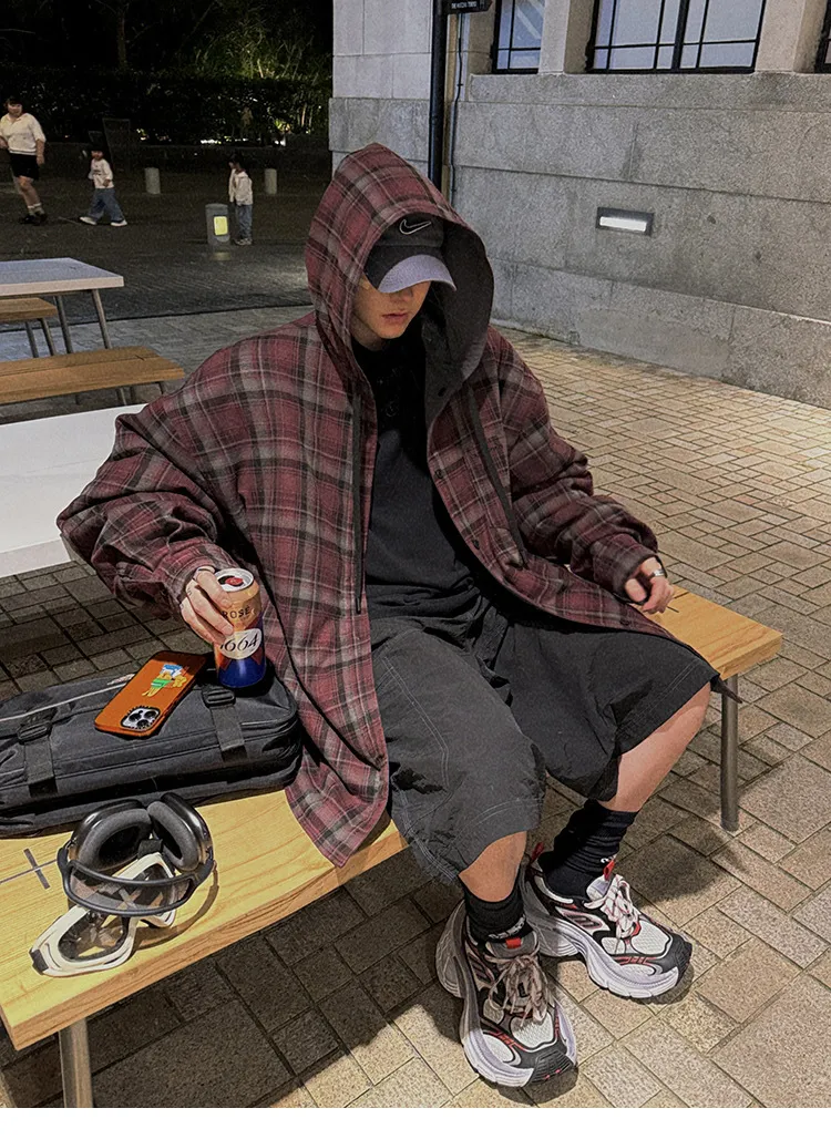 AUROCEAN 雙面穿 連帽 格紋 加厚 外套(紅灰)