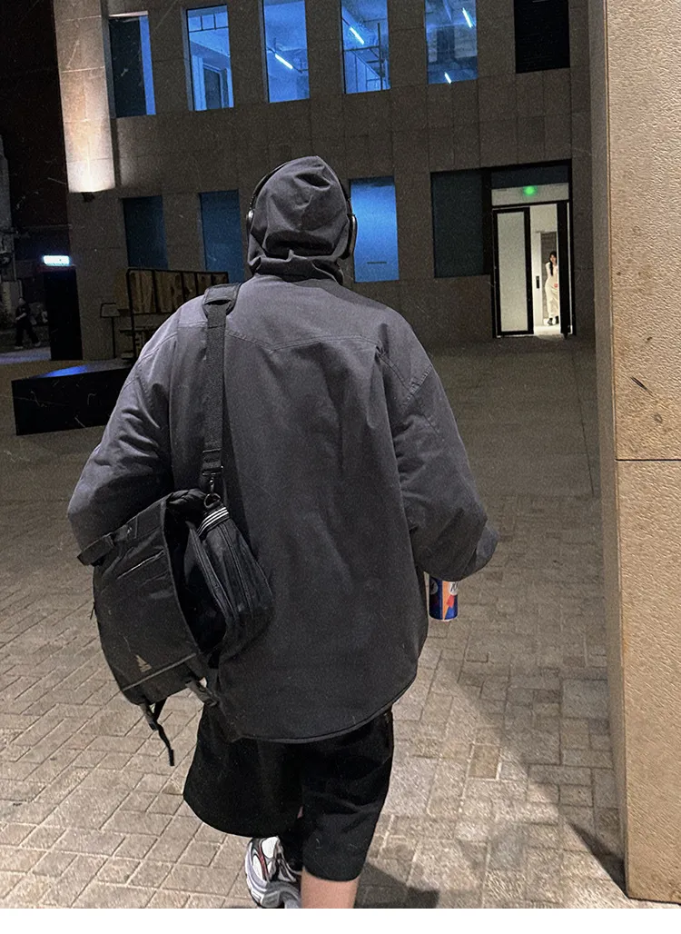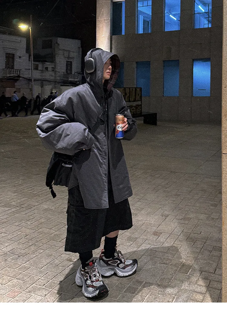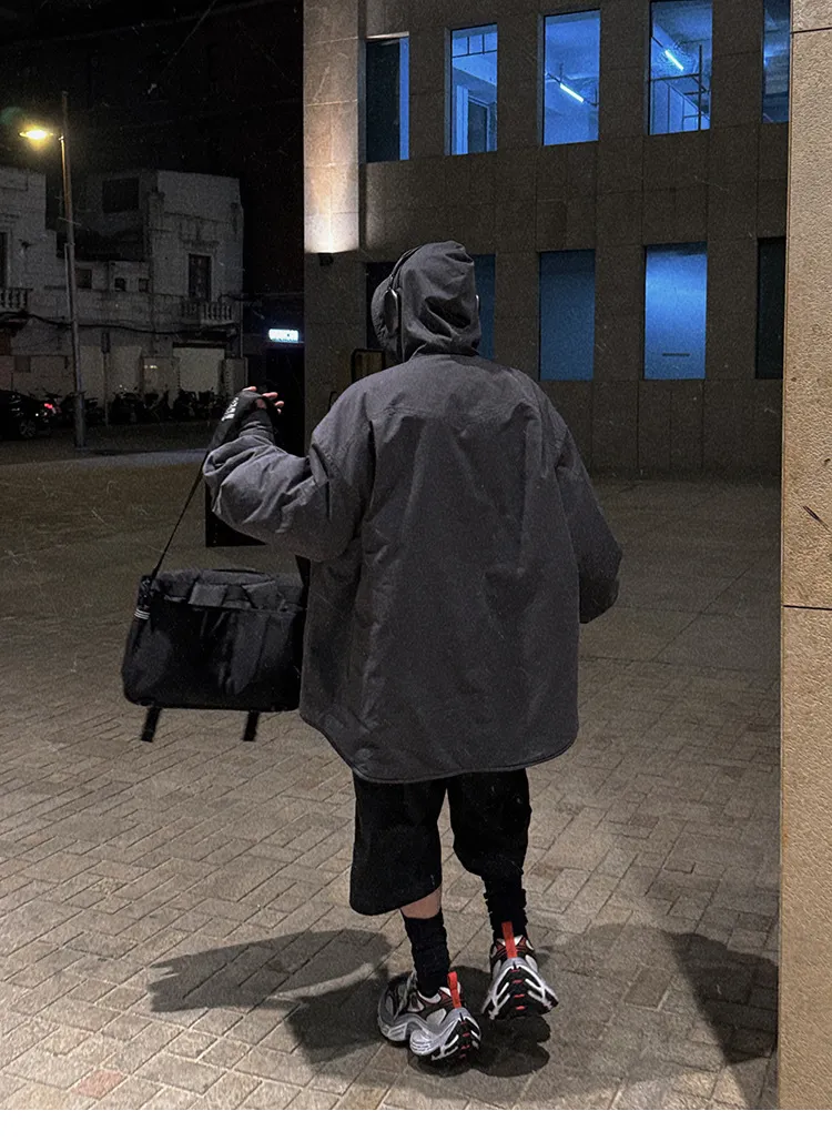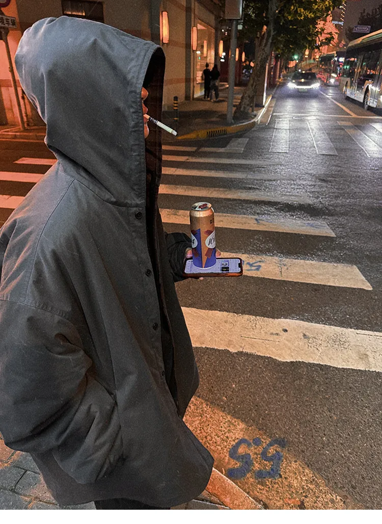 AUROCEAN 寬短 連帽 重磅 外套(灰白)