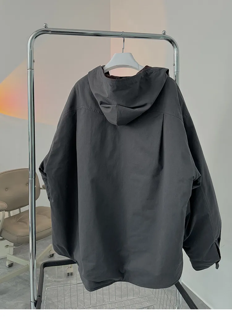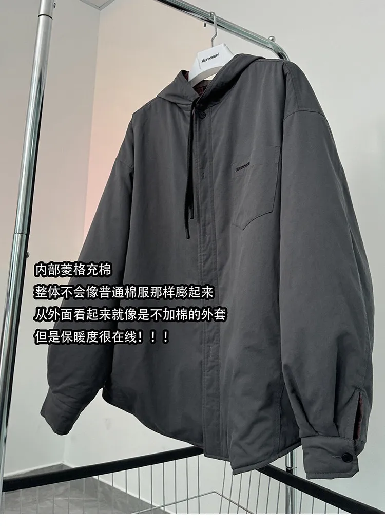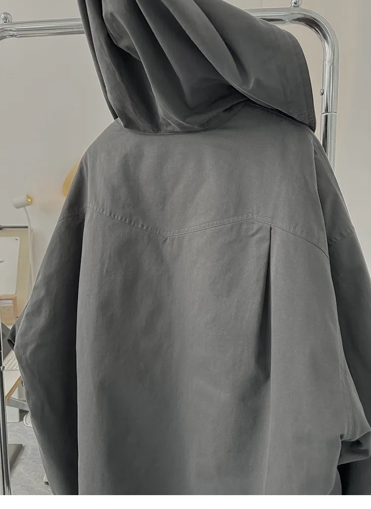 AUROCEAN 加厚 水洗純棉 學院風 廓形 襯衫(碳灰色)