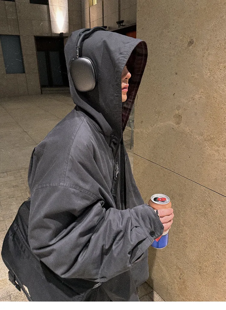 AUROCEAN 雙面穿 連帽 格紋 加厚 外套(藏青)