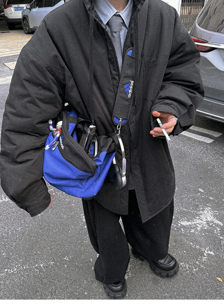 AUROCEAN 復古學院 徽章刺繡 寬短 大學踢(藏青)