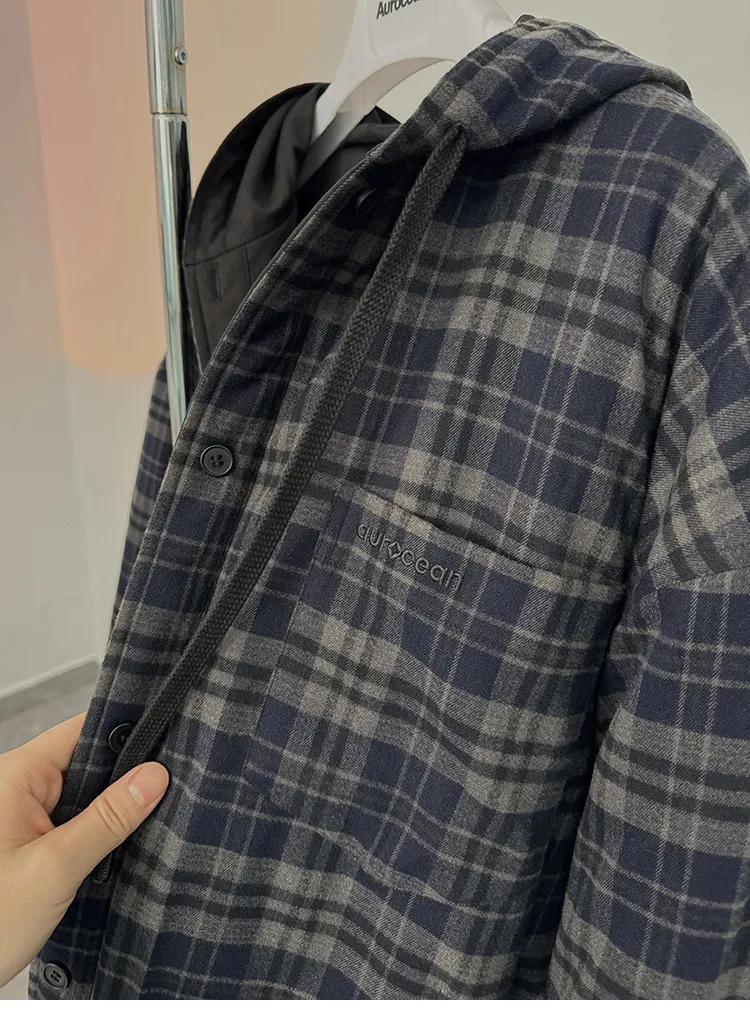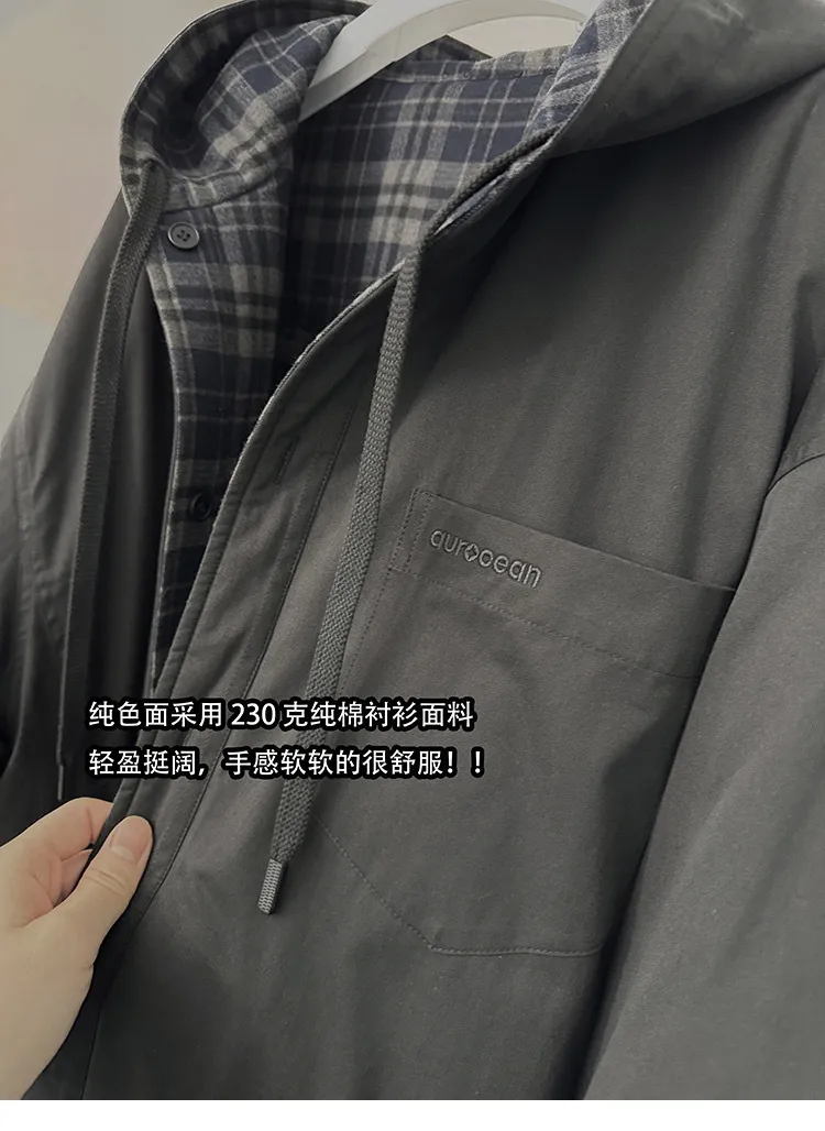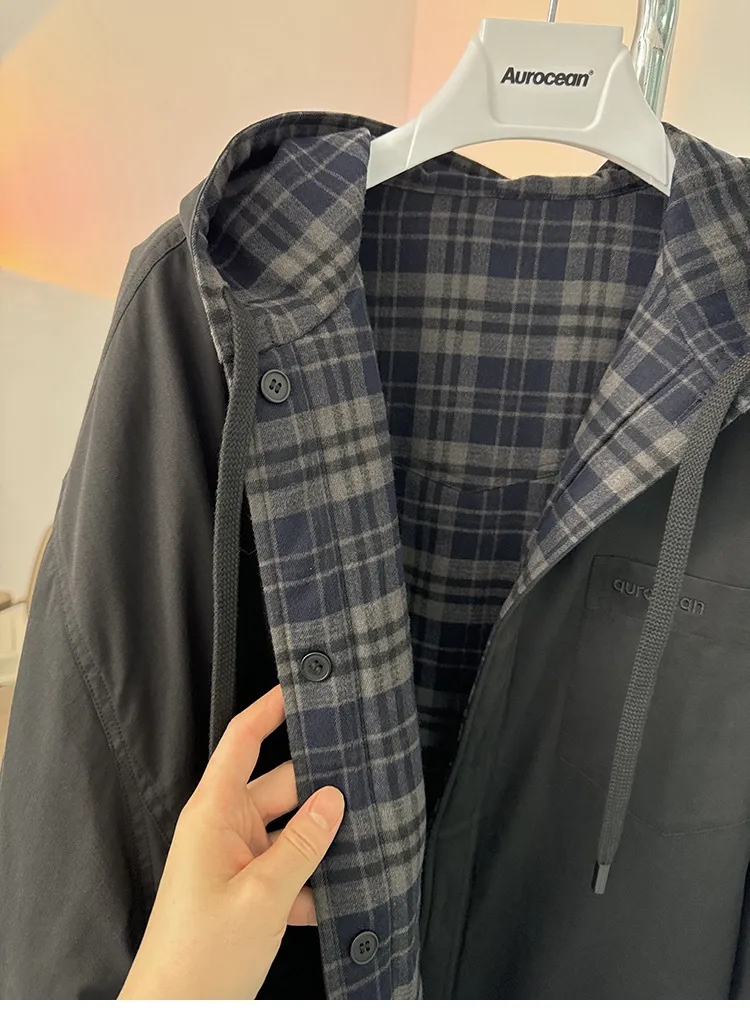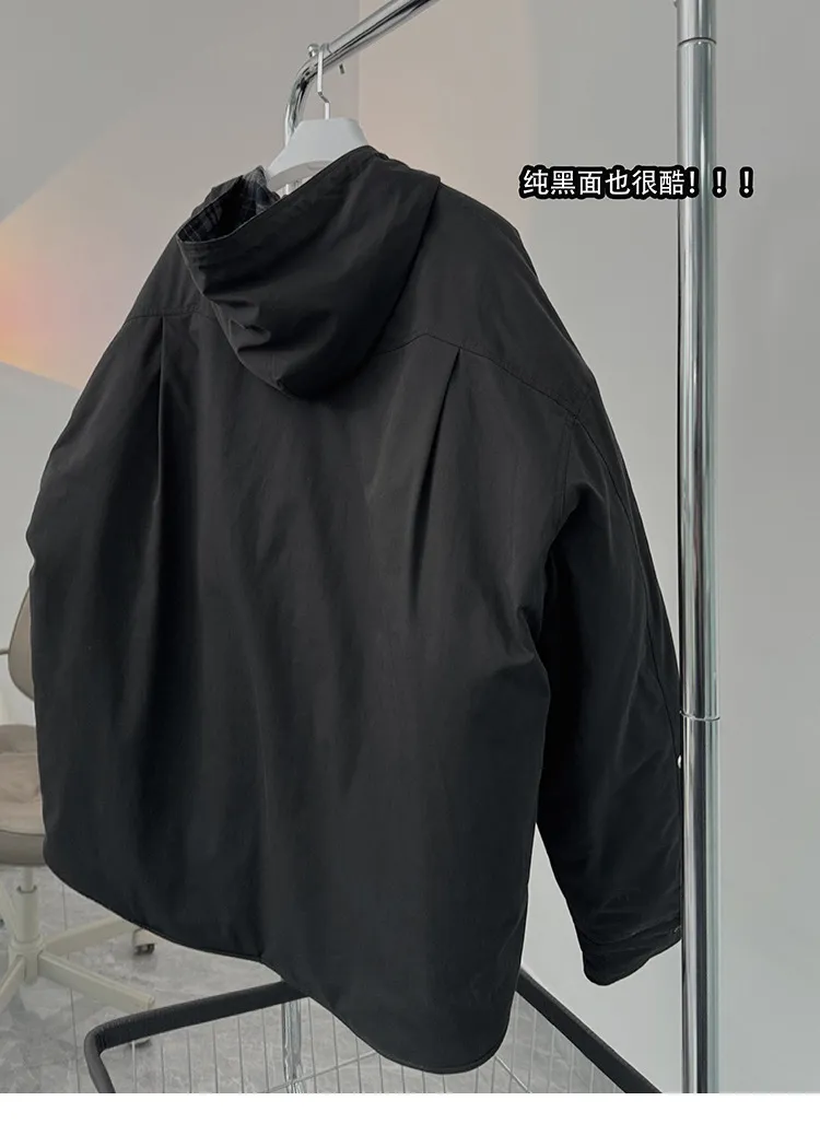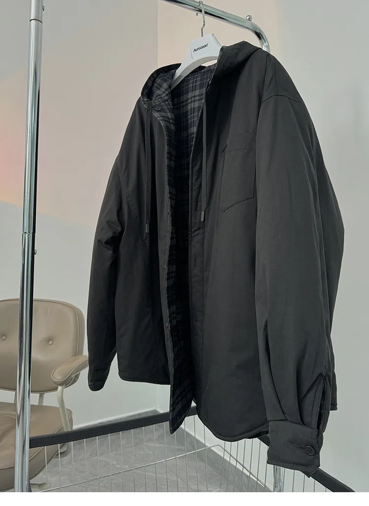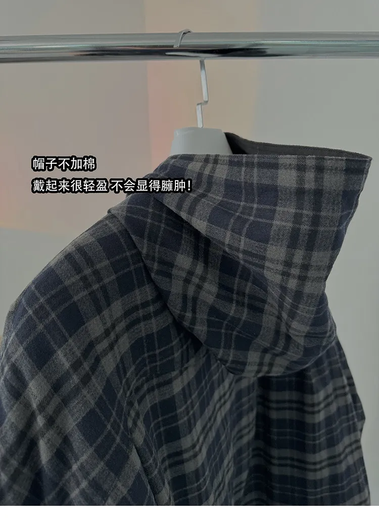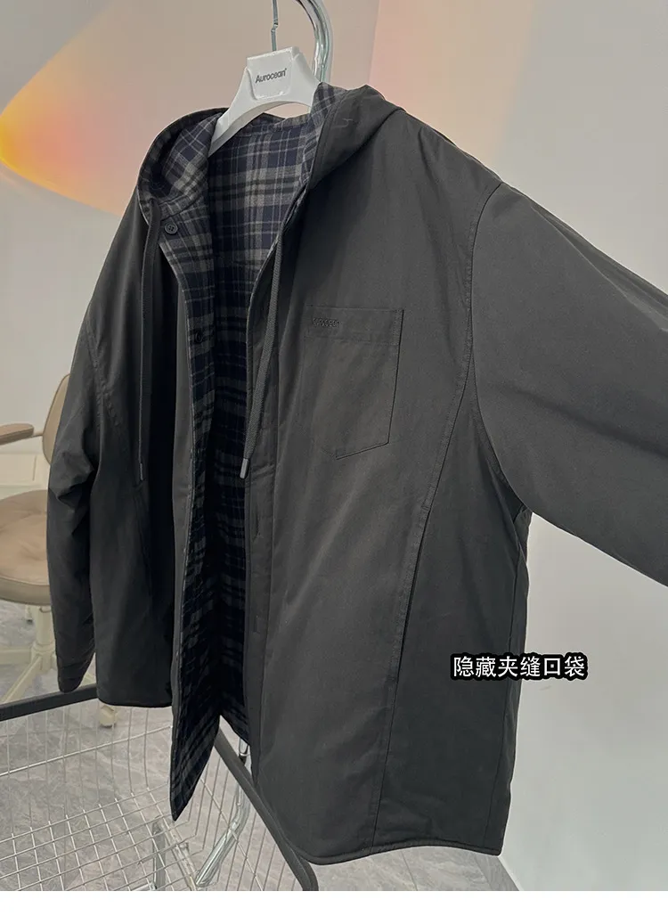 AUROCEAN 雙面穿 連帽 格紋 加厚 外套(藏青)