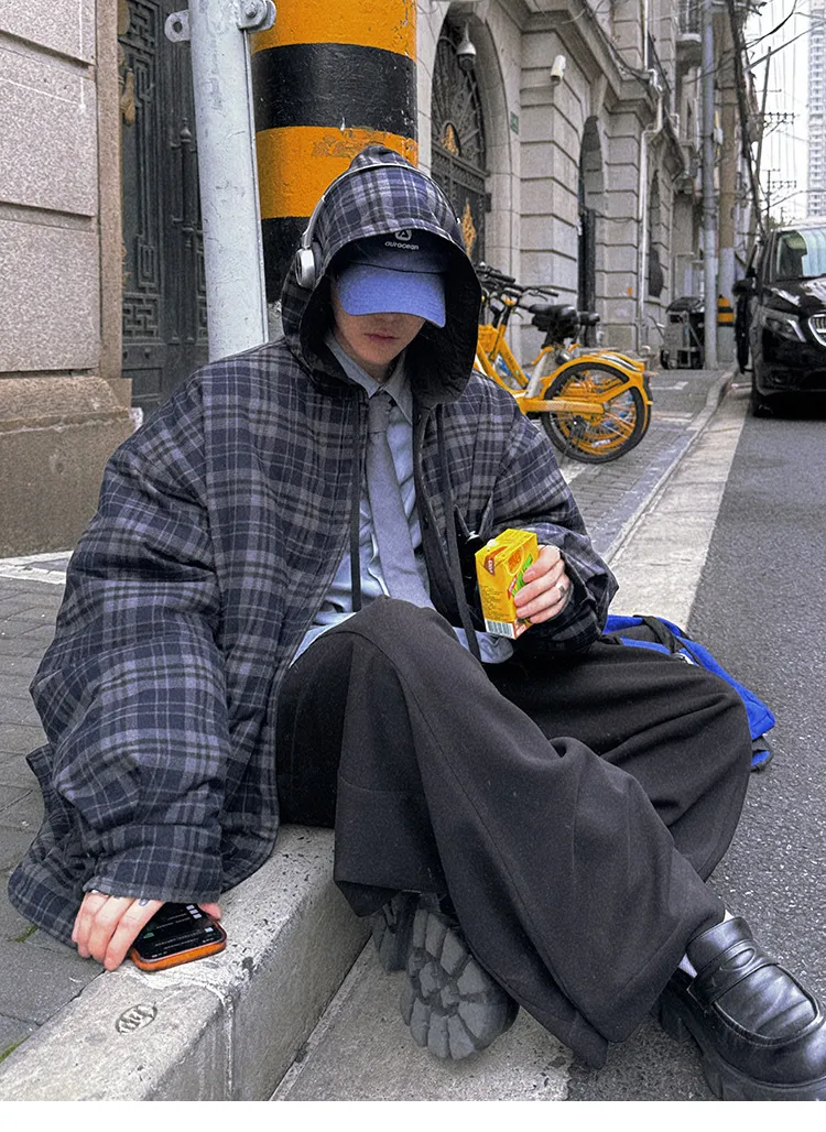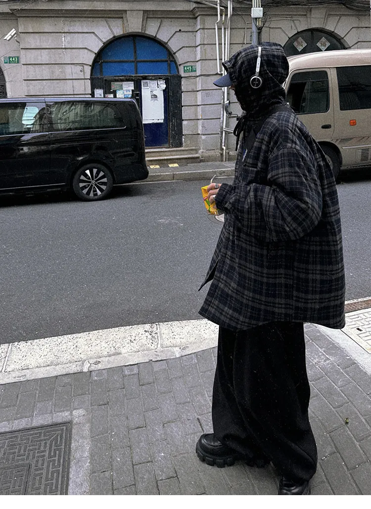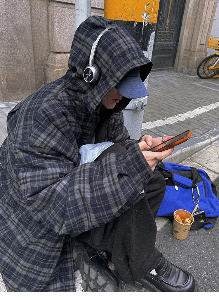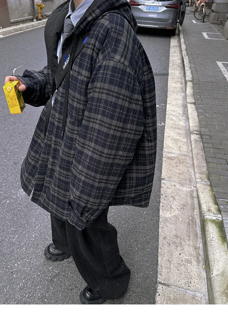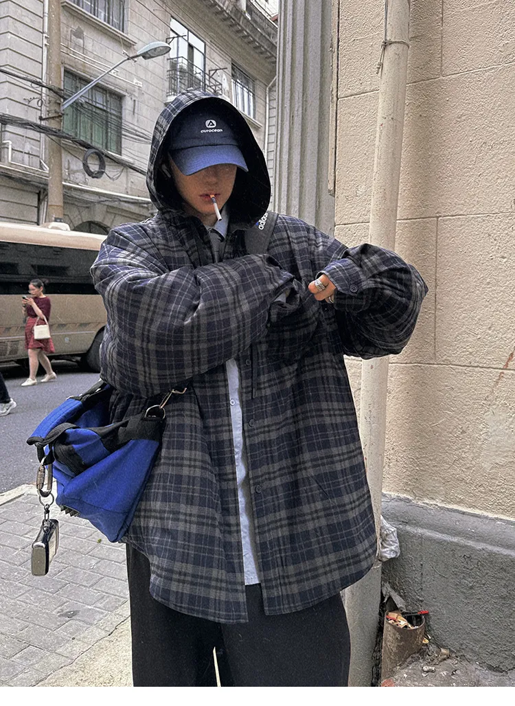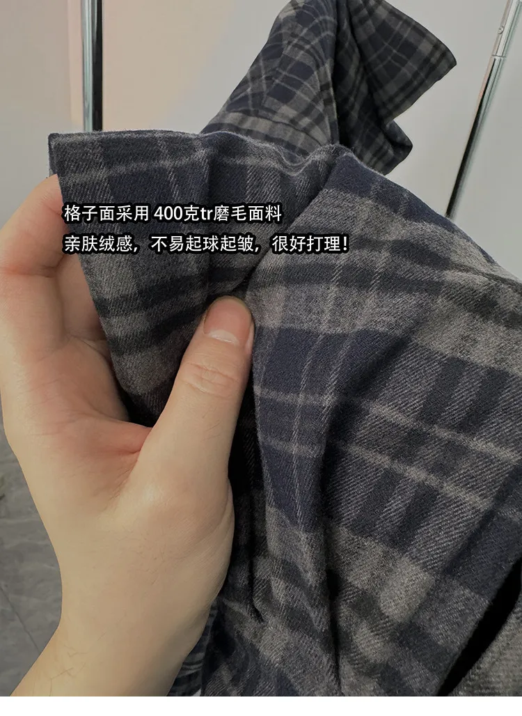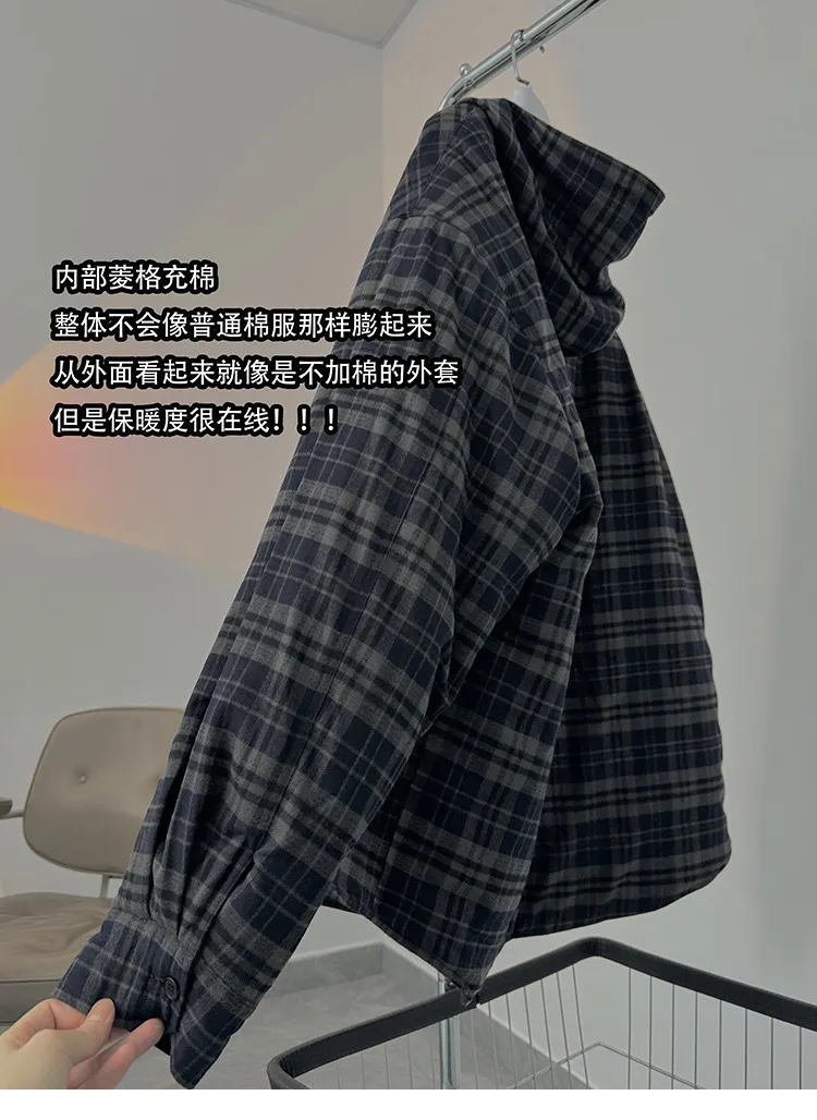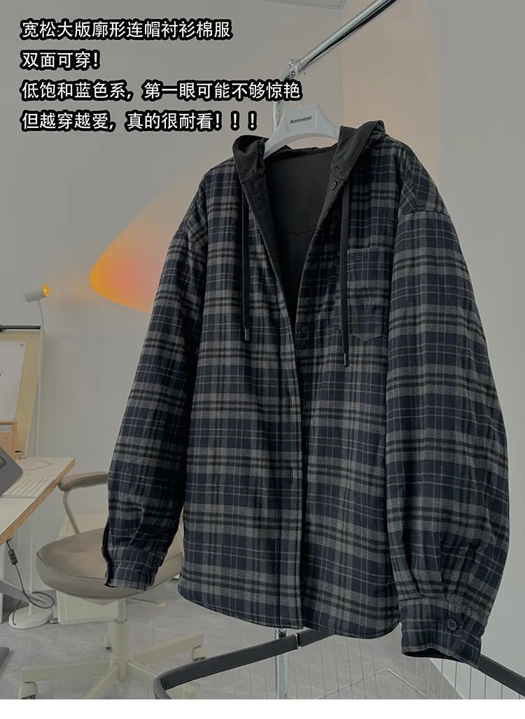 AUROCEAN 雙面穿 連帽 格紋 加厚 外套(藏青)