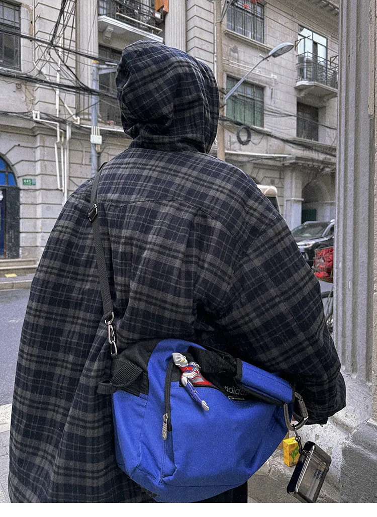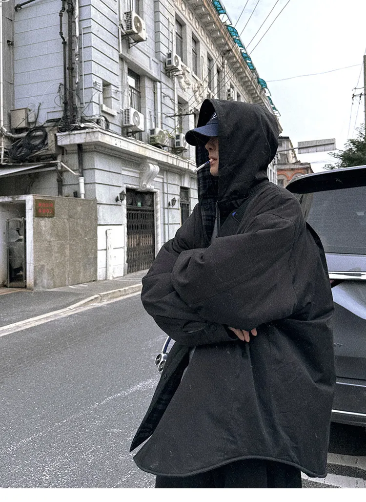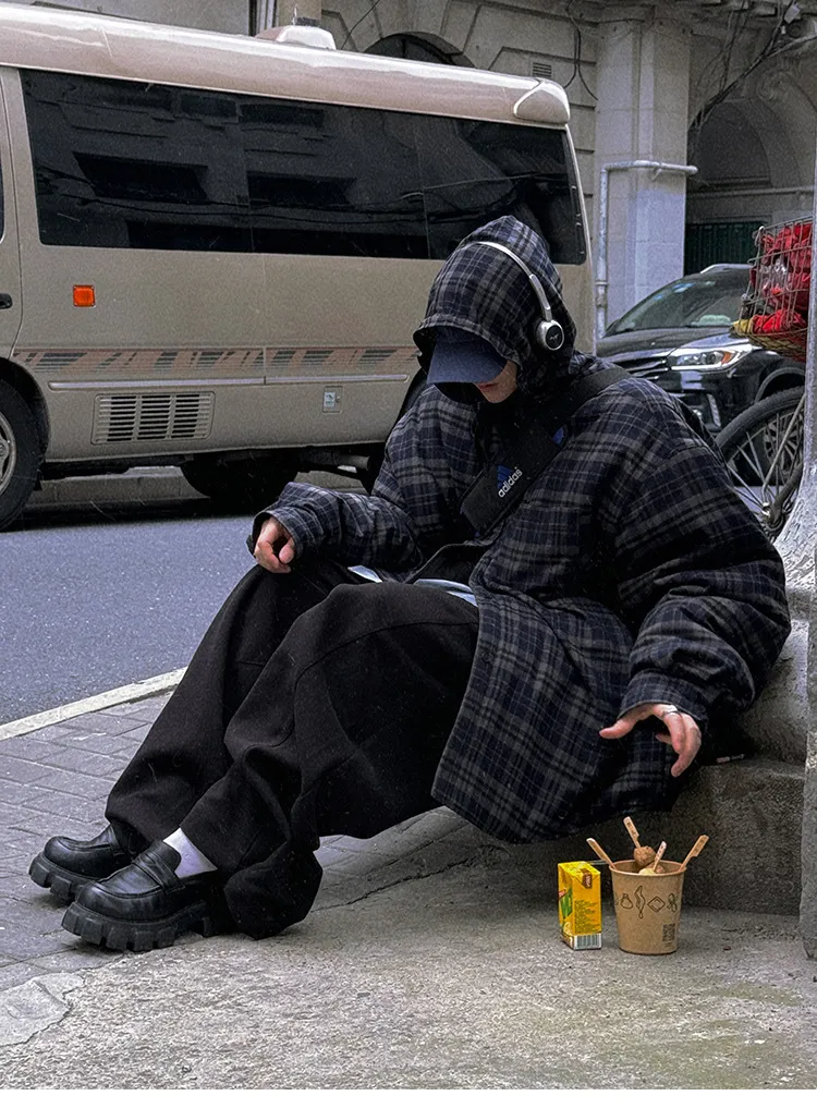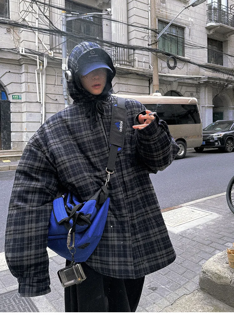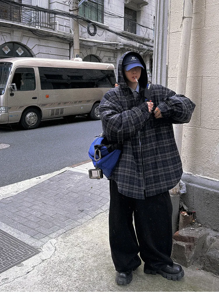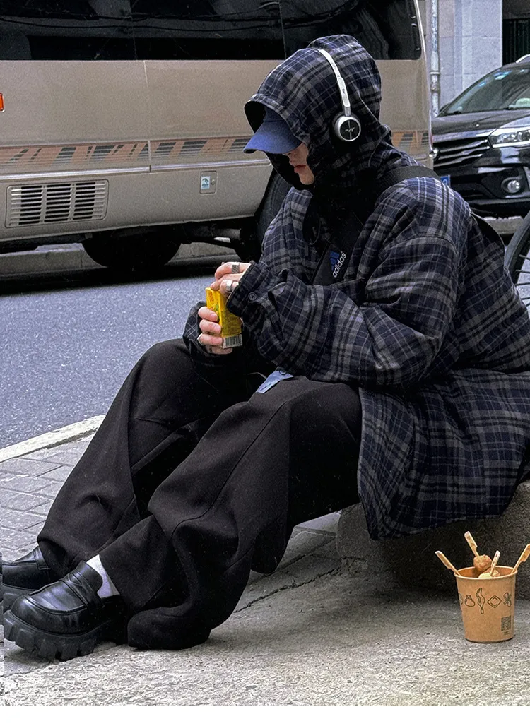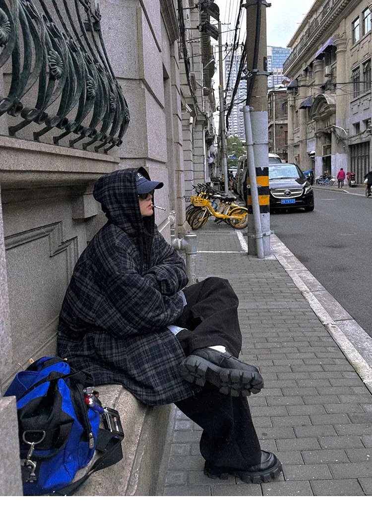 AUROCEAN 雙面穿 連帽 格紋 加厚 外套(藏青)