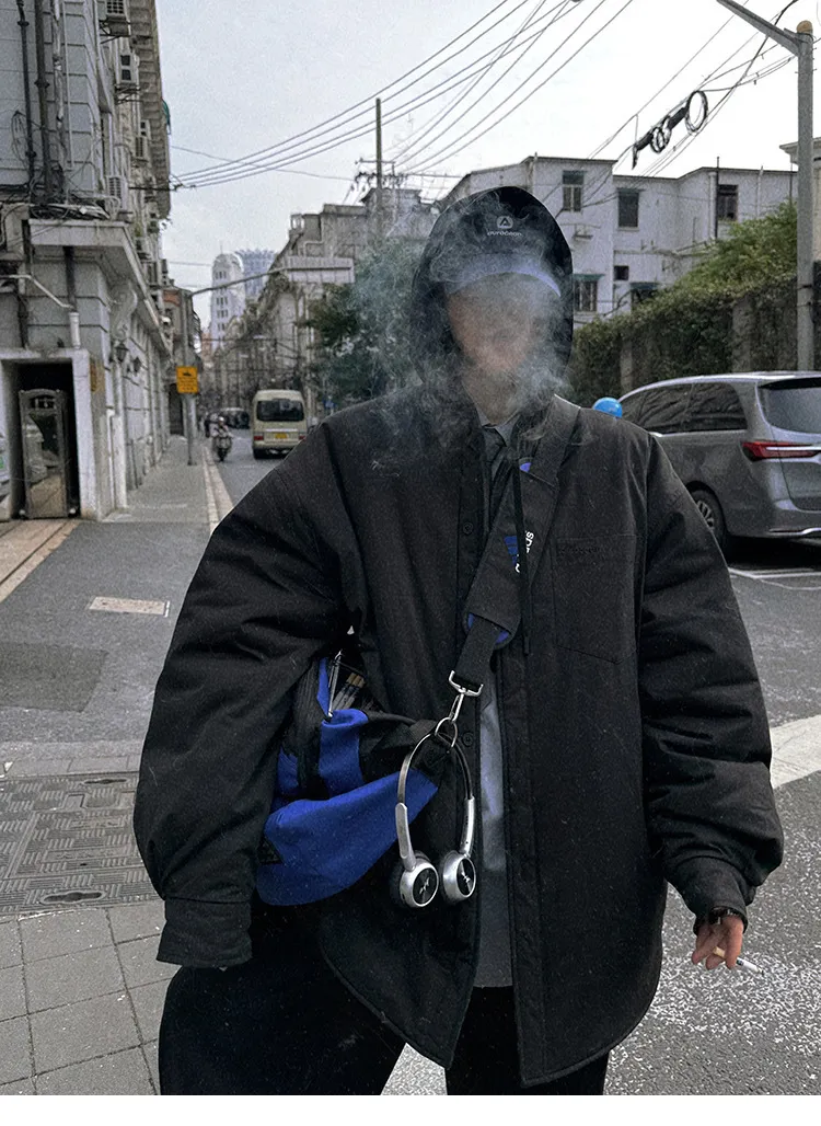AUROCEAN 加厚 水洗純棉 學院風 廓形 襯衫(碳灰色)
