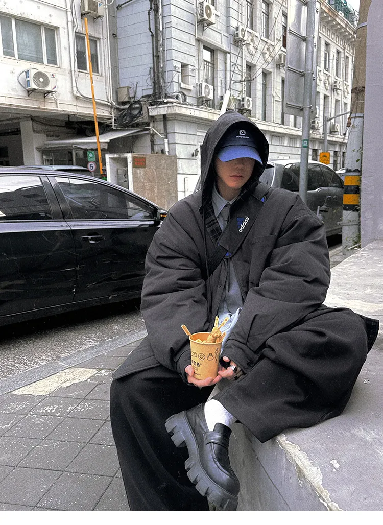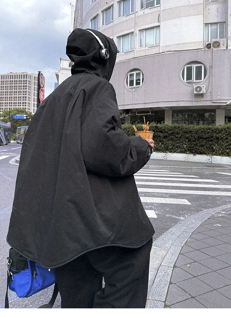 AUROCEAN 寬短 連帽 重磅 外套(灰白)
