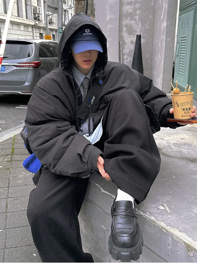 AUROCEAN 加厚磨毛 學院 收褶堆疊 西裝褲 (黑色)