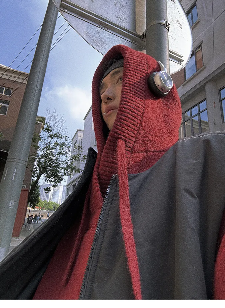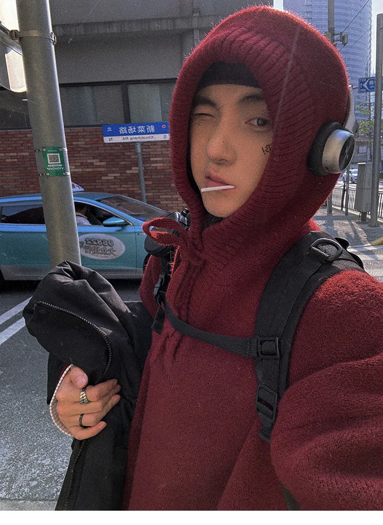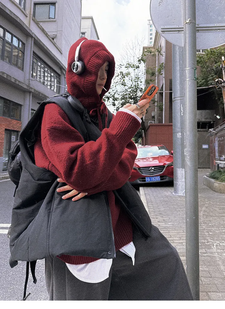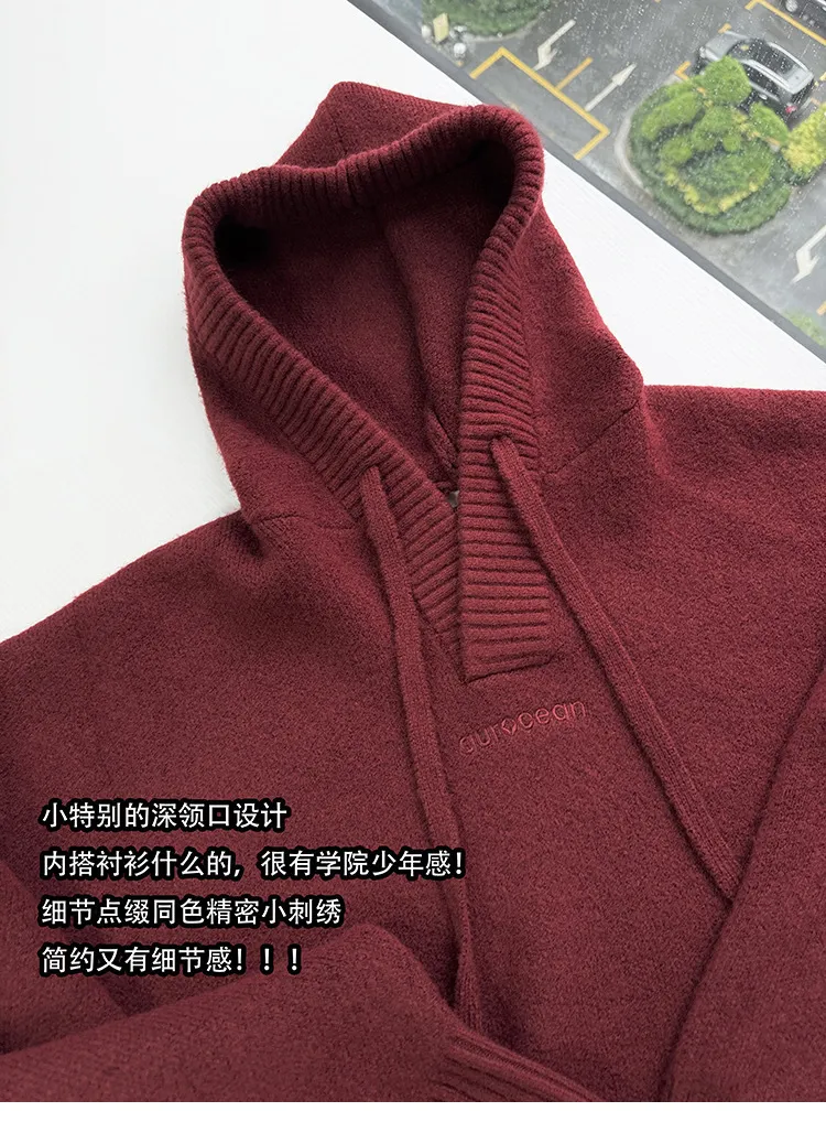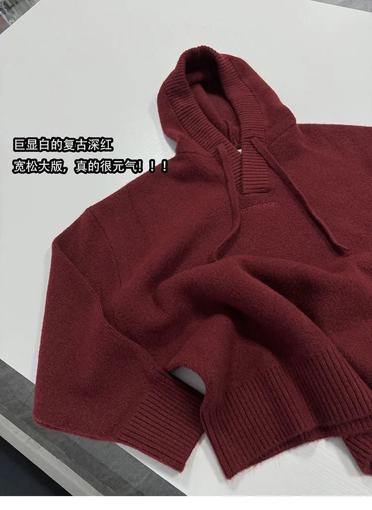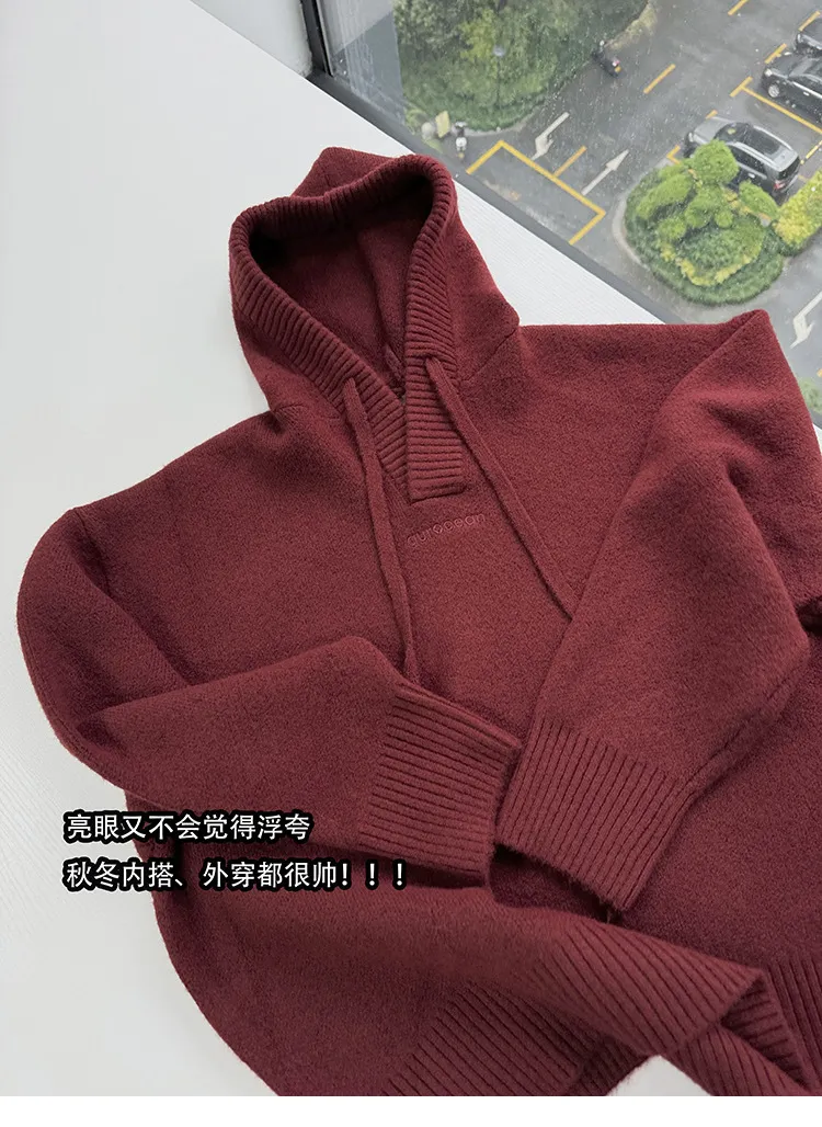 AUROCEAN 毛茸茸 連帽 羊毛帽踢(紅色)