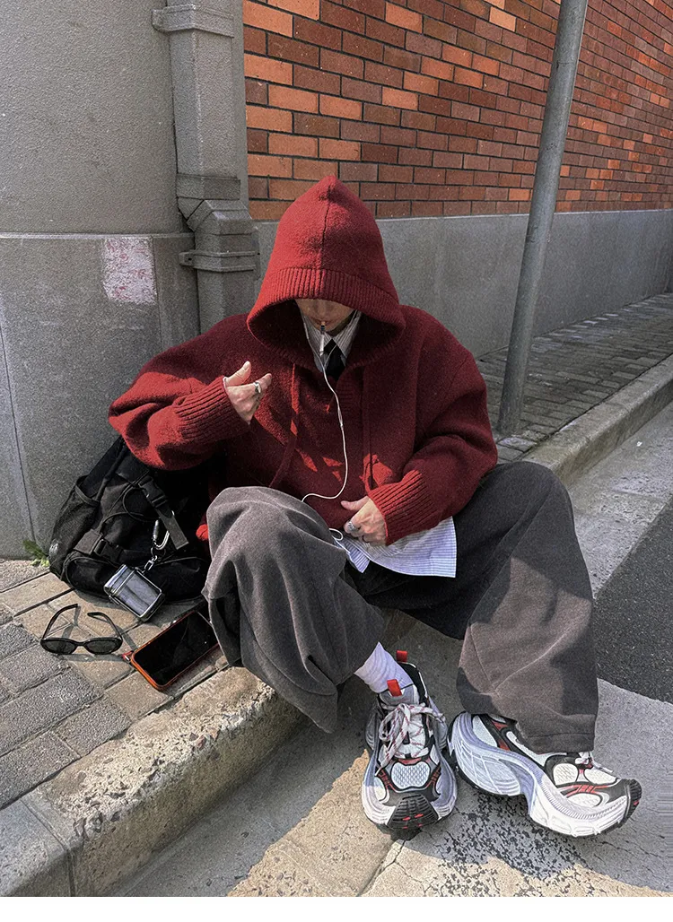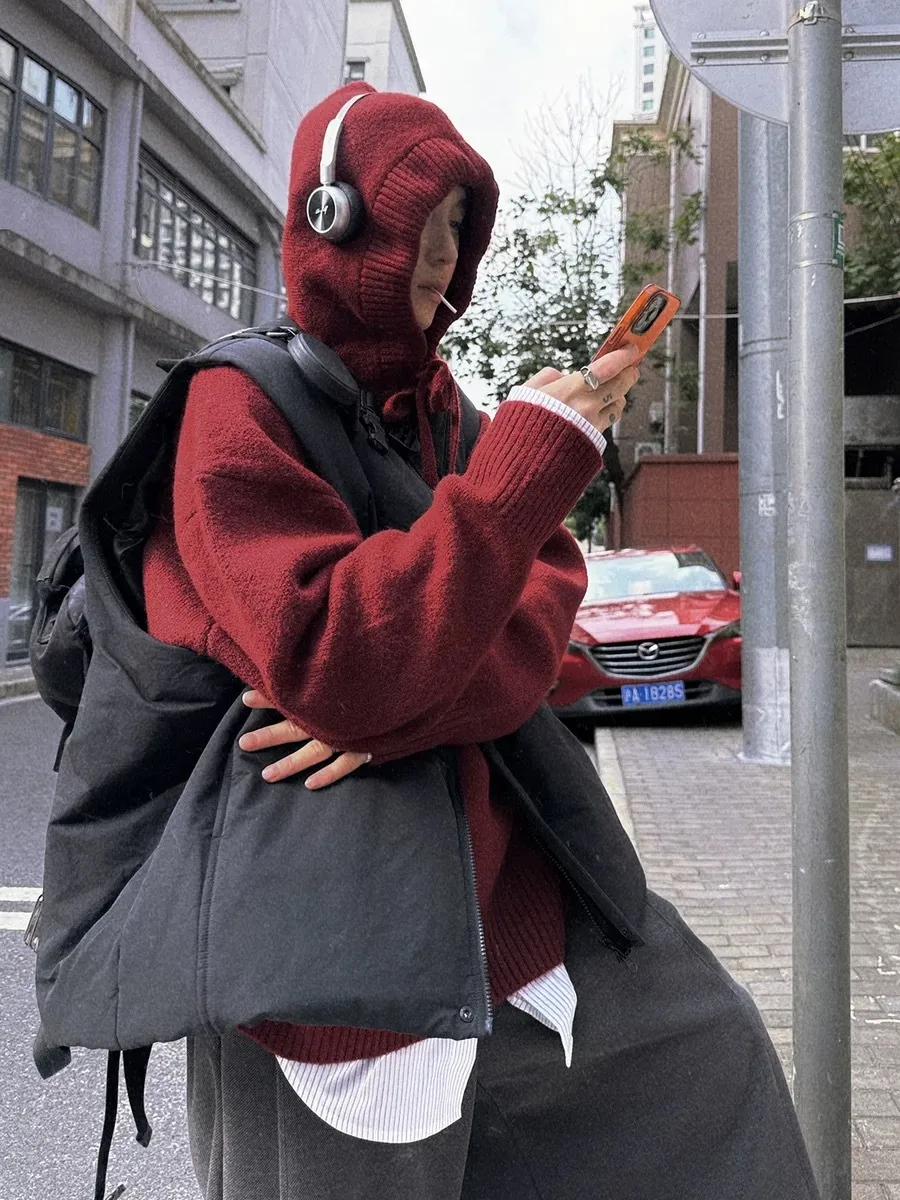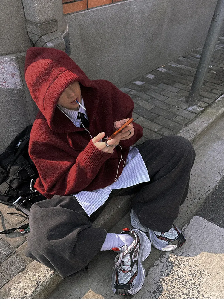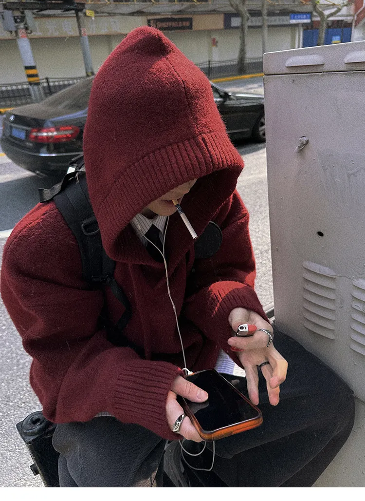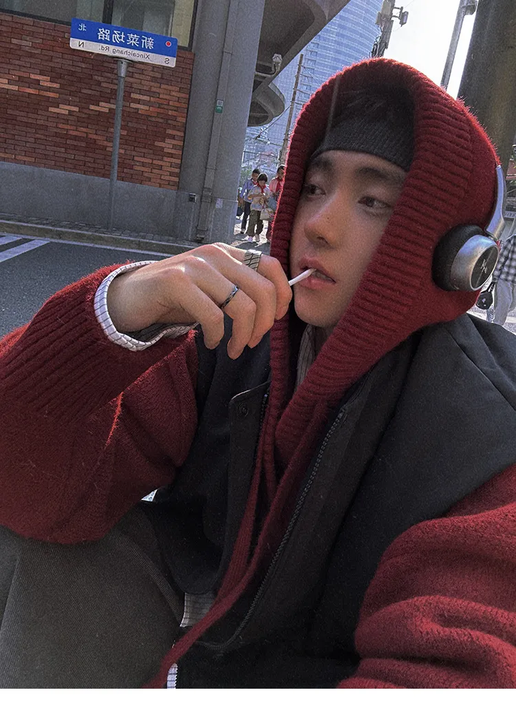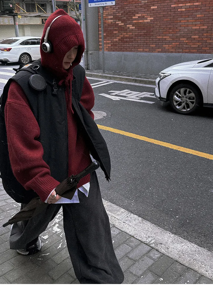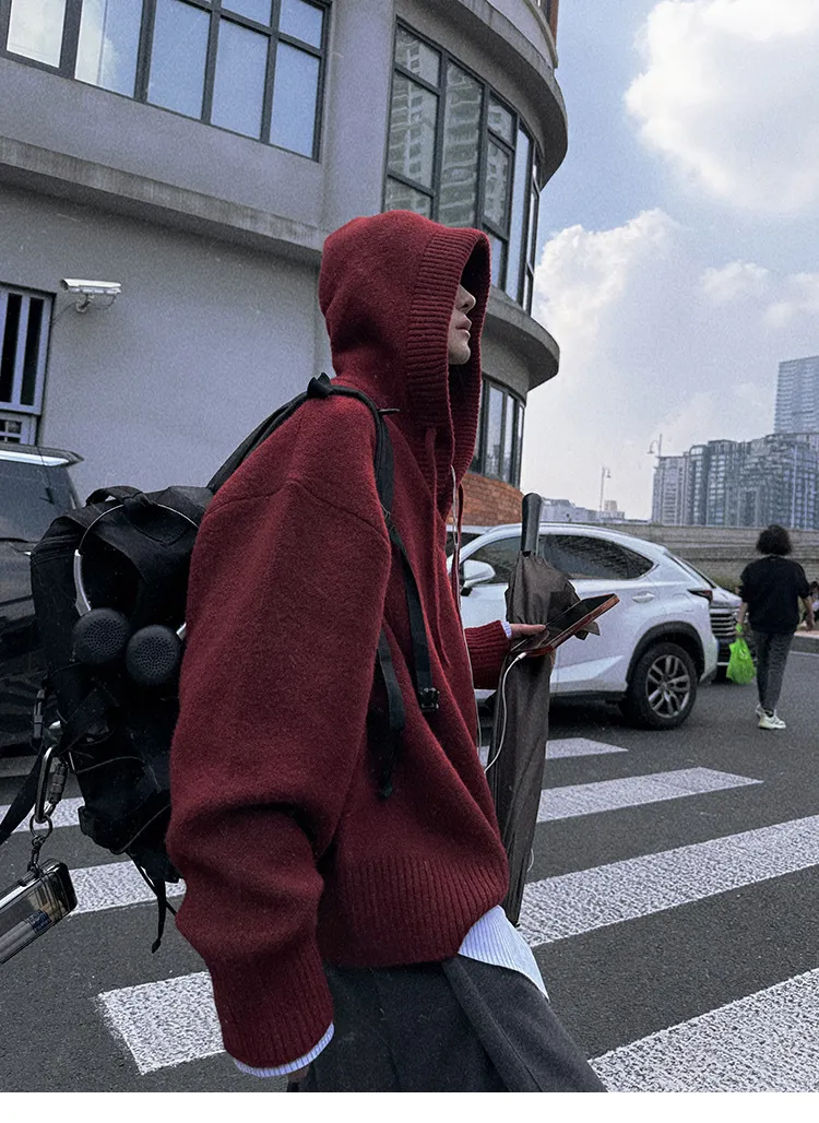 AUROCEAN 毛茸茸 連帽 羊毛帽踢(紅色)