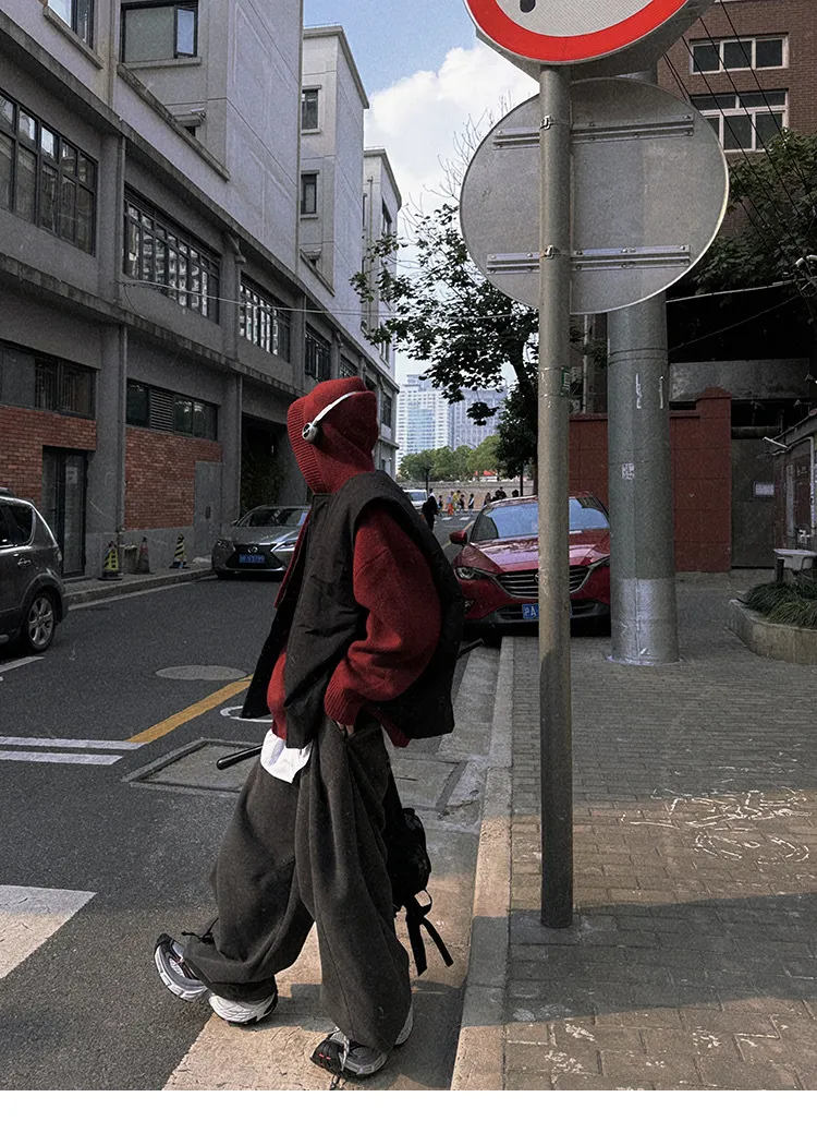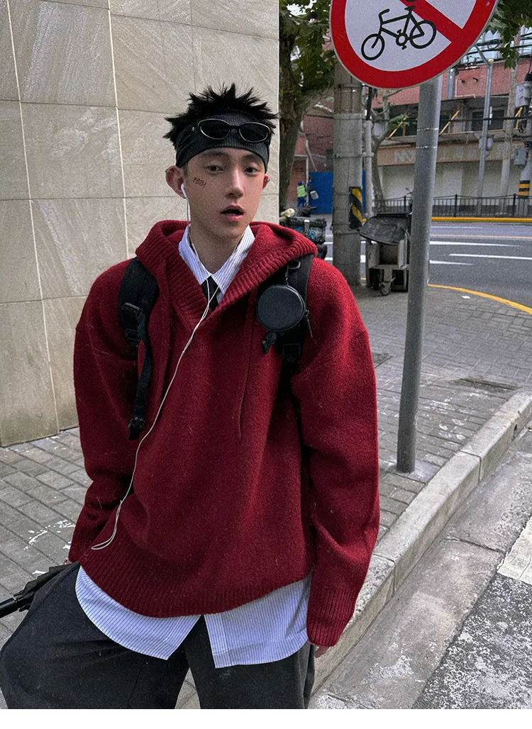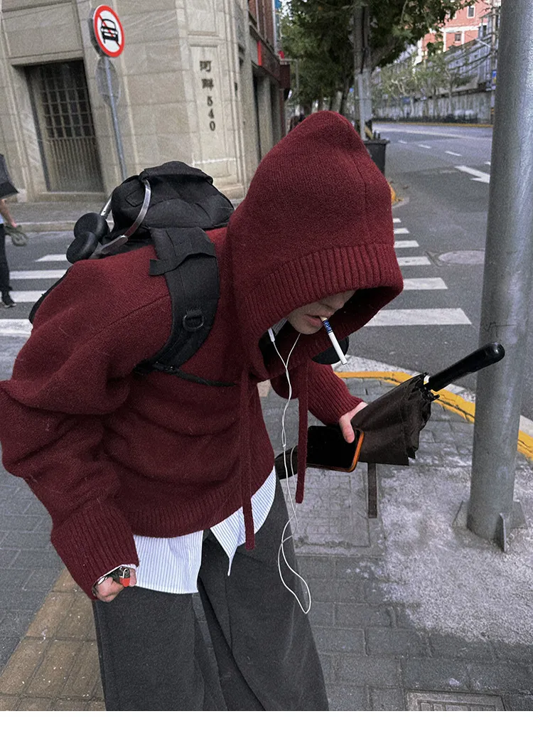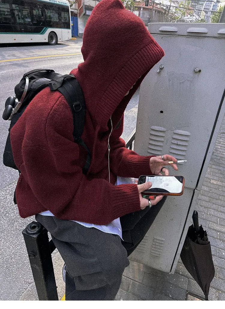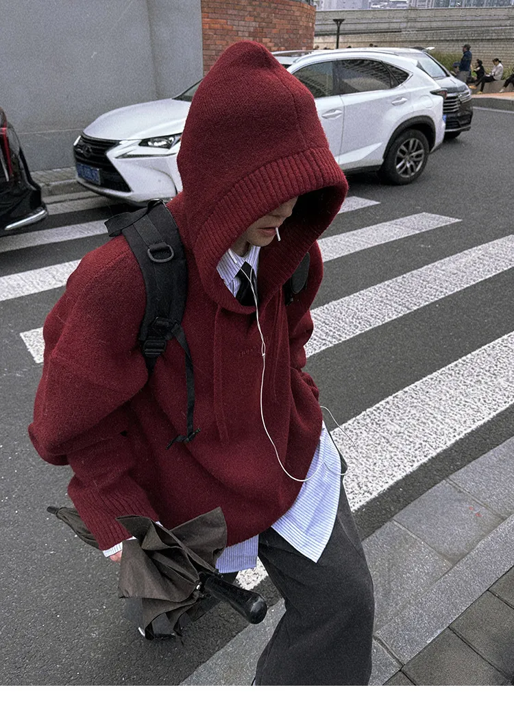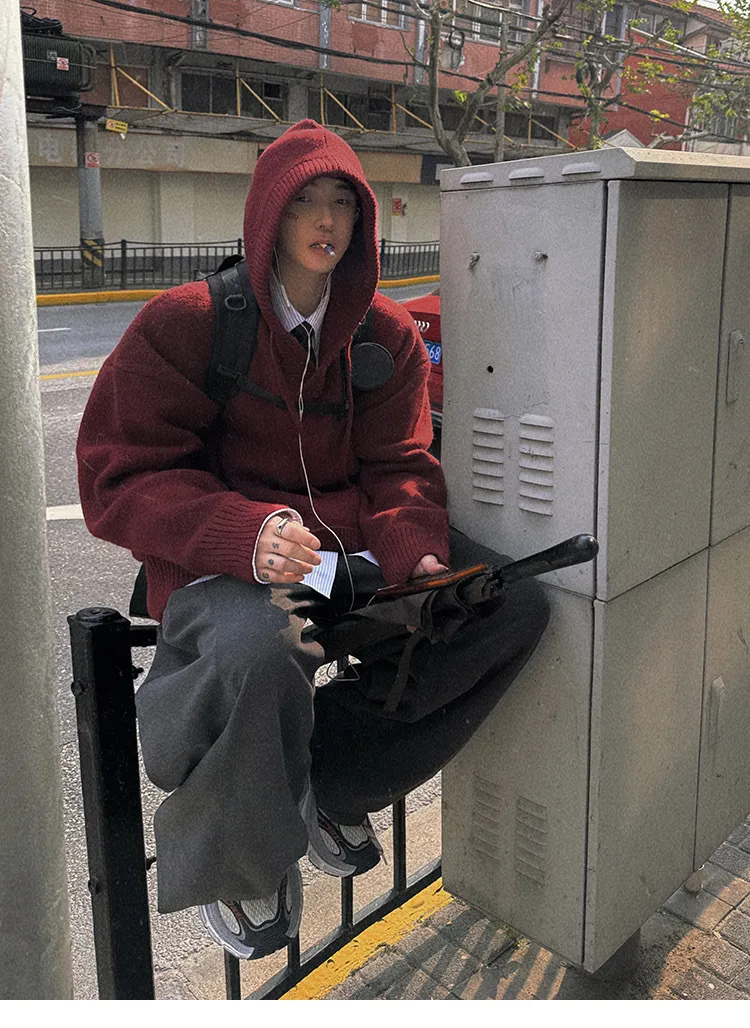 AUROCEAN 毛茸茸 連帽 羊毛帽踢(紅色)