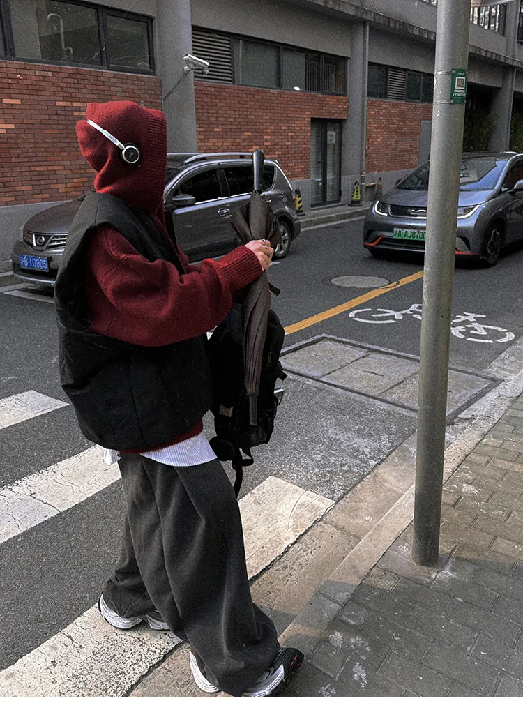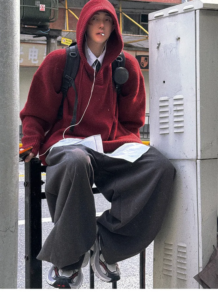 AUROCEAN 加厚磨毛 學院 收褶堆疊 西裝褲 (深灰)