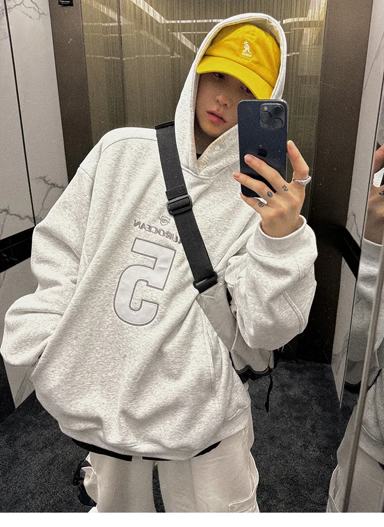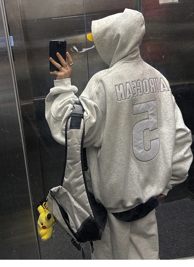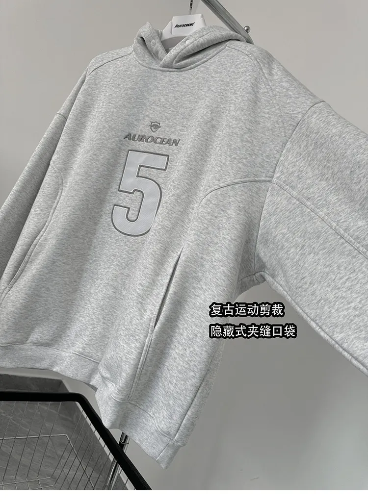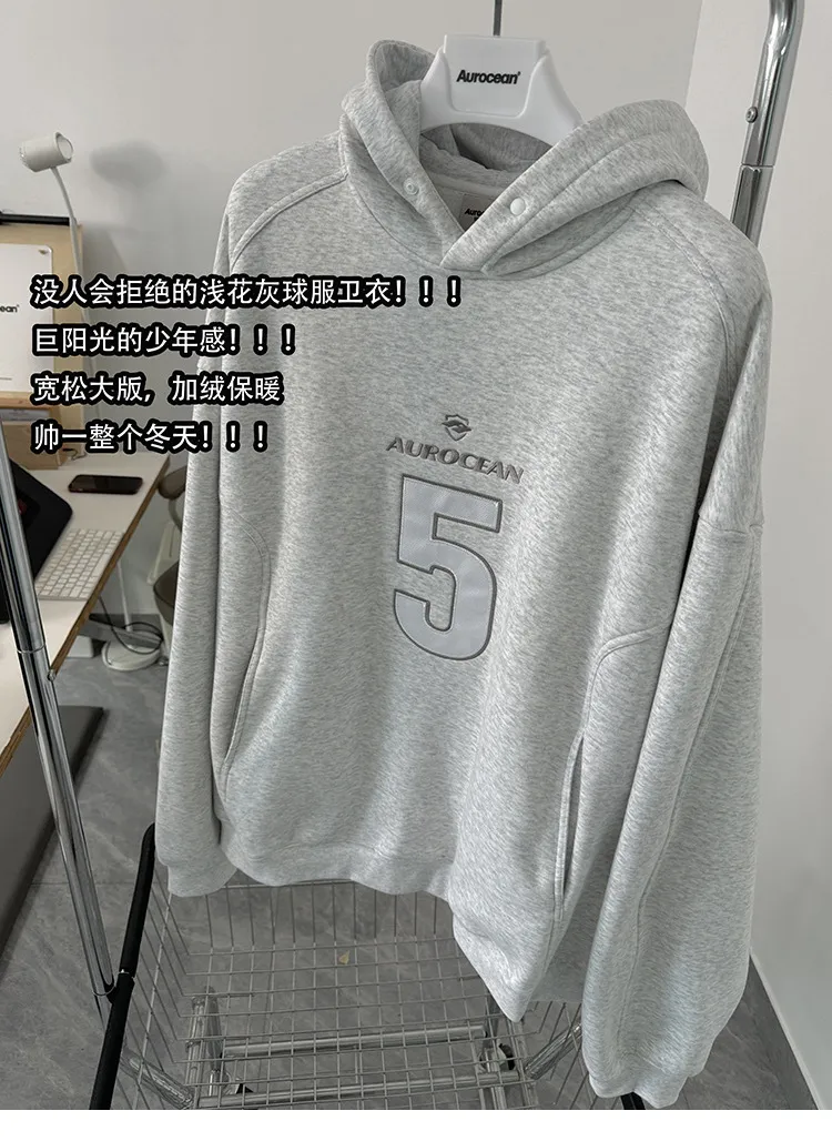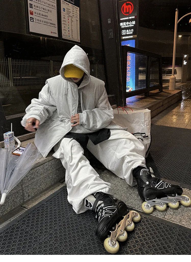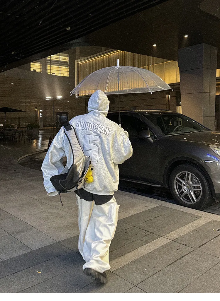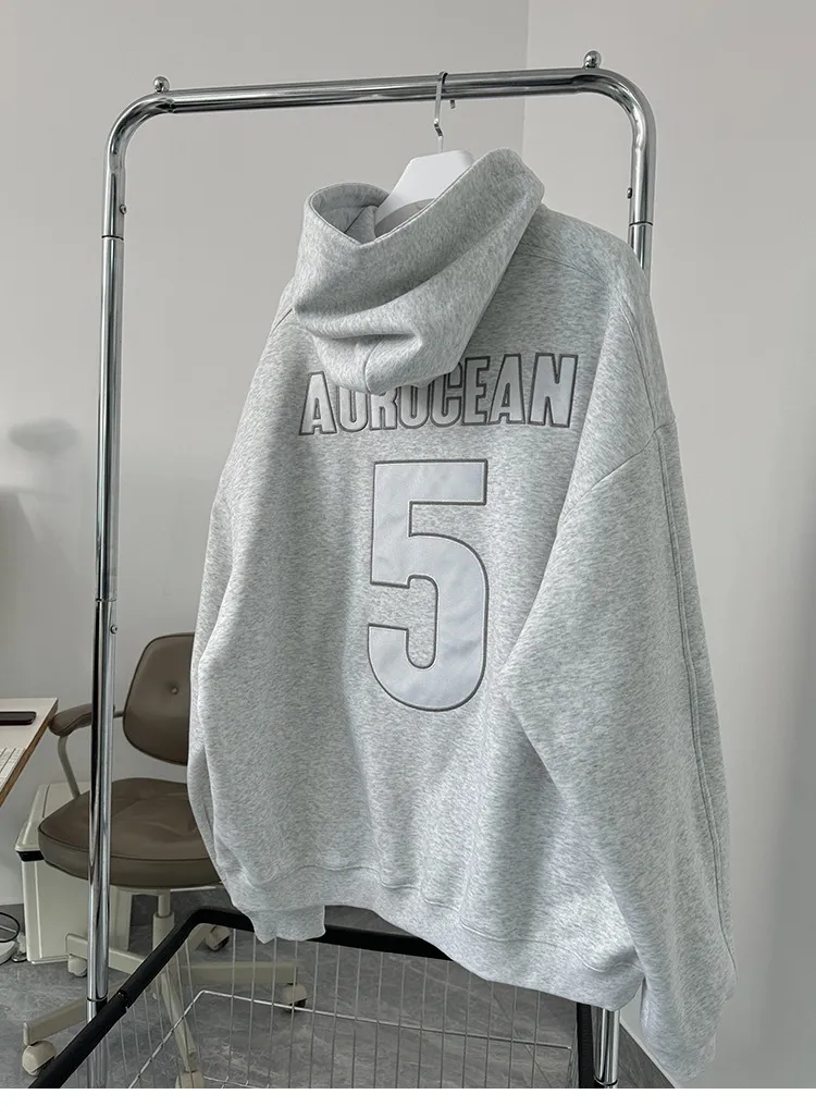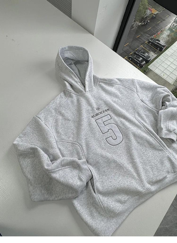 AUROCEAN 寬短 連帽 重磅 外套(灰白)