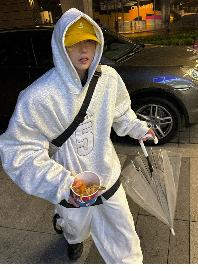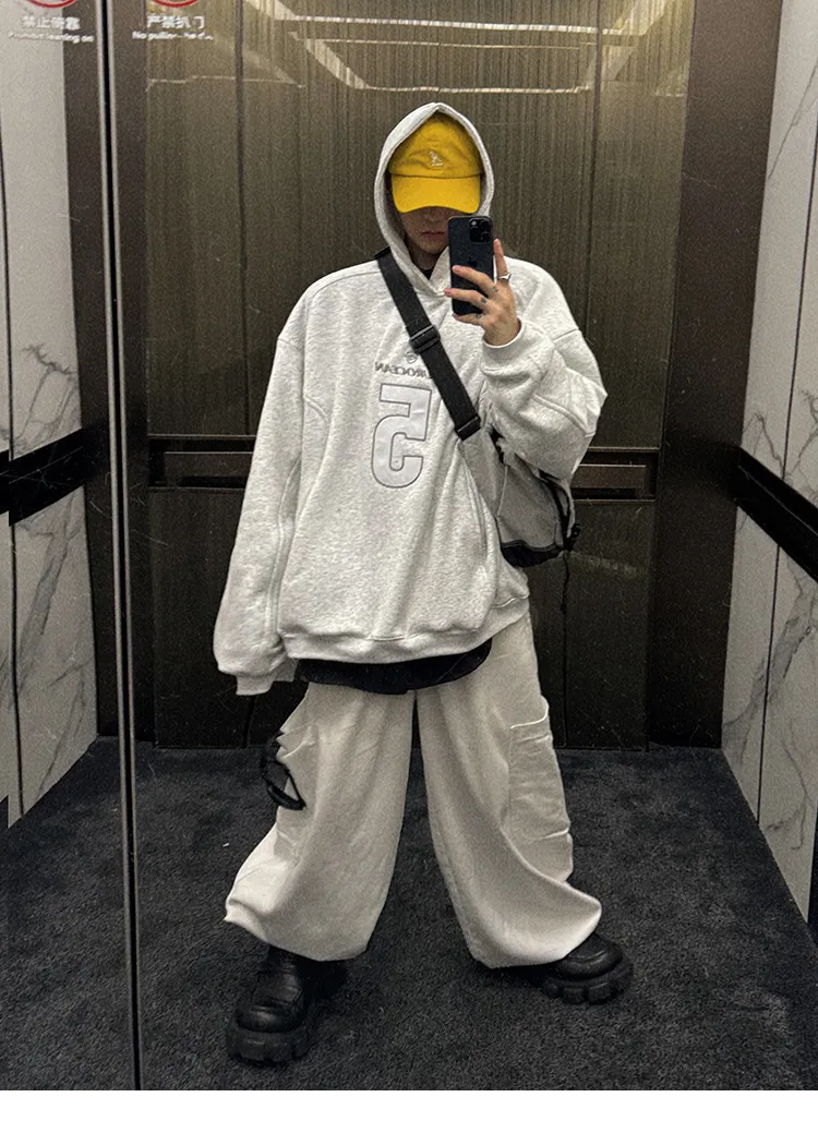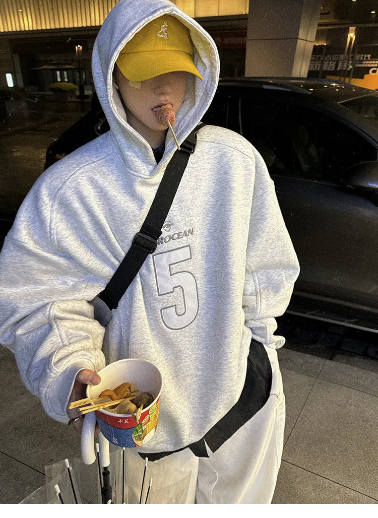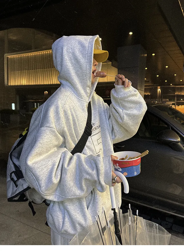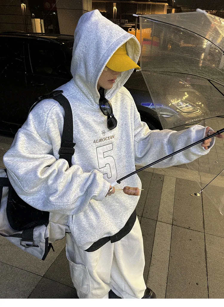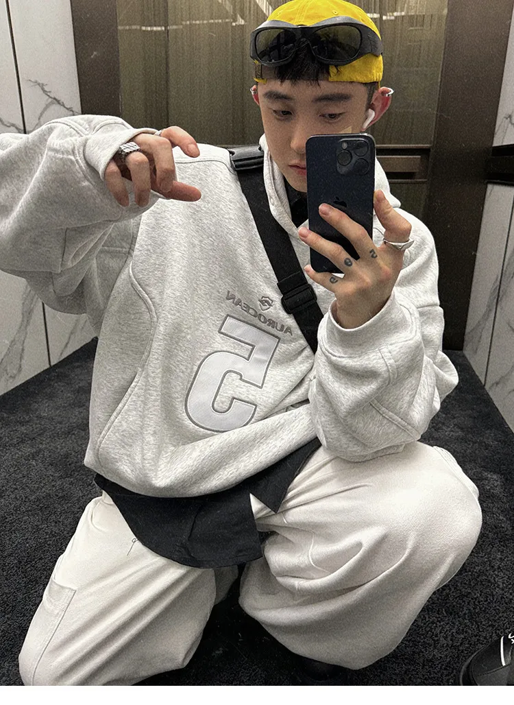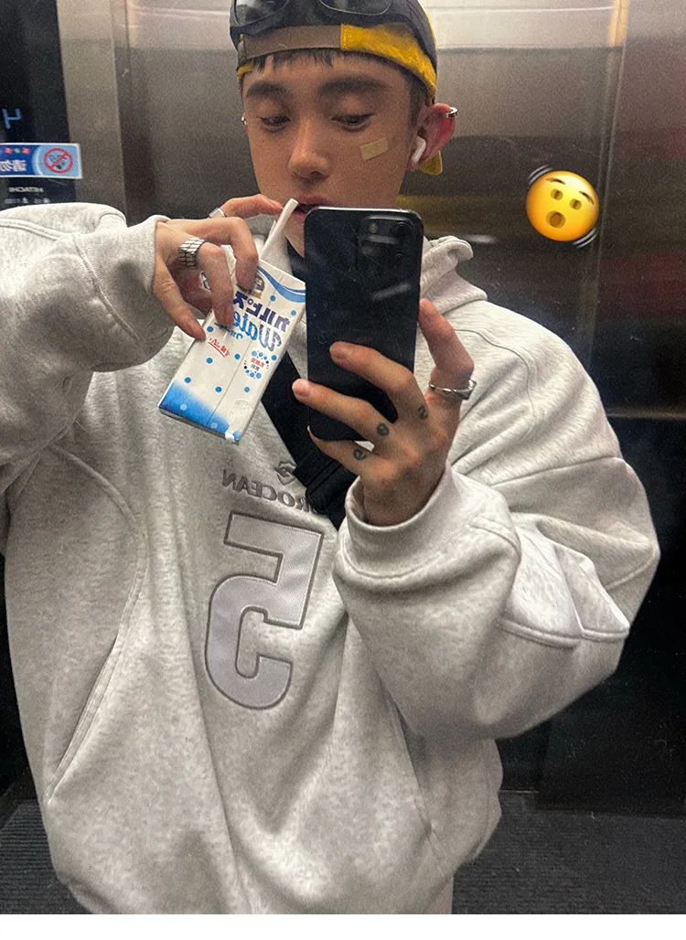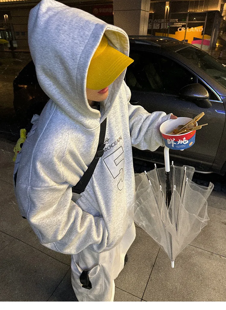 AUROCEAN 寬短 連帽 重磅 外套(灰白)