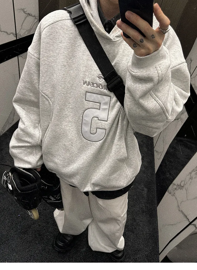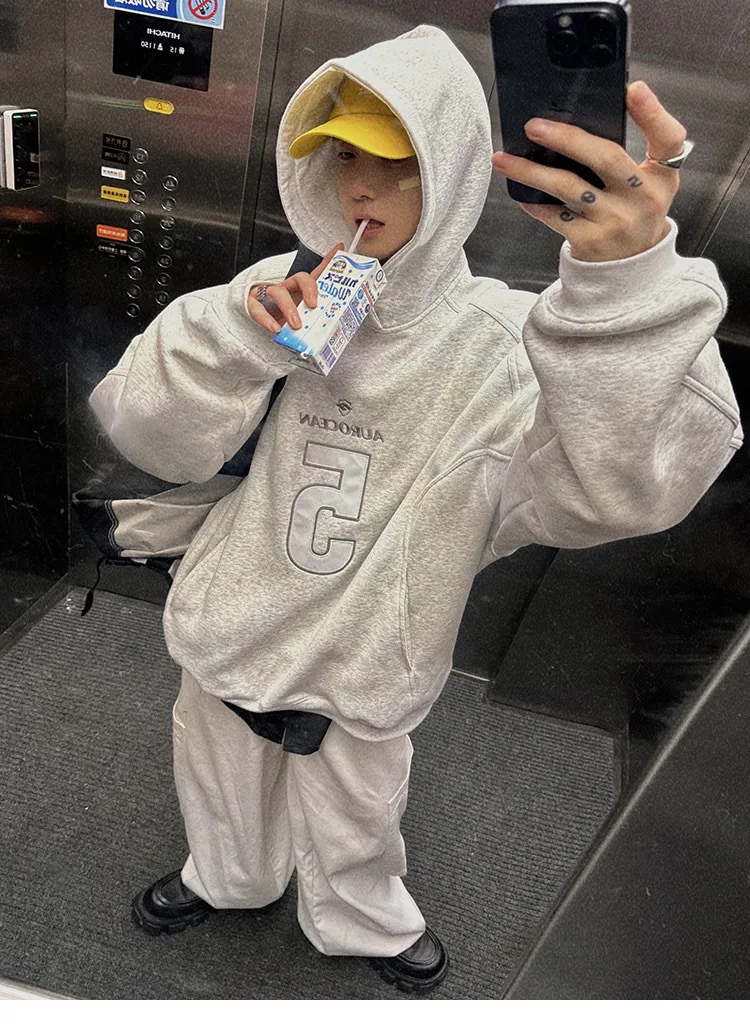 AUROCEAN 加絨 刺繡貼布 帽踢 (灰色)
