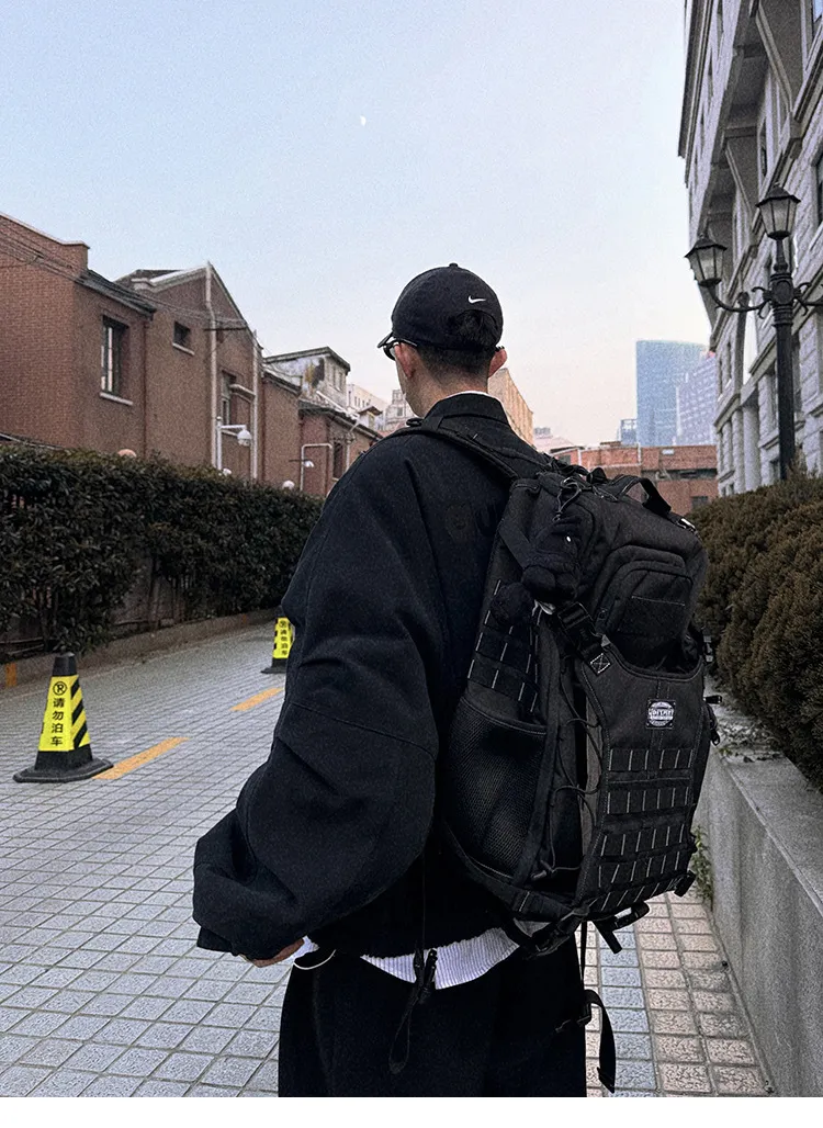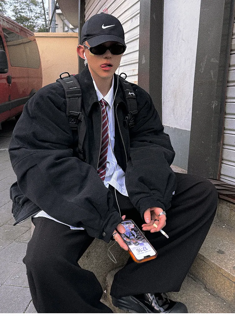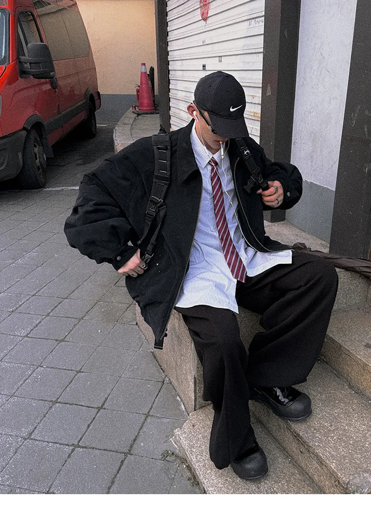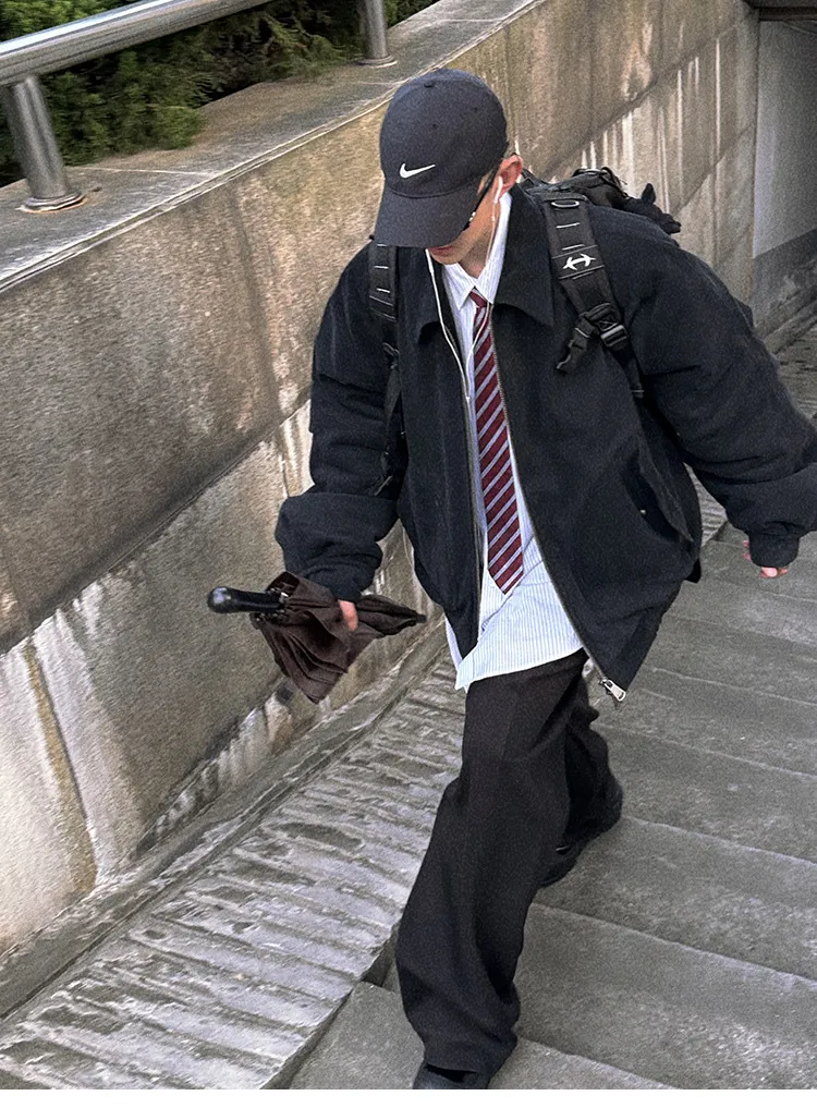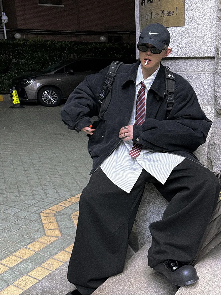 AUROCEAN 加厚磨毛 學院 收褶堆疊 西裝褲 (黑色)
