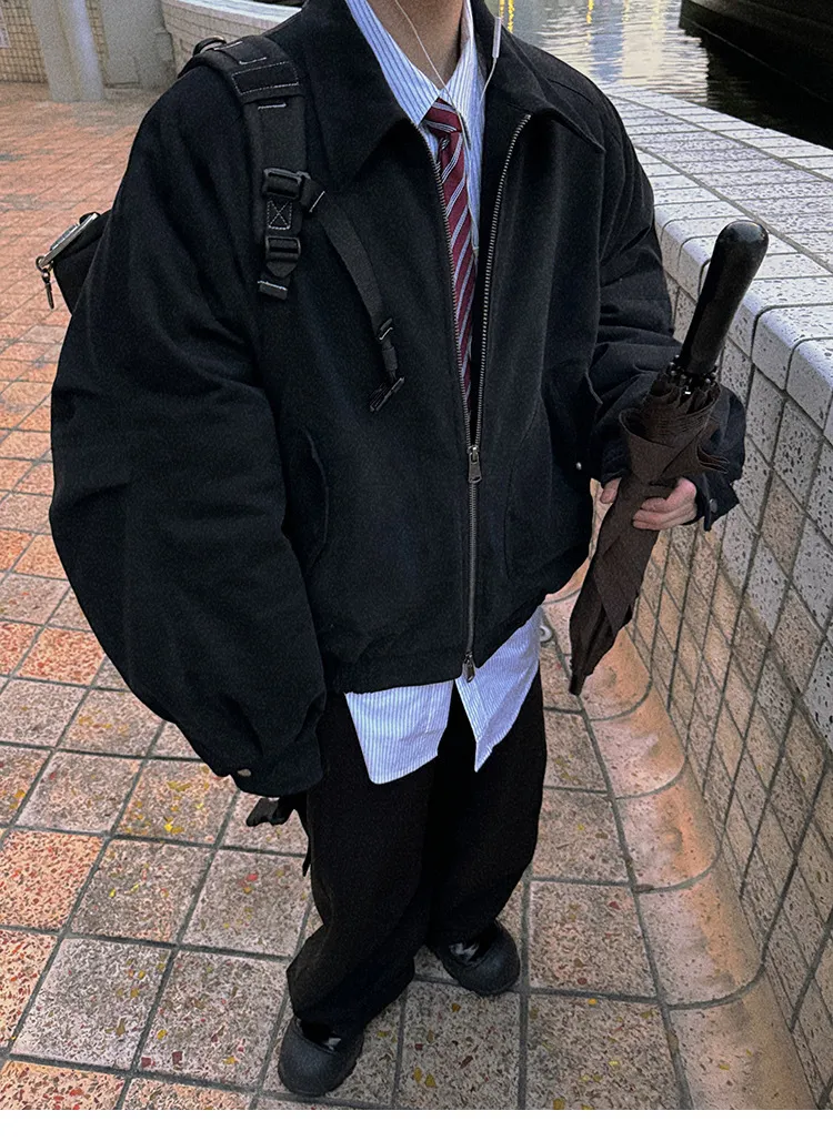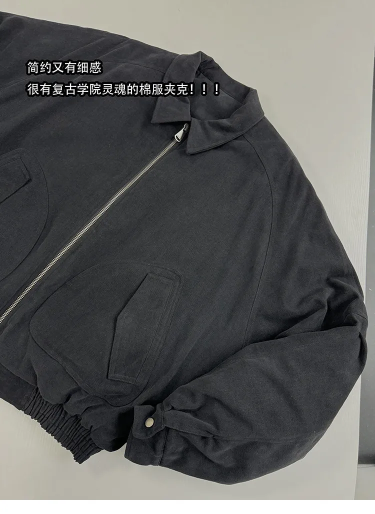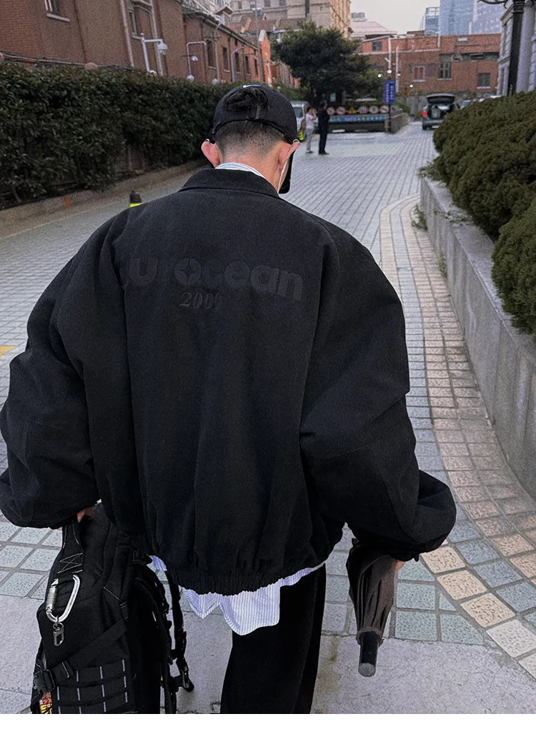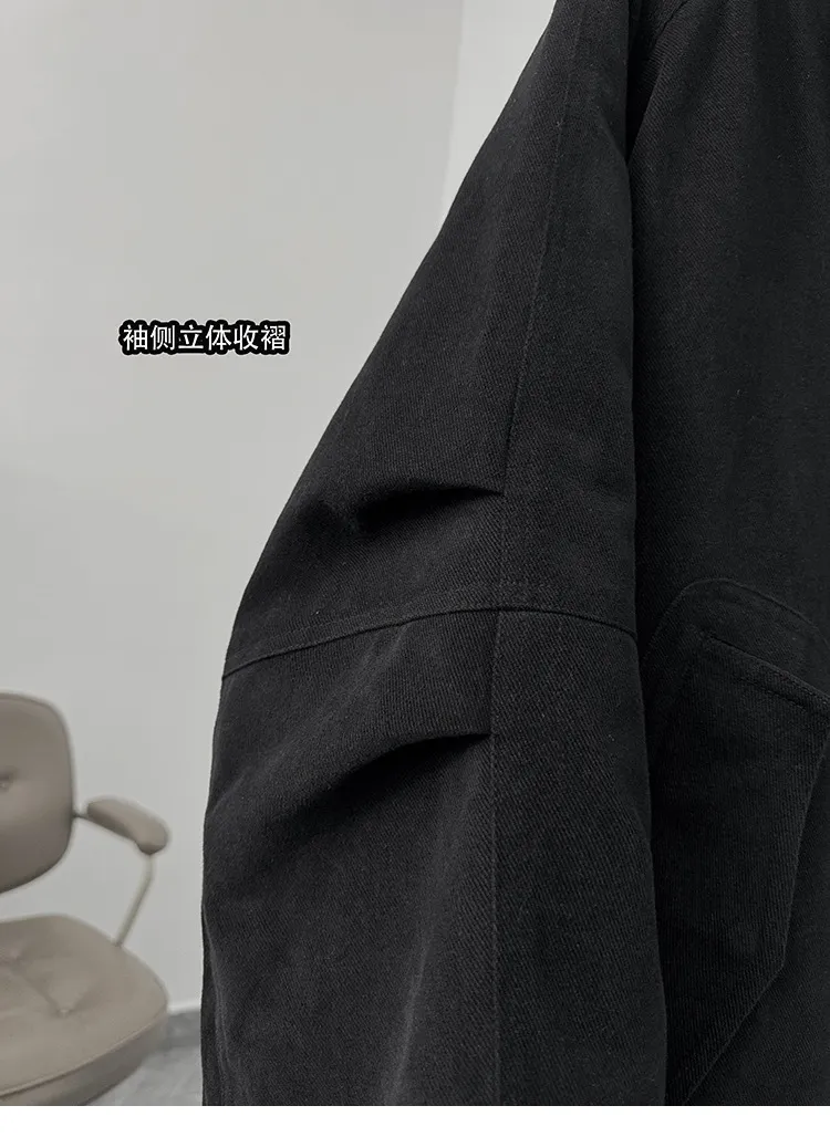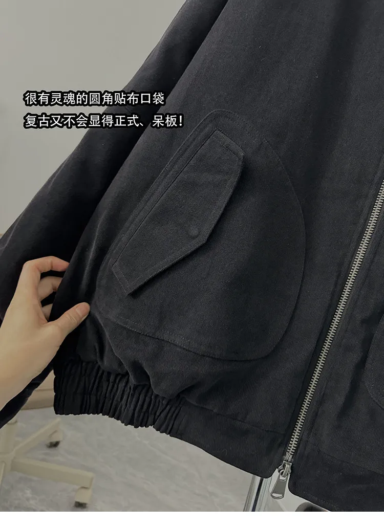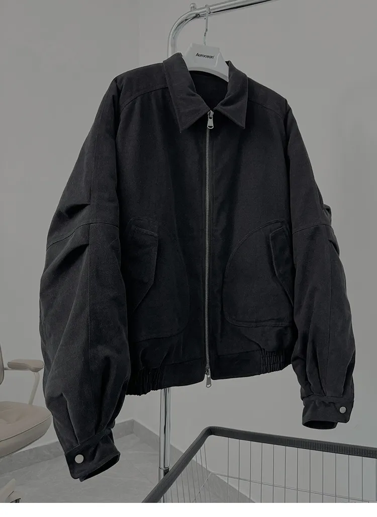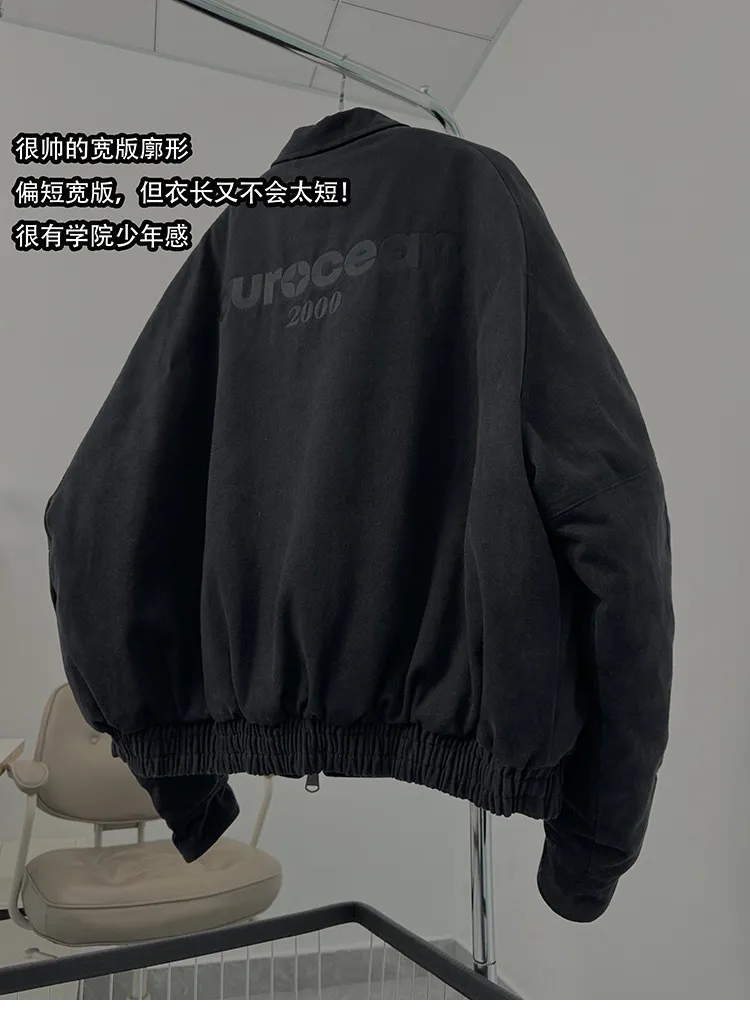 AUROCEAN 刺繡 磨毛 短版廓形 翻領 外套(黑色)
