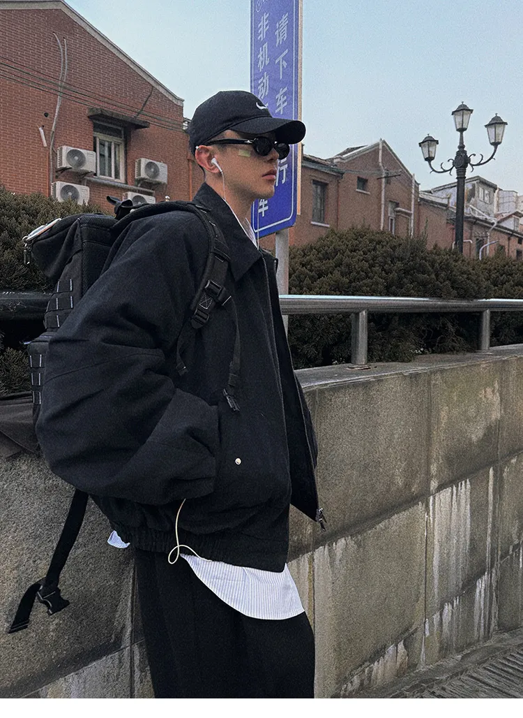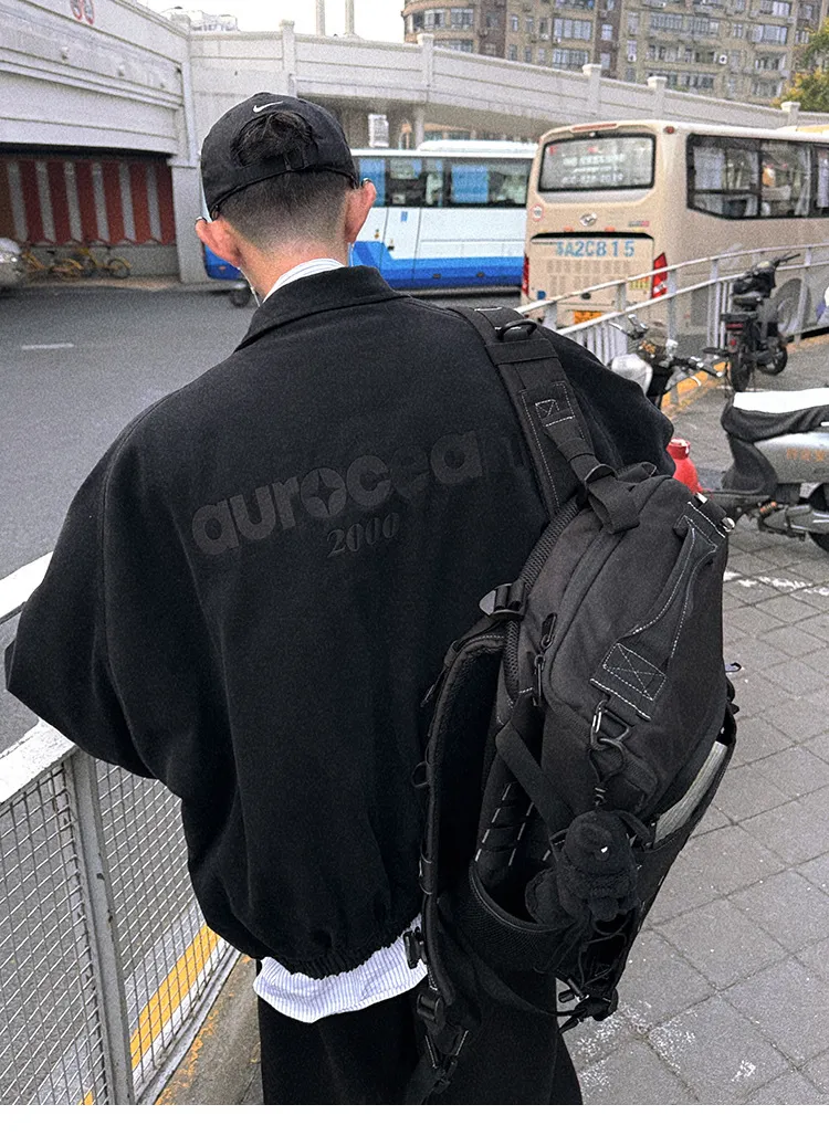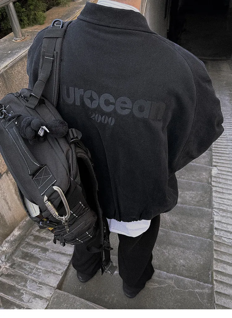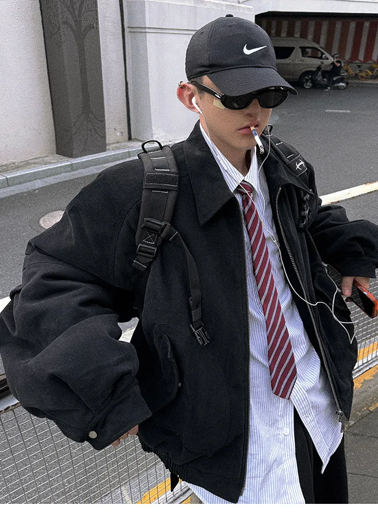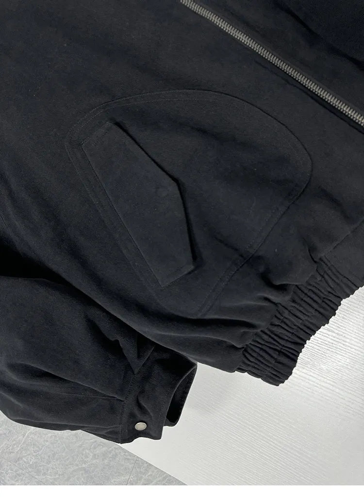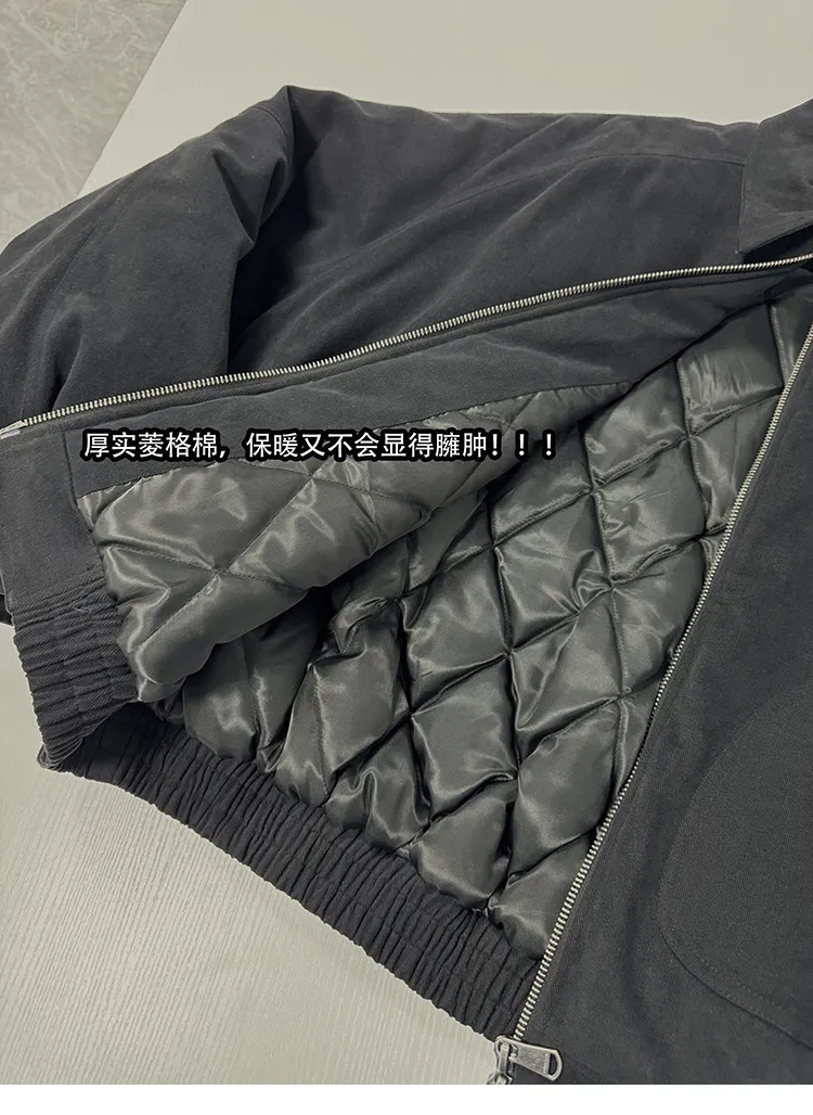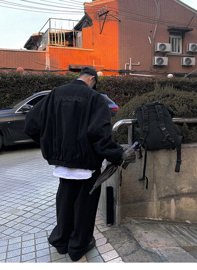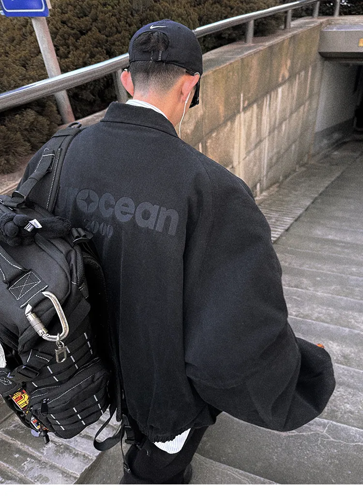 AUROCEAN 刺繡 磨毛 短版廓形 翻領 外套(黑色)