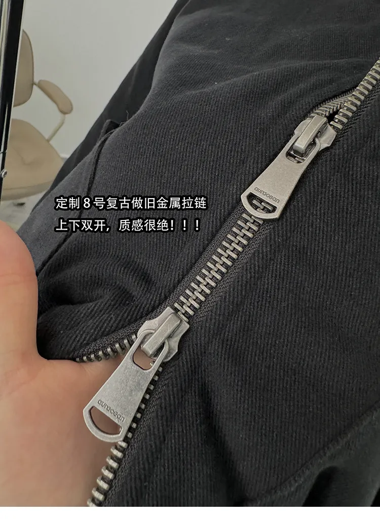 AUROCEAN 加厚磨毛 學院 收褶堆疊 西裝褲 (深灰)