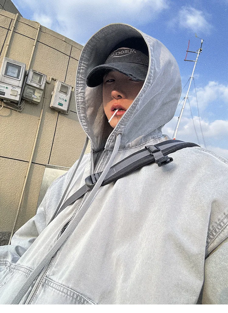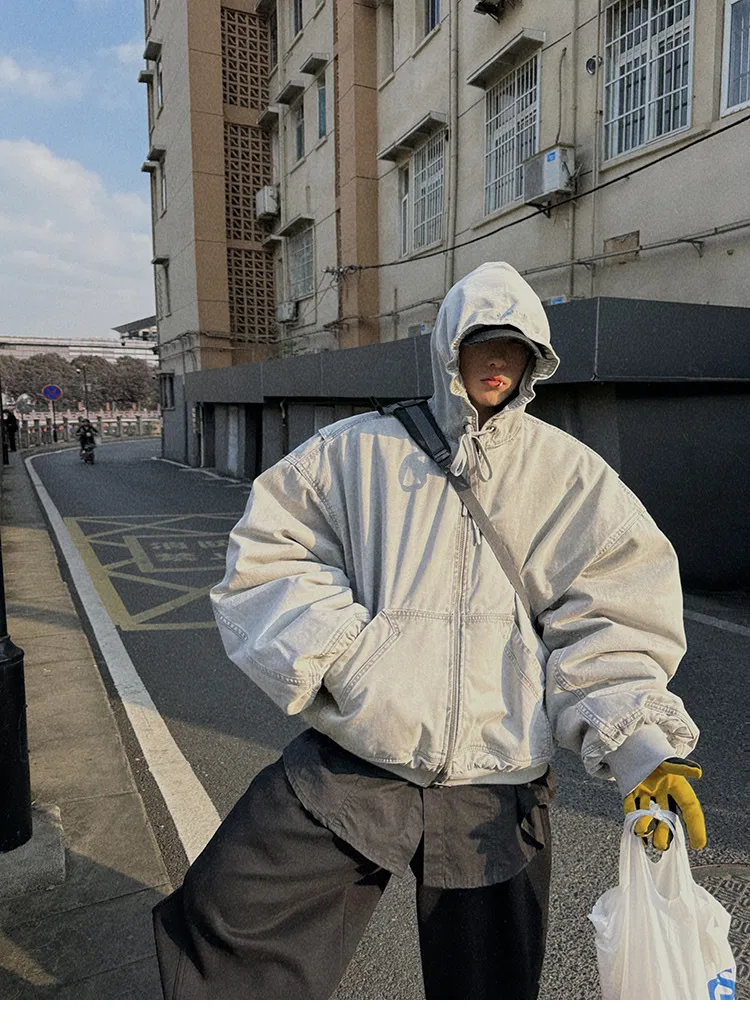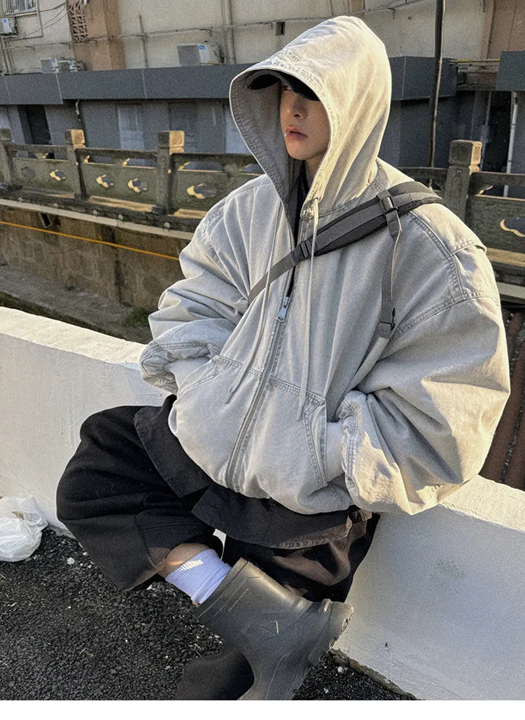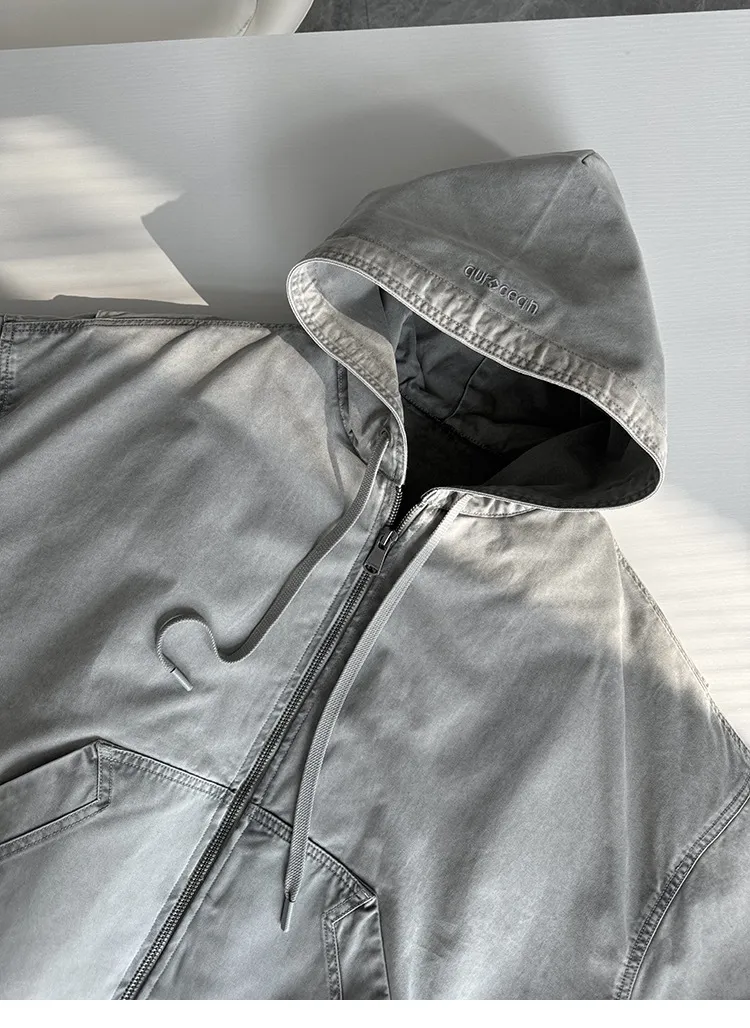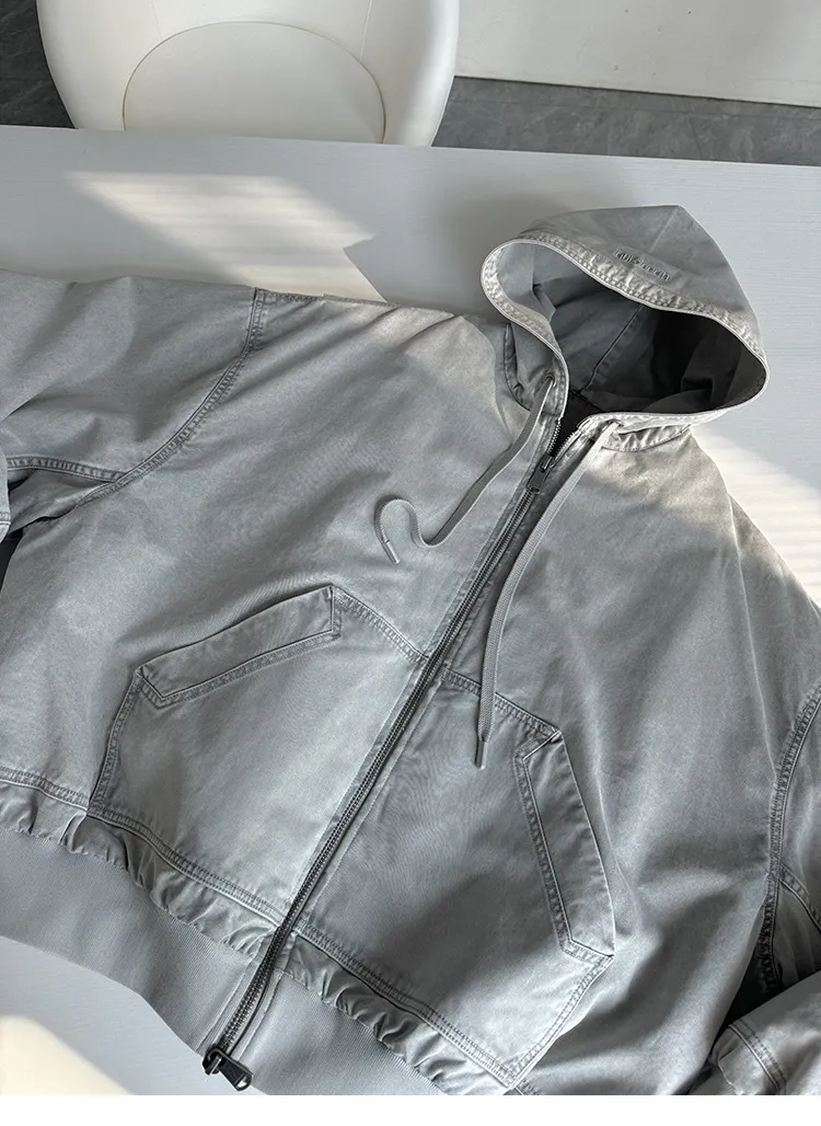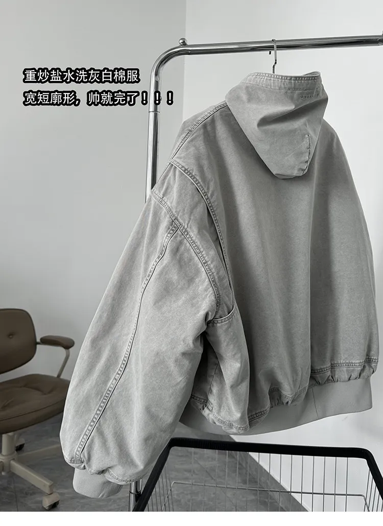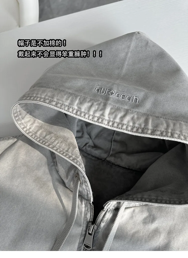 AUROCEAN 寬短 連帽 重磅 外套(灰白)