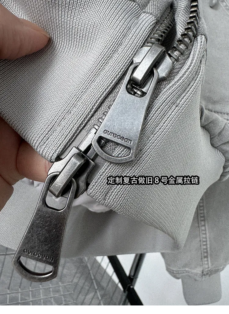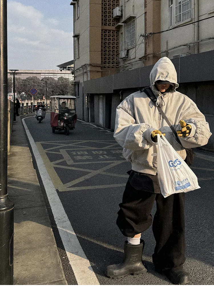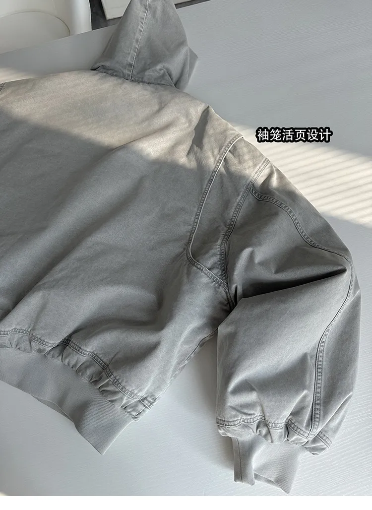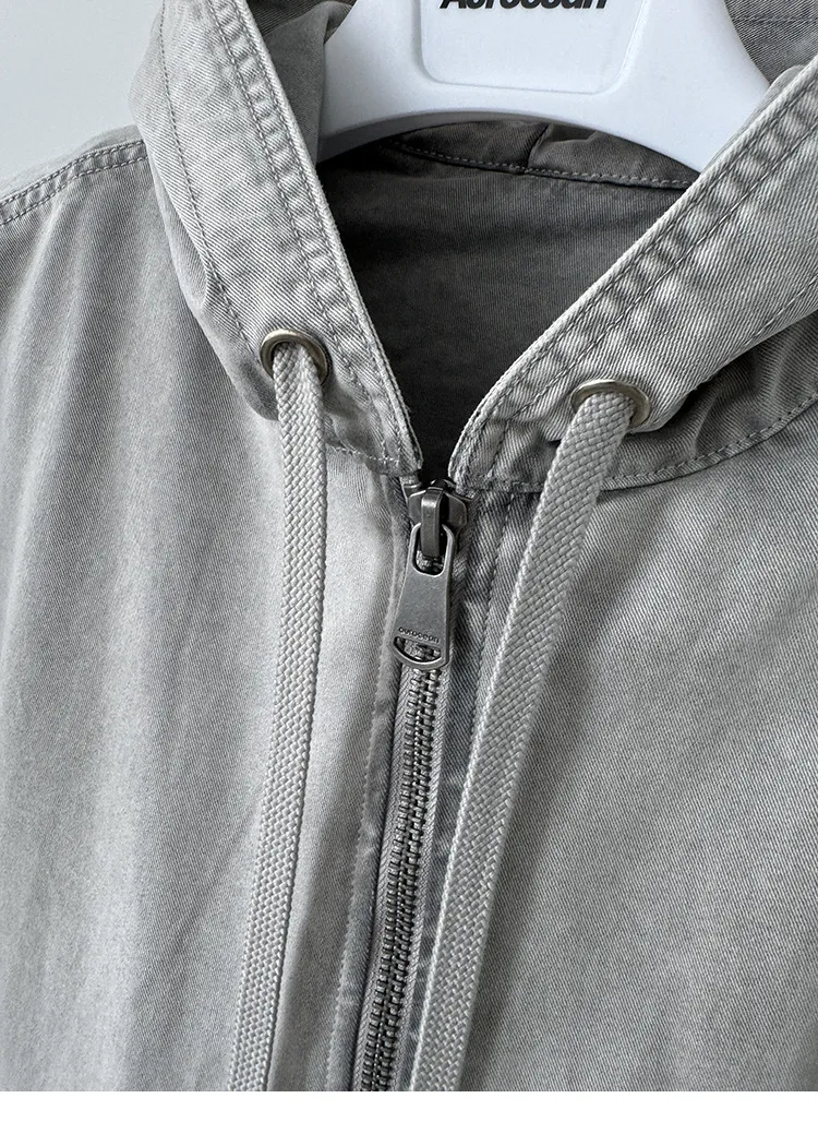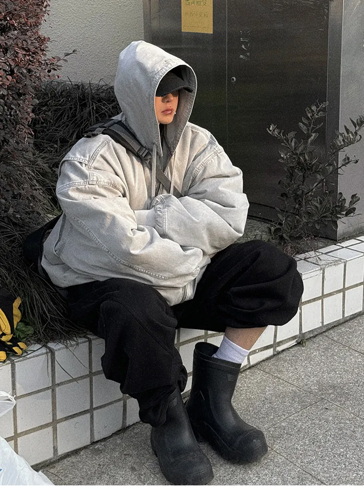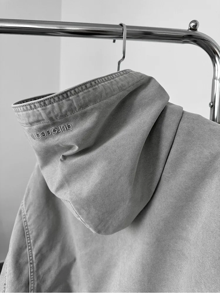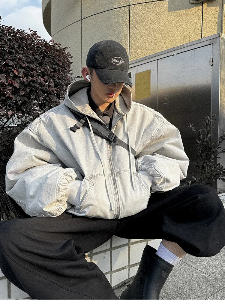 AUROCEAN 寬短 連帽 重磅 外套(灰白)